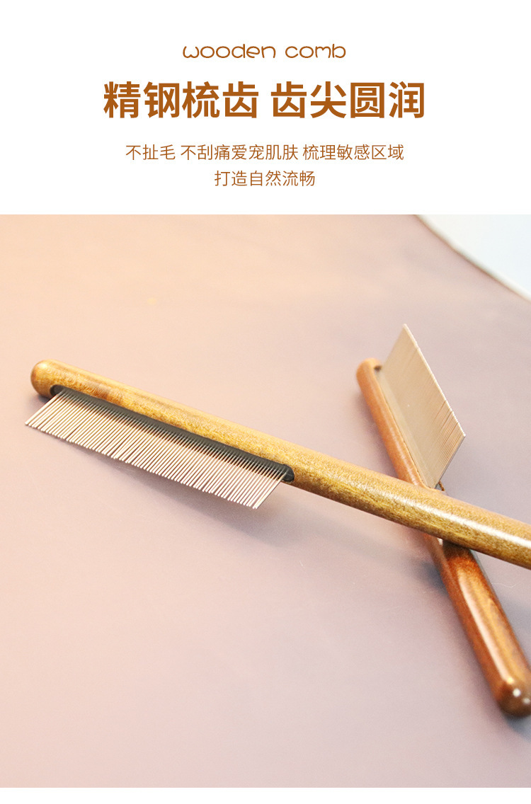 나무 손잡이가 있는 개 빗, 고밀도 치아 빗, 애완동물 빗, 긴 털 고양이 청소 빗, 떠다니는 털 제거, 벼룩 제거 고양이 빗스토어 가기