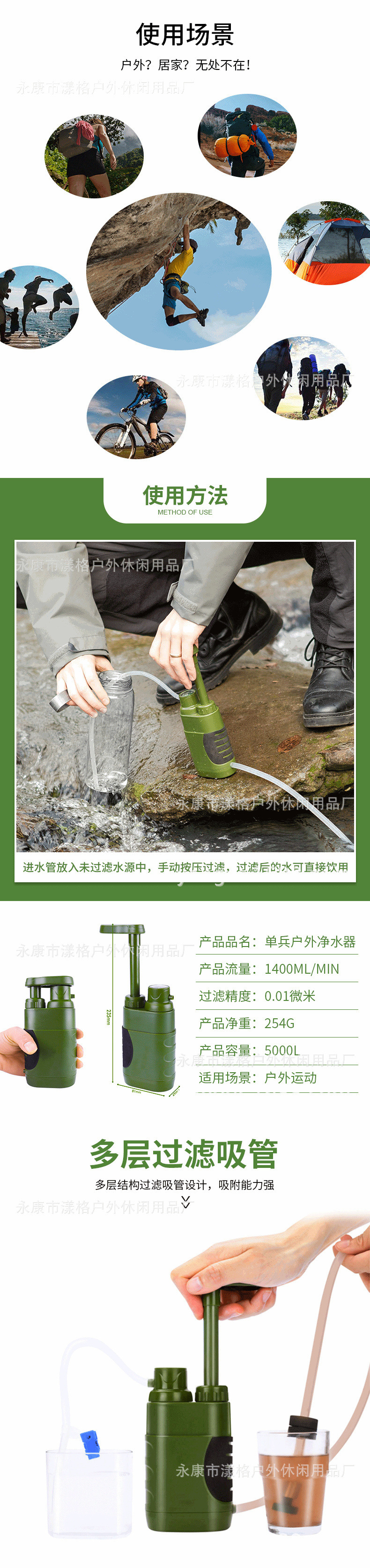 야외 개인용 정수기, 휴대용 여과 및 정화, 초미세 여과 정수, 야외 생존 식수 필터