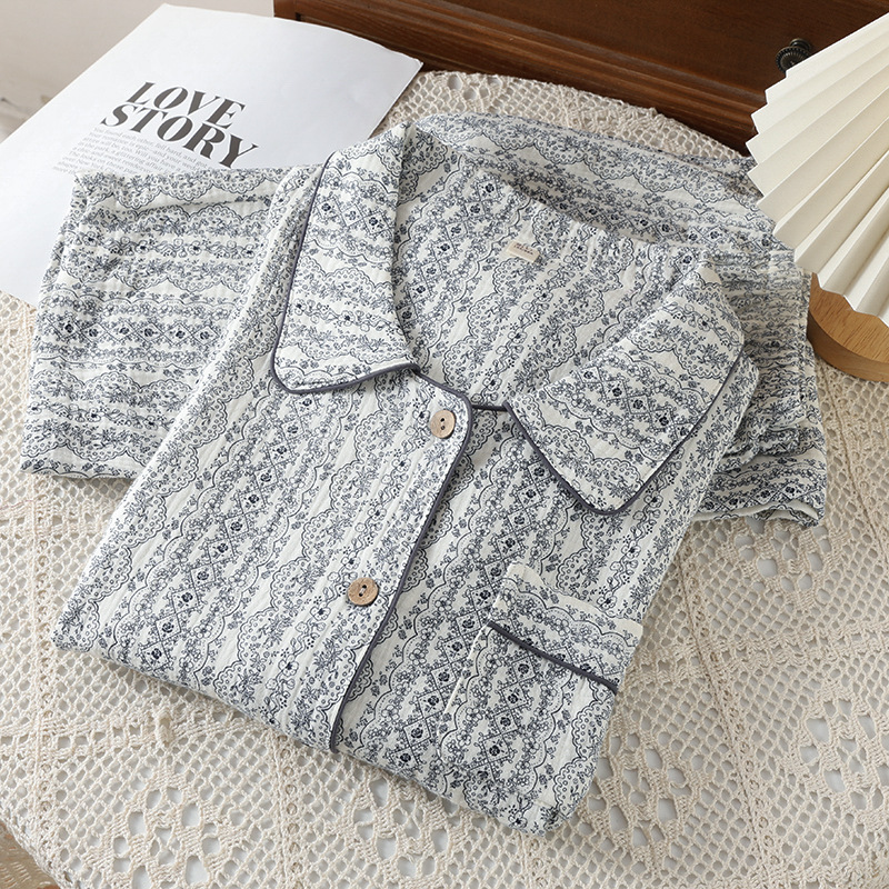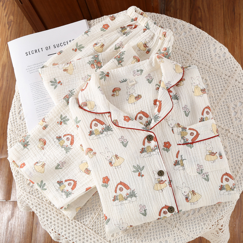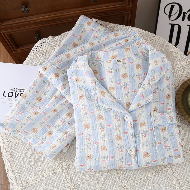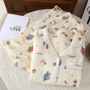 더블 크레페 코튼 원사 만화 시리즈 여성 홈 옷 파자마 긴 소매 바지 통기성 및 편안한 사계절 순면스토어 가기