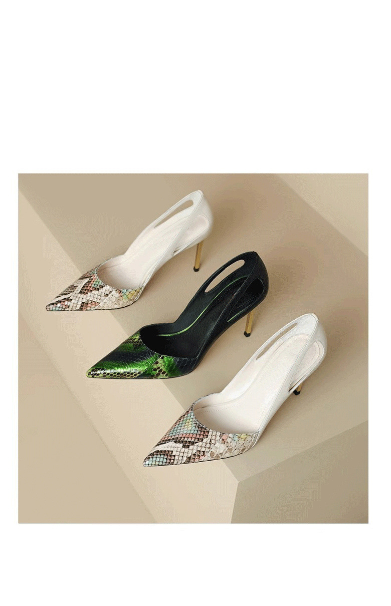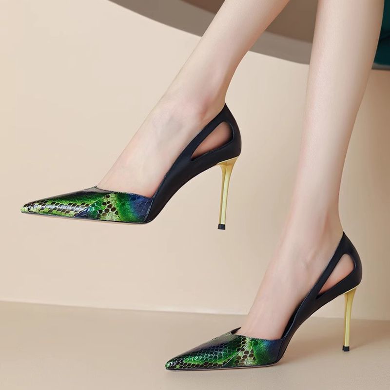 인터넷 연예인 32-45 사이즈 정품 가죽 2025 새로운 컬러 블록 뾰족한 얇은 굽 우아한 디자인 느낌을주는 연회 하이힐 샌들 여성용