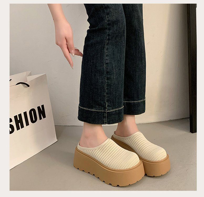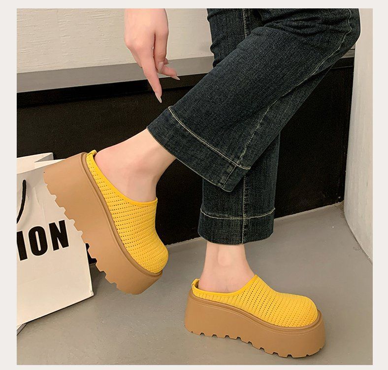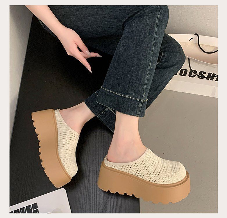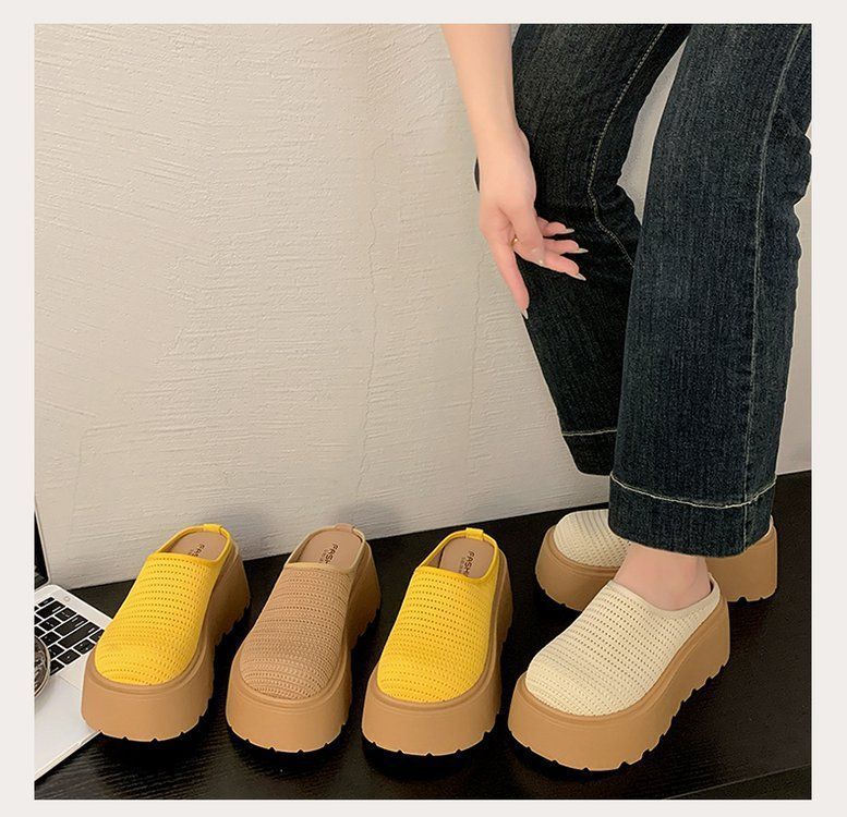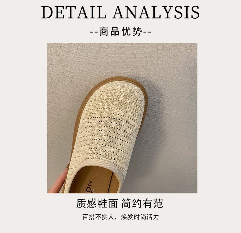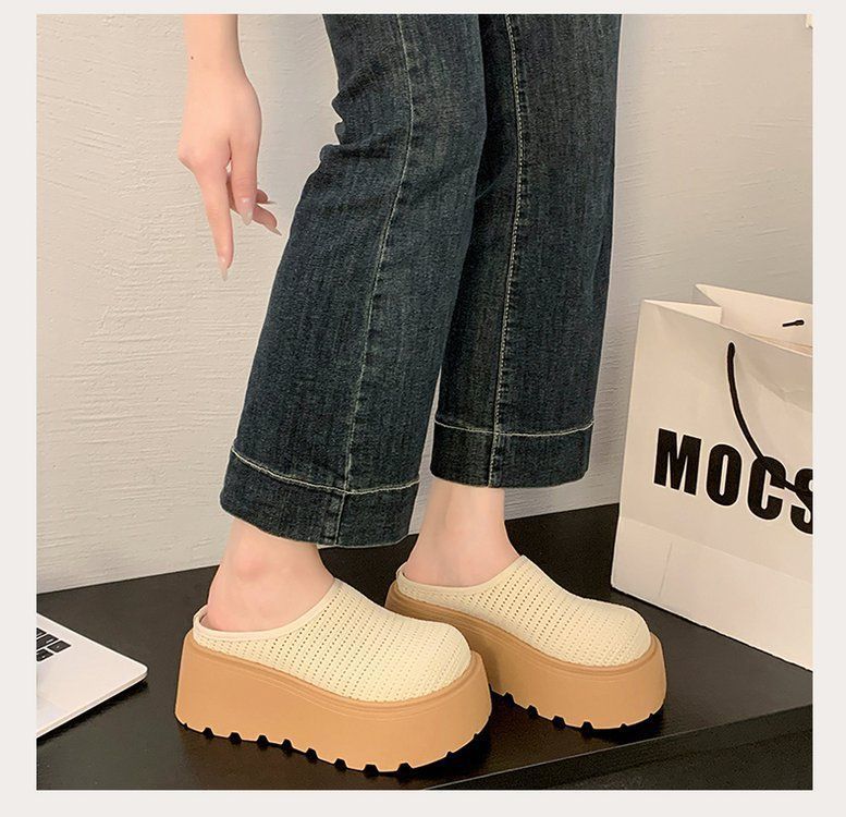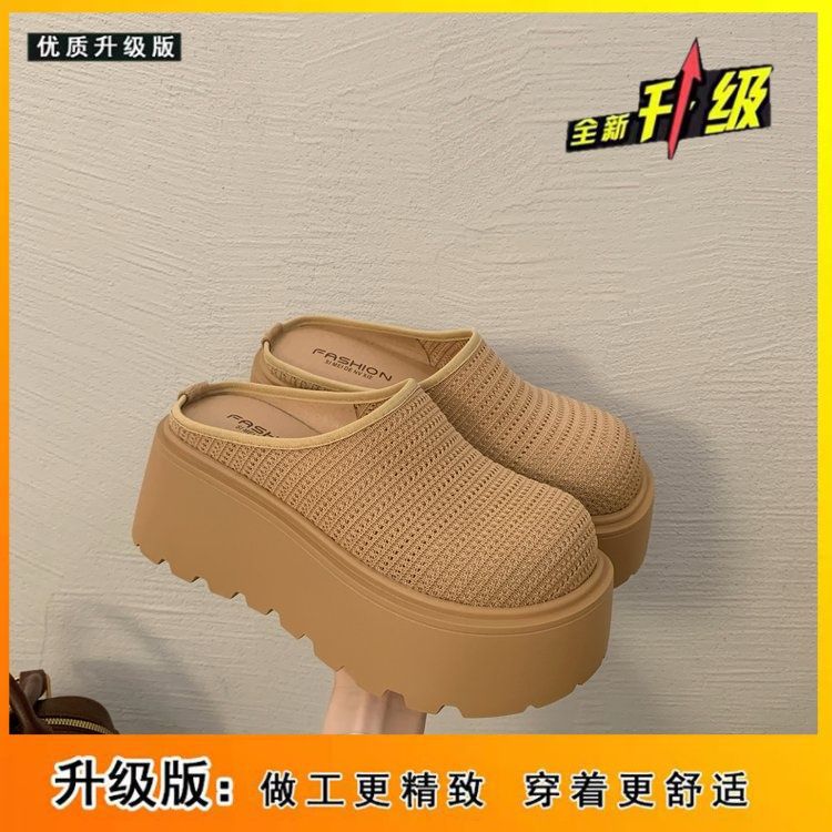 유행 스폰지 케이크 두꺼운 밑창 바오터우 하프 슬리퍼 여성의 2025 년 여름 새로운 스타일의 아우터 메시 통기성 게으른 사람 페달스토어 가기