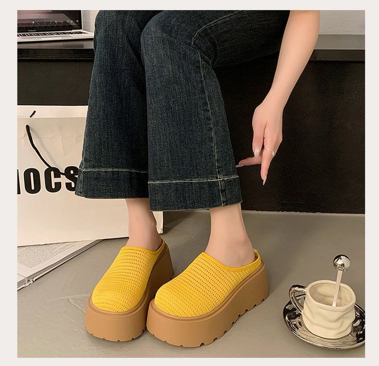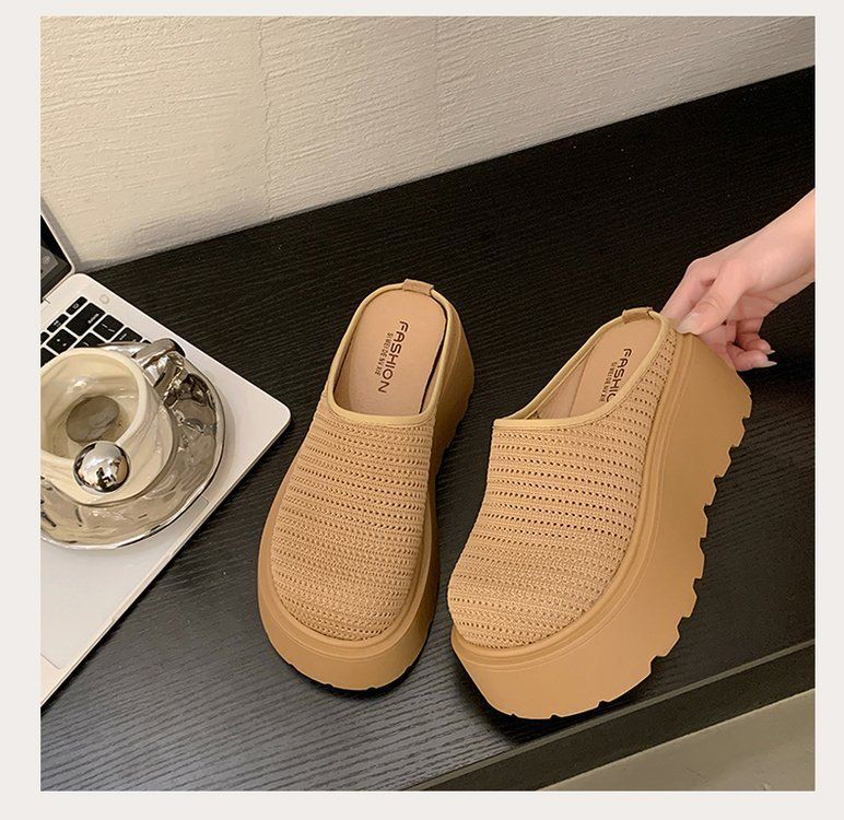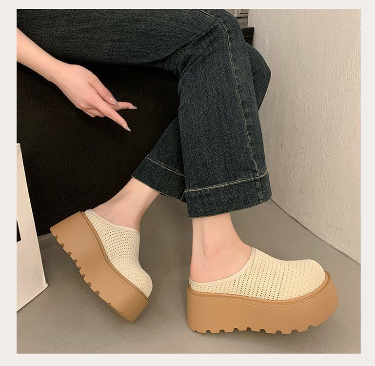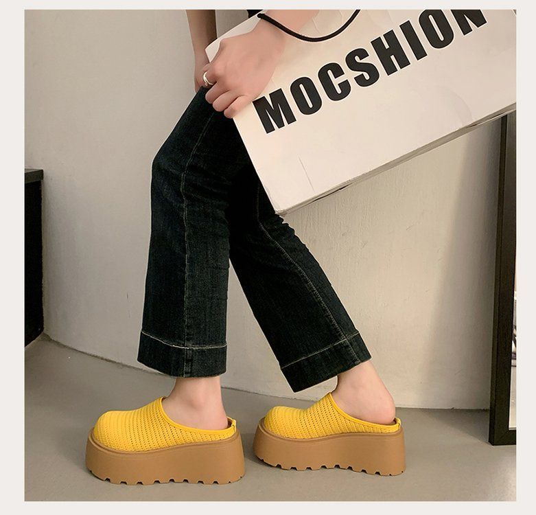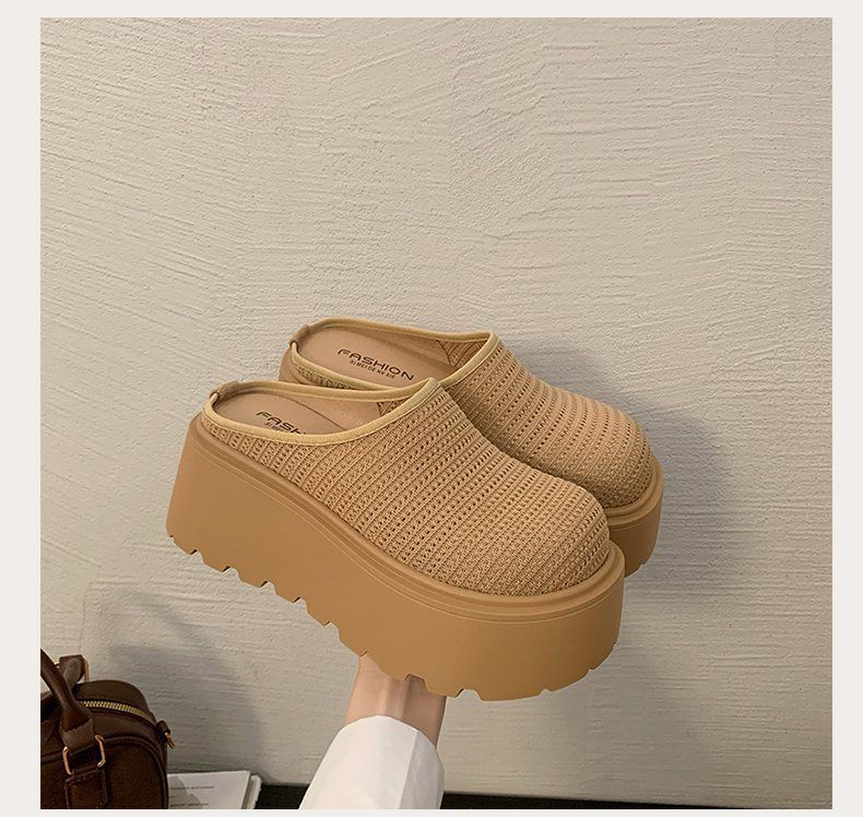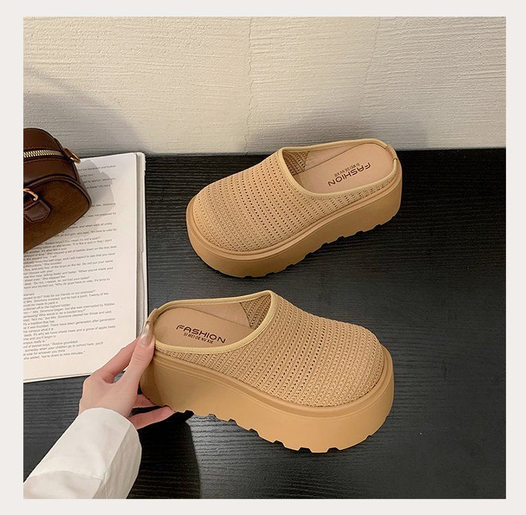 유행 스폰지 케이크 두꺼운 밑창 바오터우 하프 슬리퍼 여성의 2025 년 여름 새로운 스타일의 아우터 메시 통기성 게으른 사람 페달스토어 가기