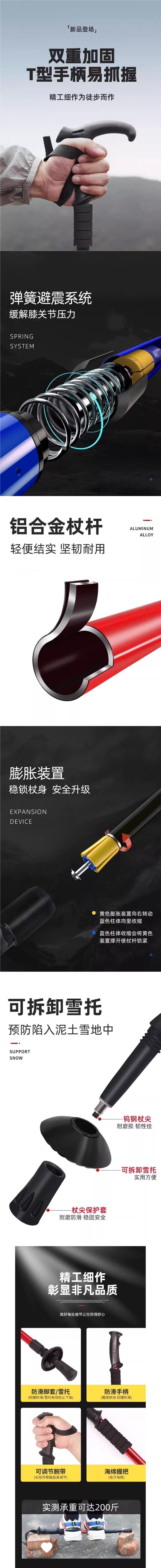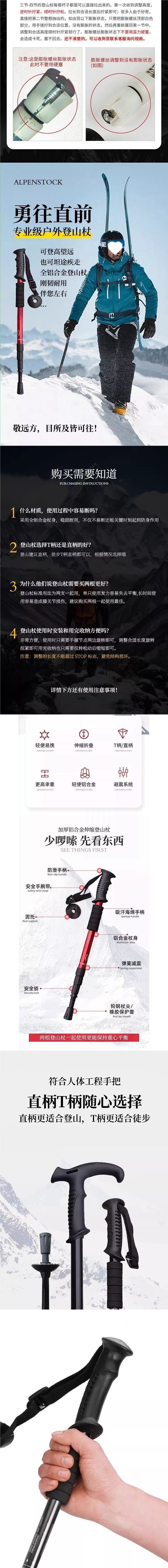 텔레스코픽 및 접이식 전문 야외 남성 및 여성 하이킹 및 등산 장비 지팡이 미끄럼 방지 등산 스틱스토어 가기