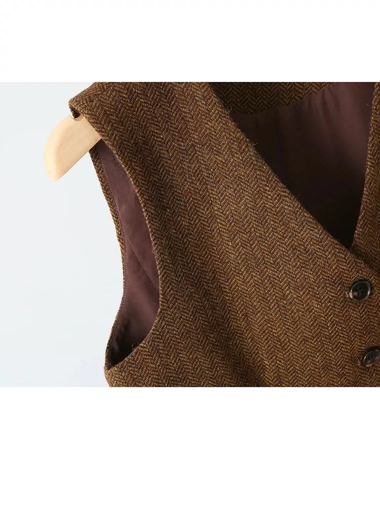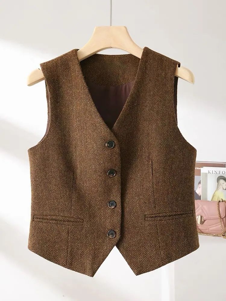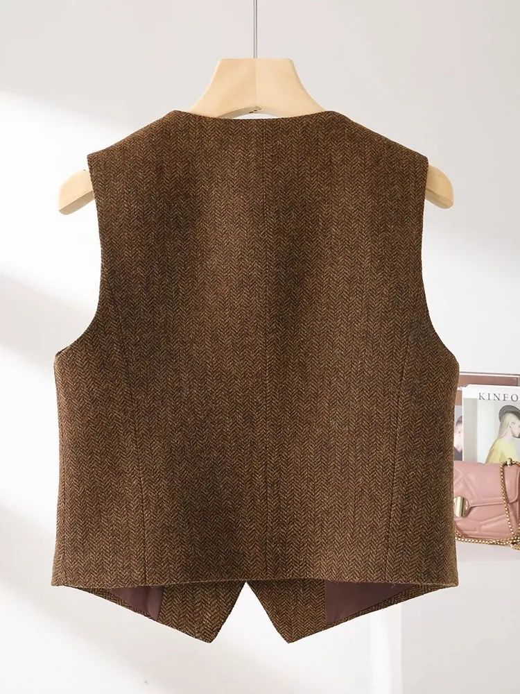 9366 새로운 봄, 가을 레이어링 영국 올드 머니 스타일 헤링본 모직 조끼 여성 가을, 겨울 민소매 심플 자켓스토어 가기