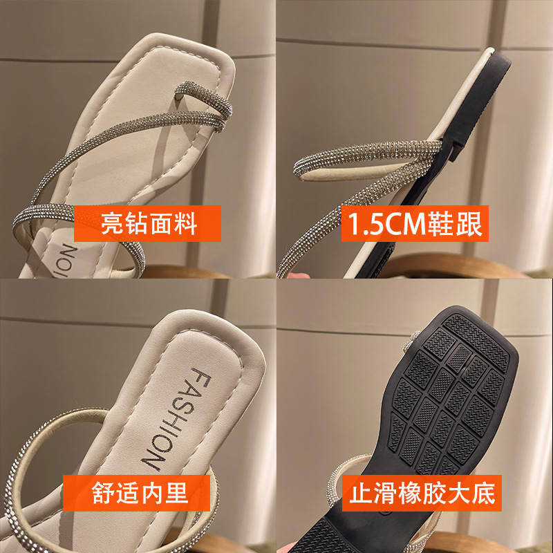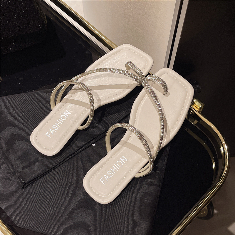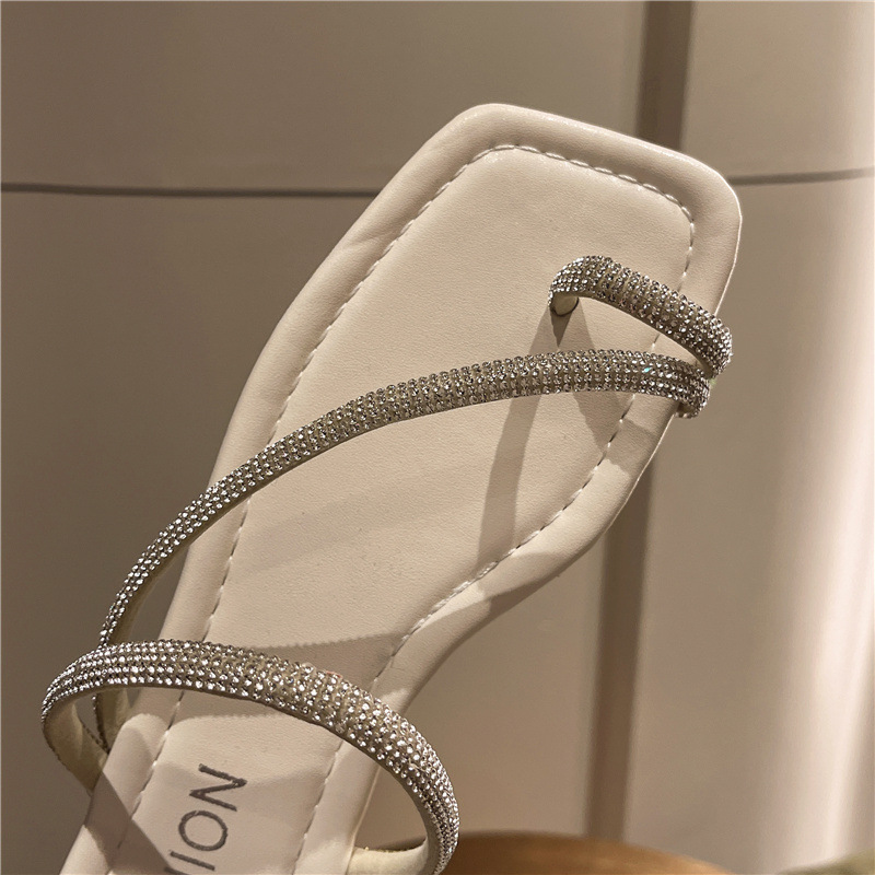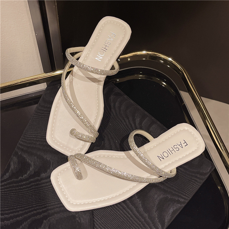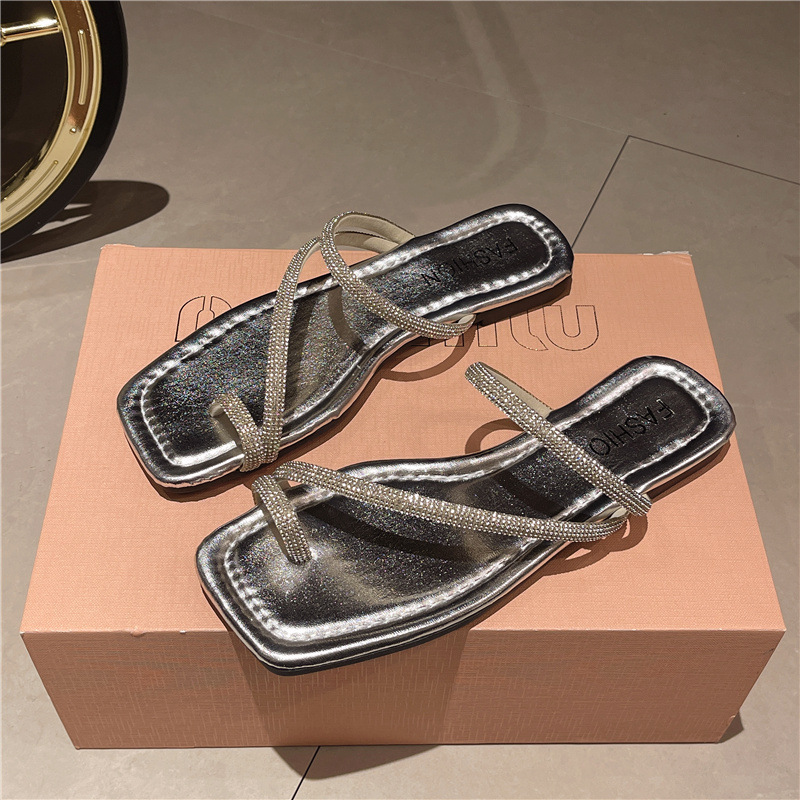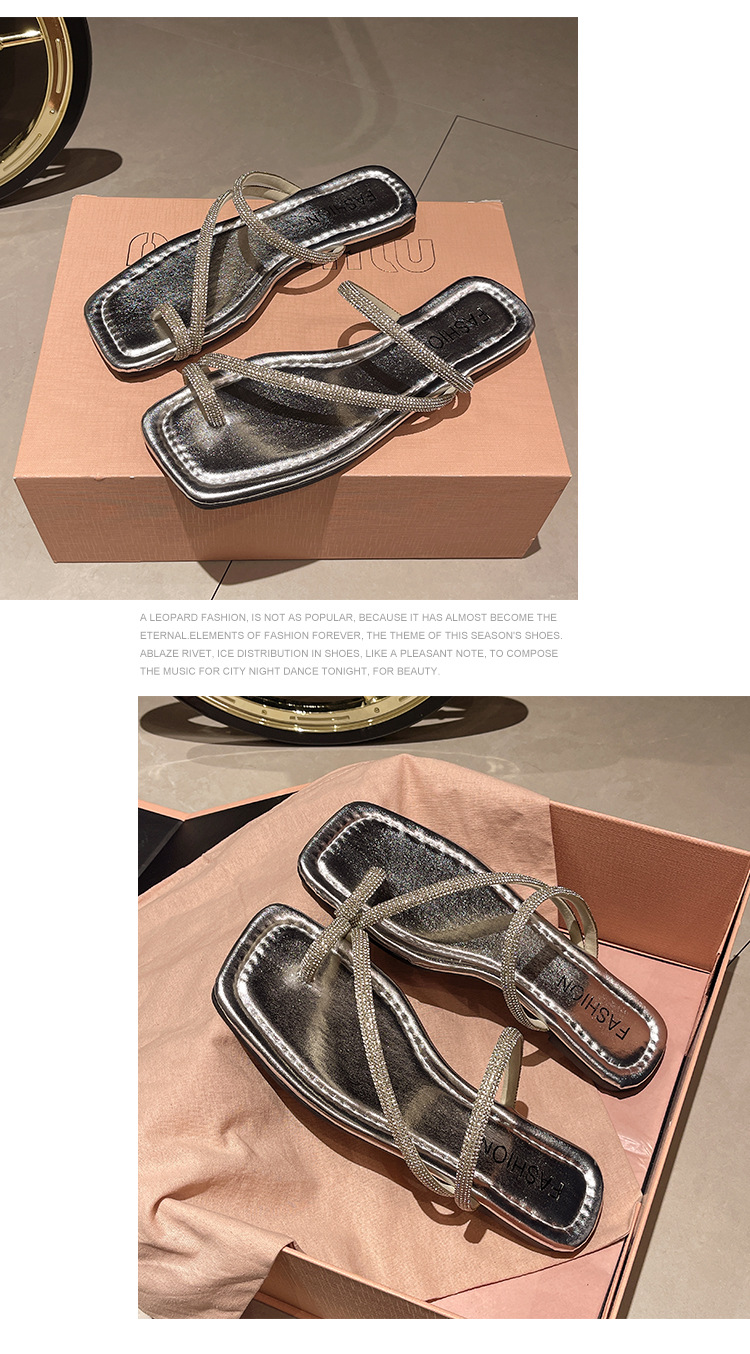 여름 아우터로 착용할 여성용 요정 스타일 라인스톤 샌들, 패셔너블한 슬립온 플랫 밑창, 휴가용 비치 샌들, 아름다운 샌들스토어 가기