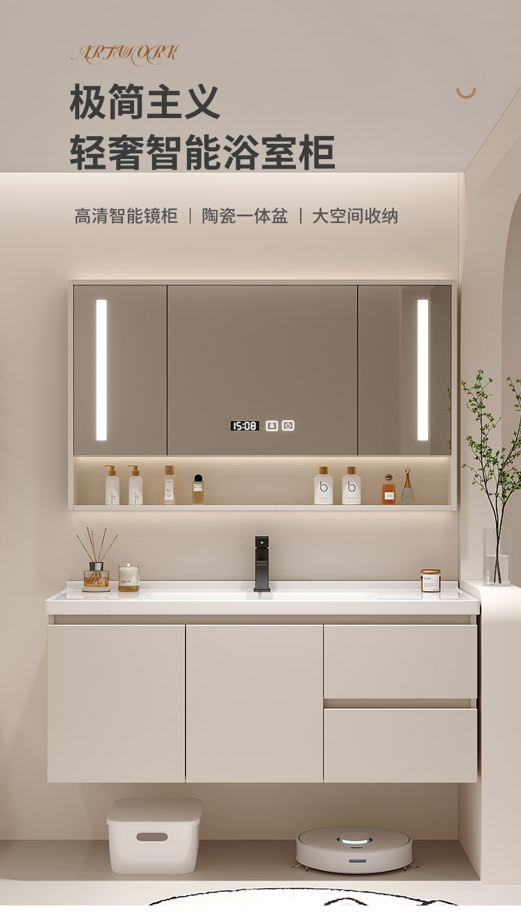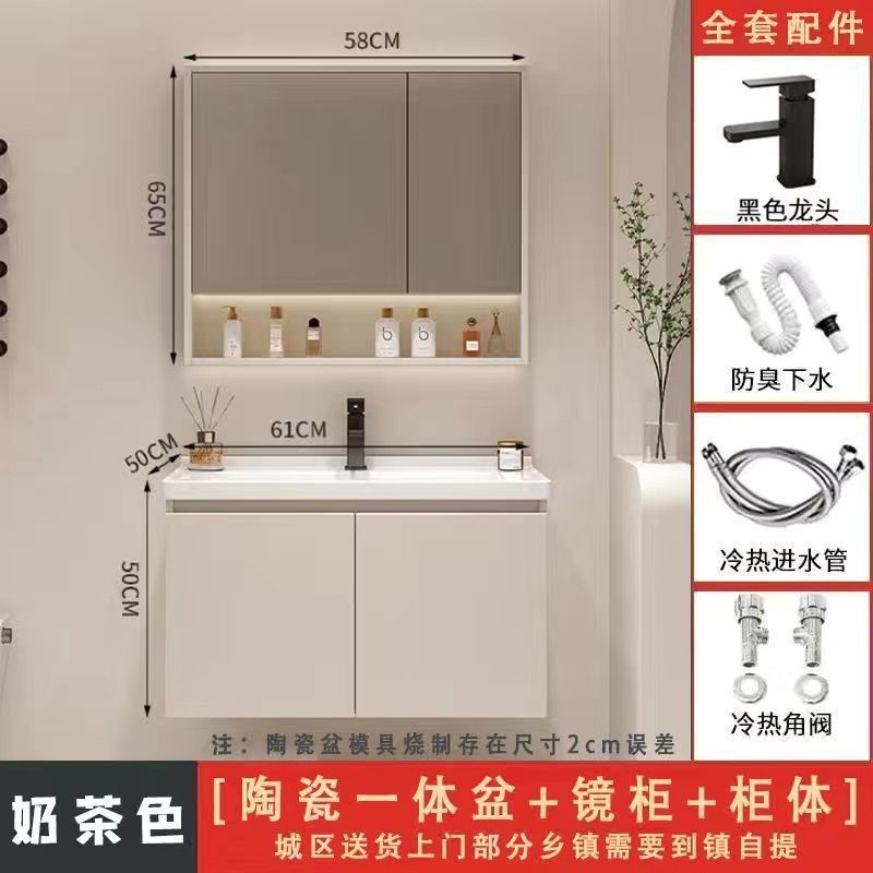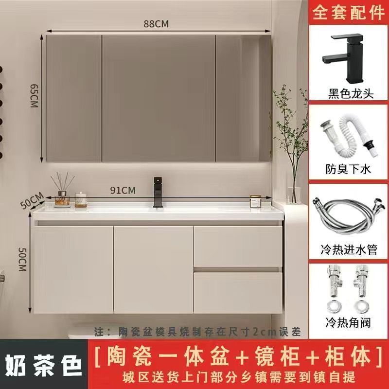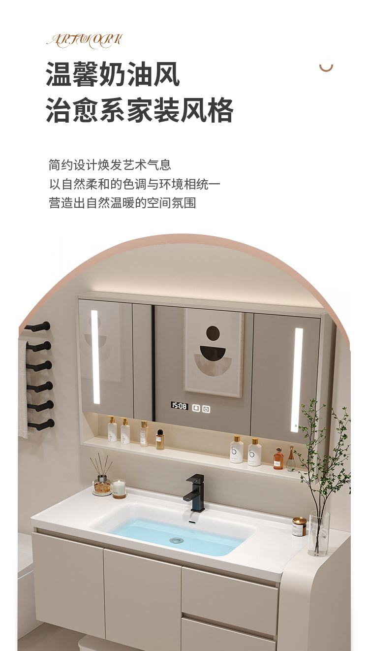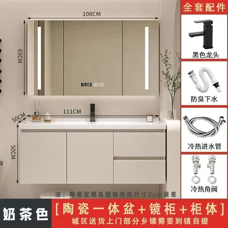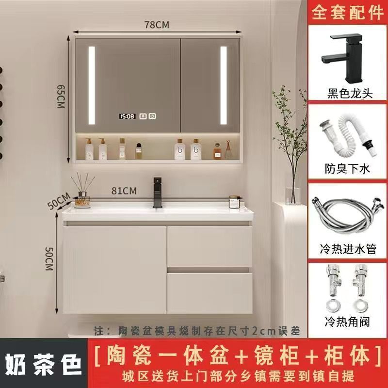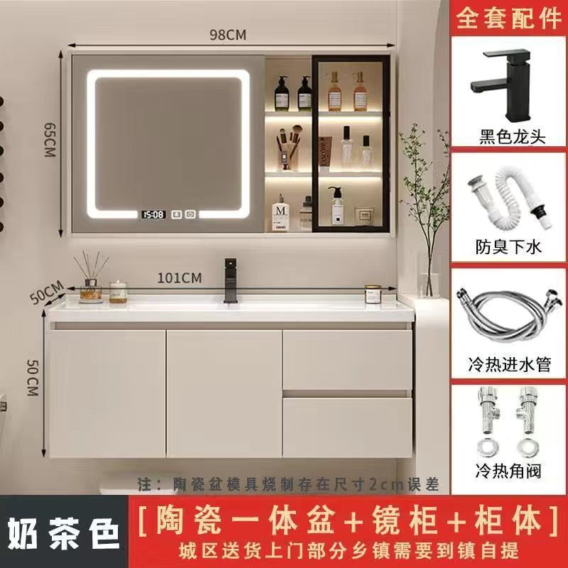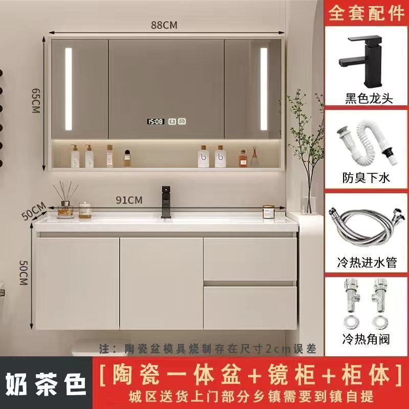 단단한 나무 세라믹 일체형 세면대 욕실 캐비닛 욕실 세면대 스마트 세면대 세면대 캐비닛 조합 벽걸이형스토어 가기