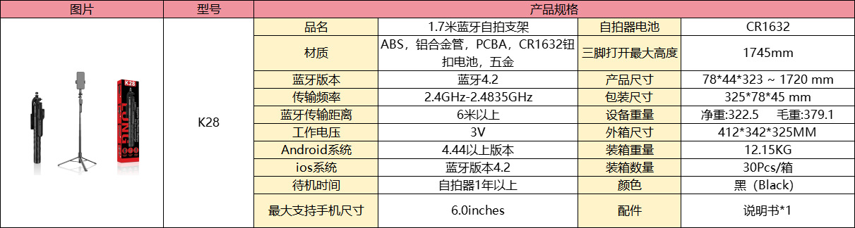 • K28 (1.75CM+알루미늄 합금 튜브+블루투스 리모컨+용골 브래킷)