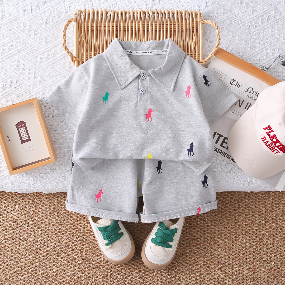 • HX-X2516 컬러풀 포니 폴로 반팔 투피스 세트 그레이