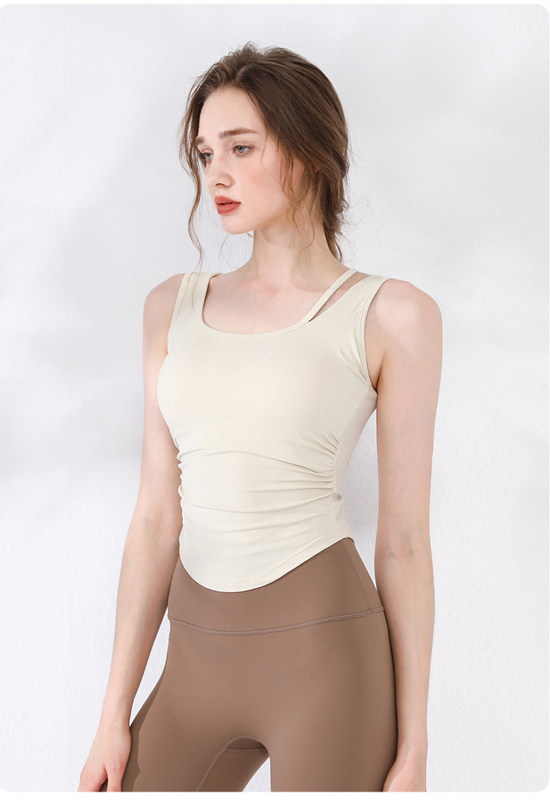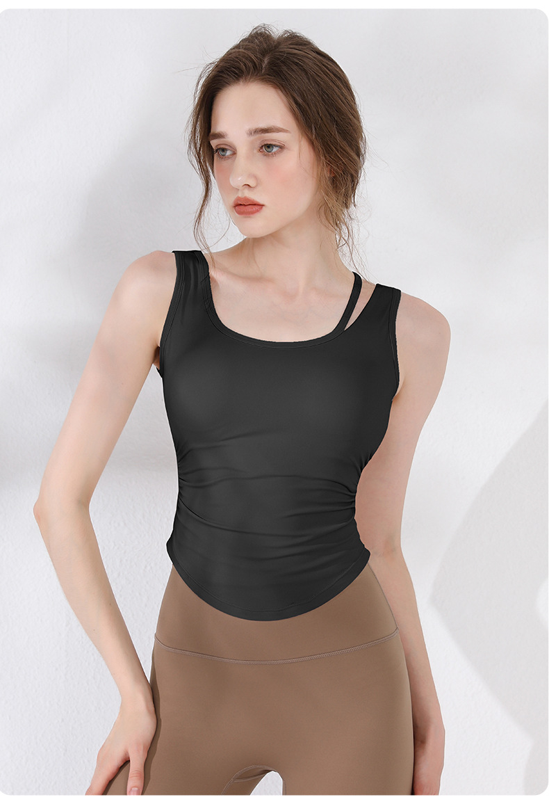 여성용 요가복 2026 여름 신상품 아름다운 등 디자인 피트니스복 스포츠 아웃도어 U자형 주름 요가 조끼 탑