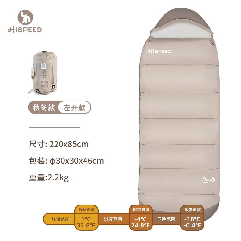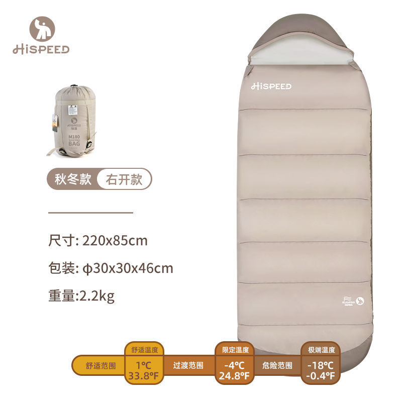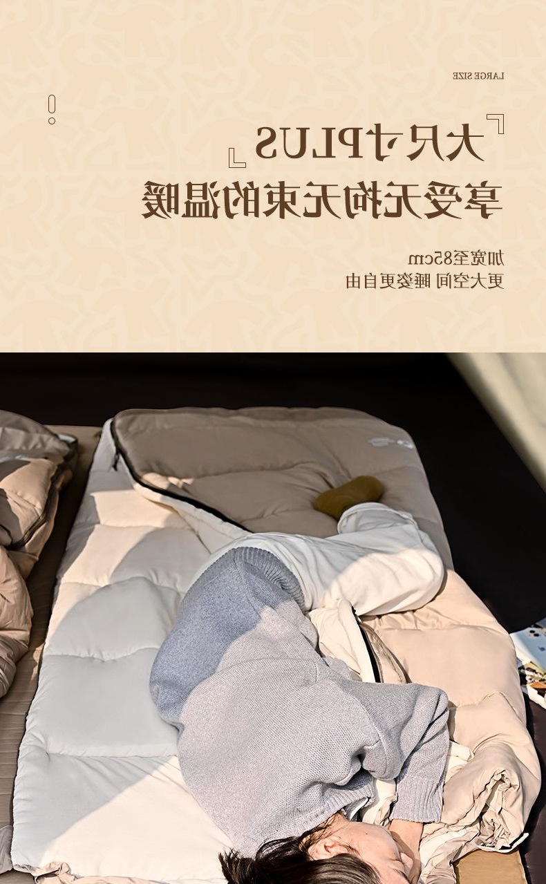 Hispeed 캠핑 침낭 탈부착 및 세탁 가능 겨울용 면 두꺼워지고 넓어진 후드 방한 접합 가능 이불
