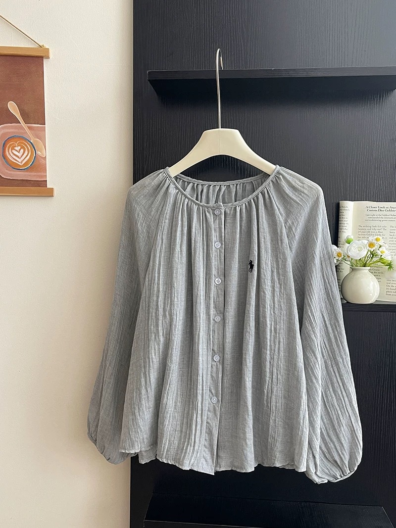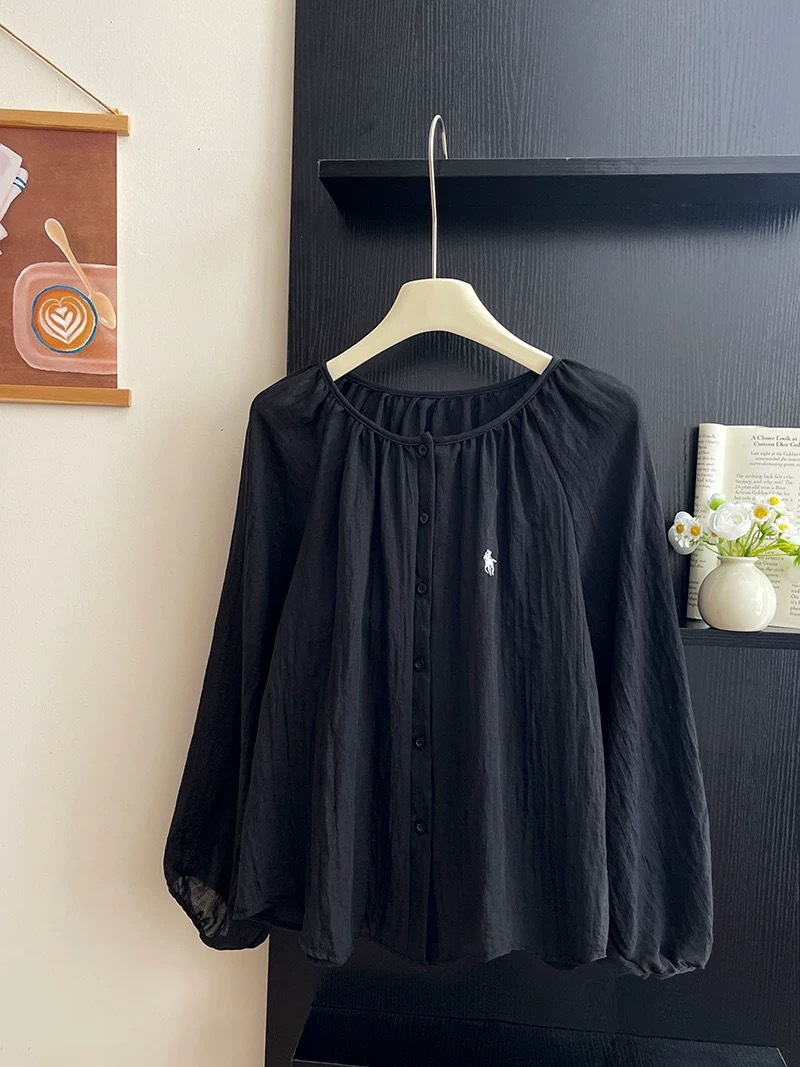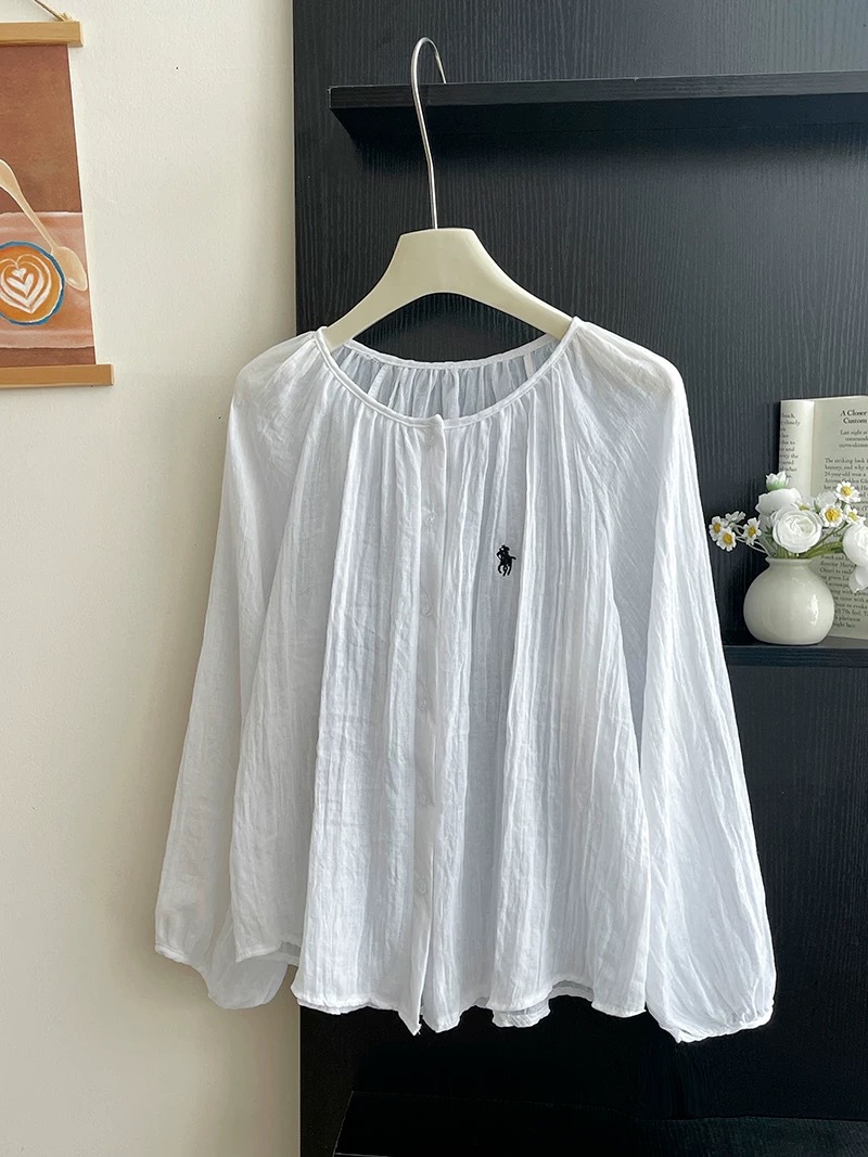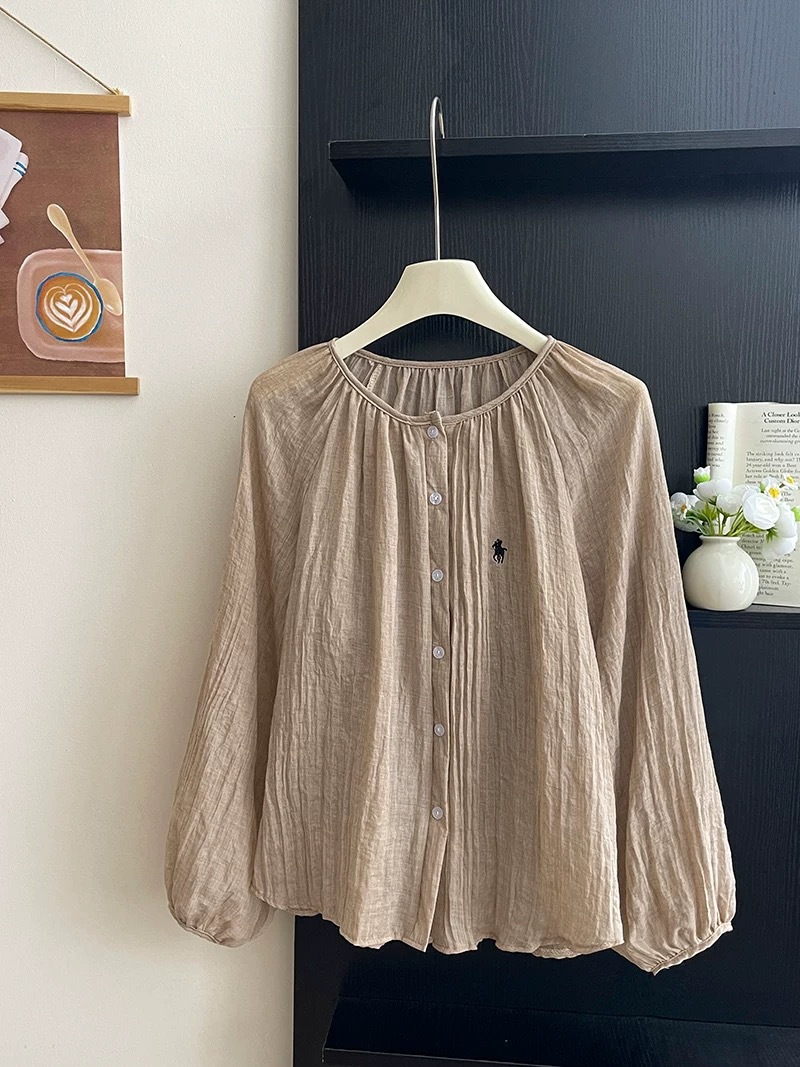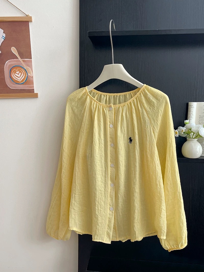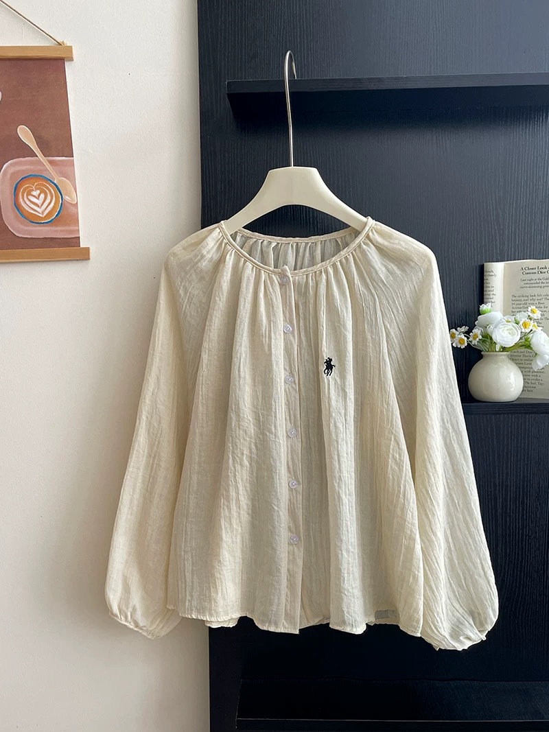 프랑스 빈티지 홀리데이 스타일 아이스 실크 대마 코튼 썬 스크린 셔츠 여성용 여름 포니 외형 에어컨 인형 카디건 탑