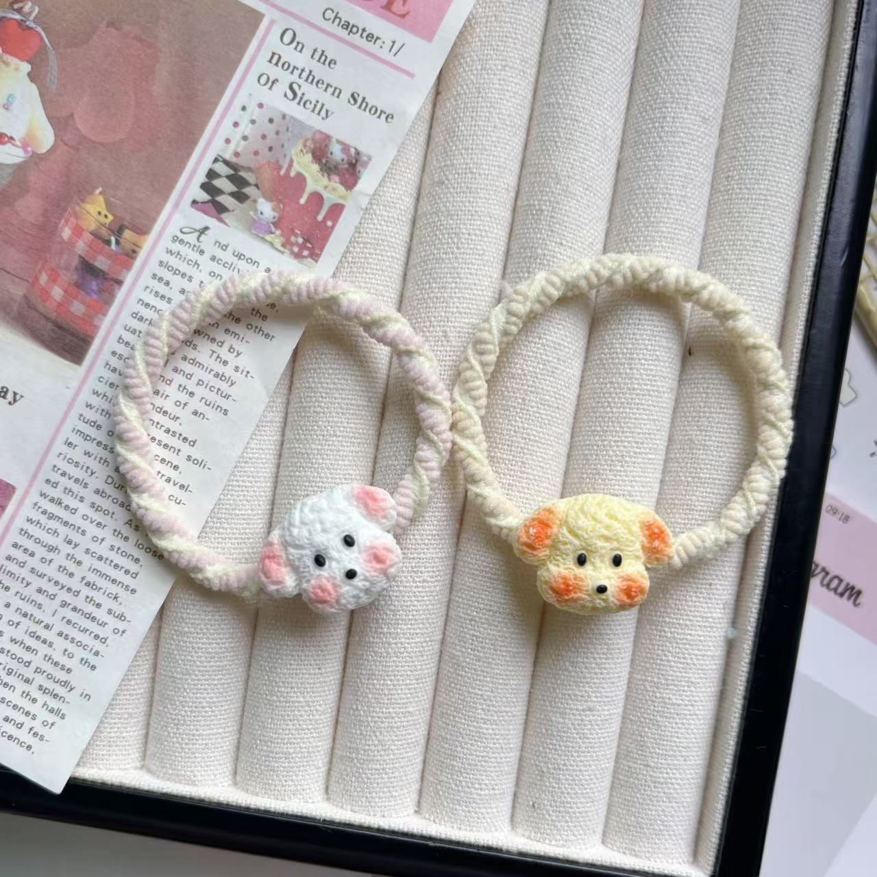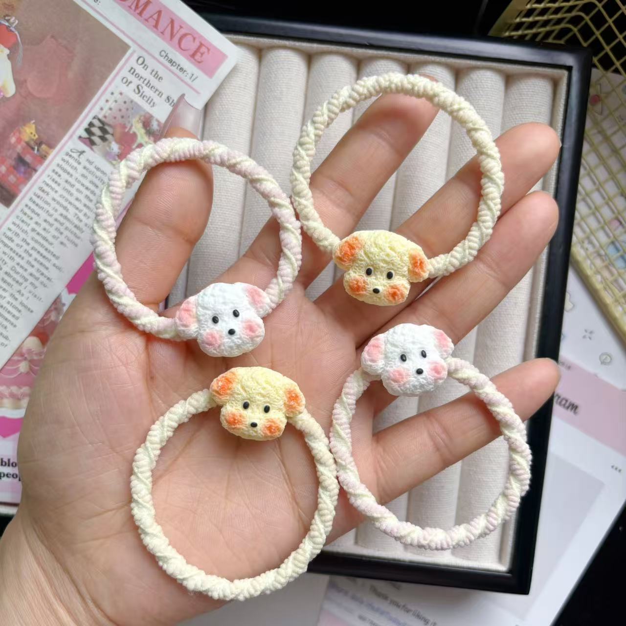 귀여운 강아지 마카롱 헤어 링 인 소녀 하트 헤드 로프 달콤한 고무 밴드 커플 최고의 친구 남자 친구 모리 스타일 헤어 액세서리