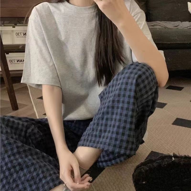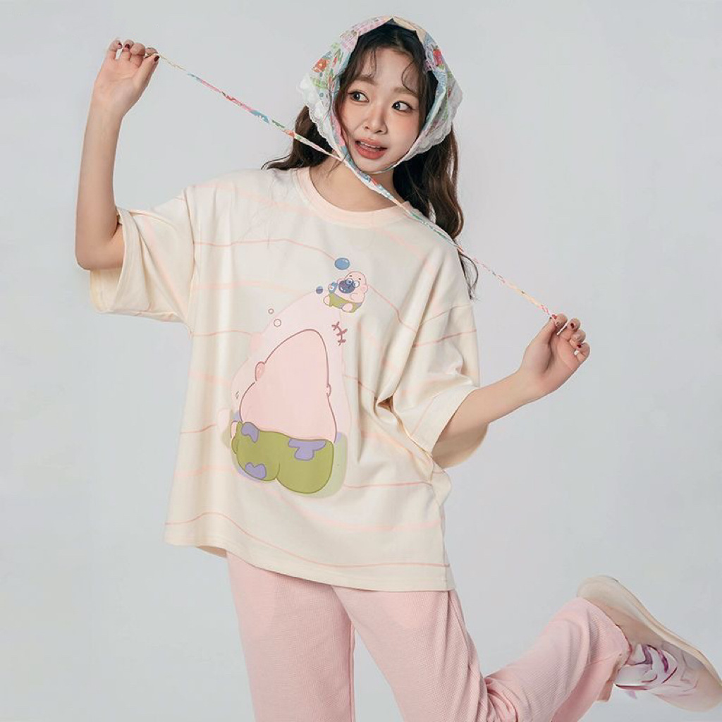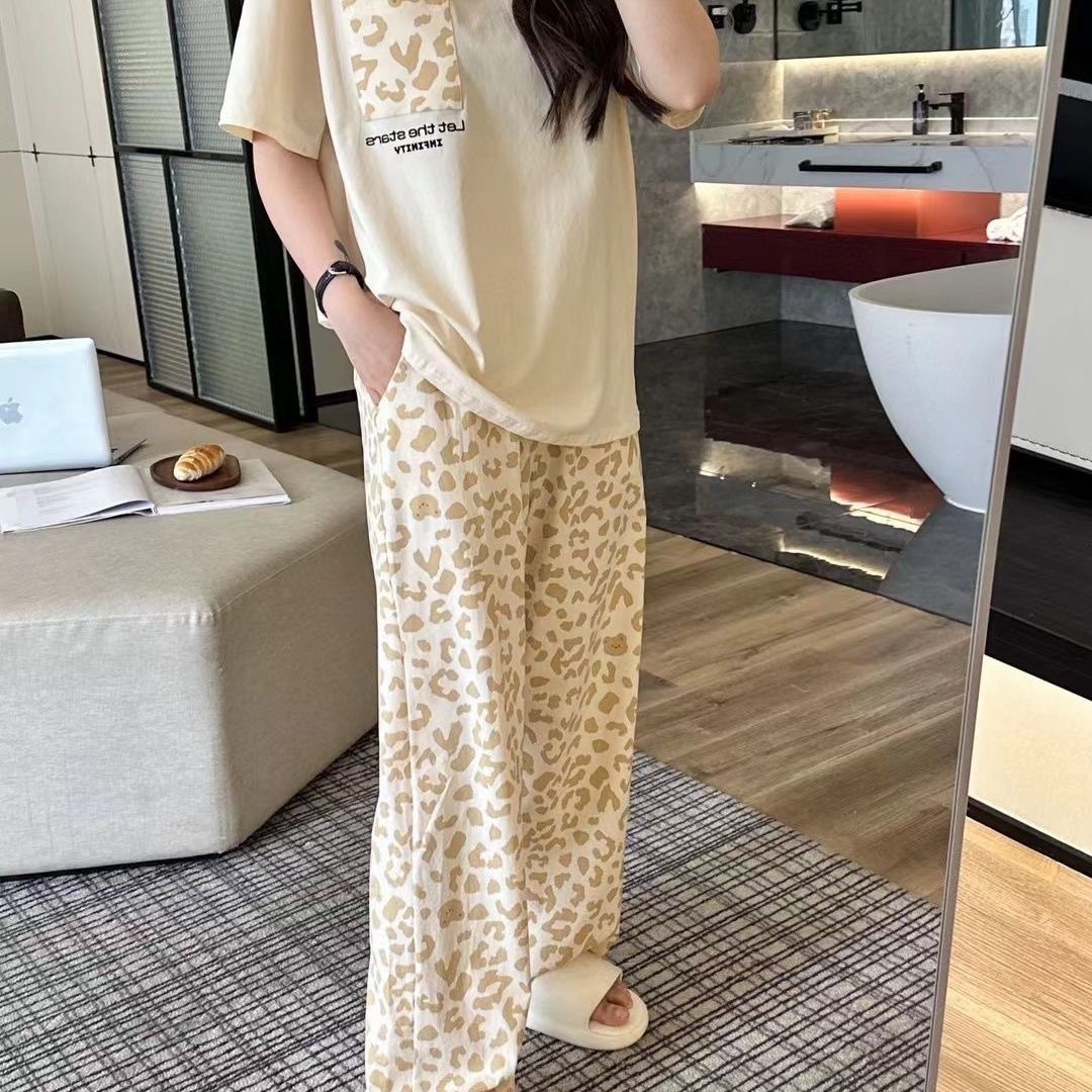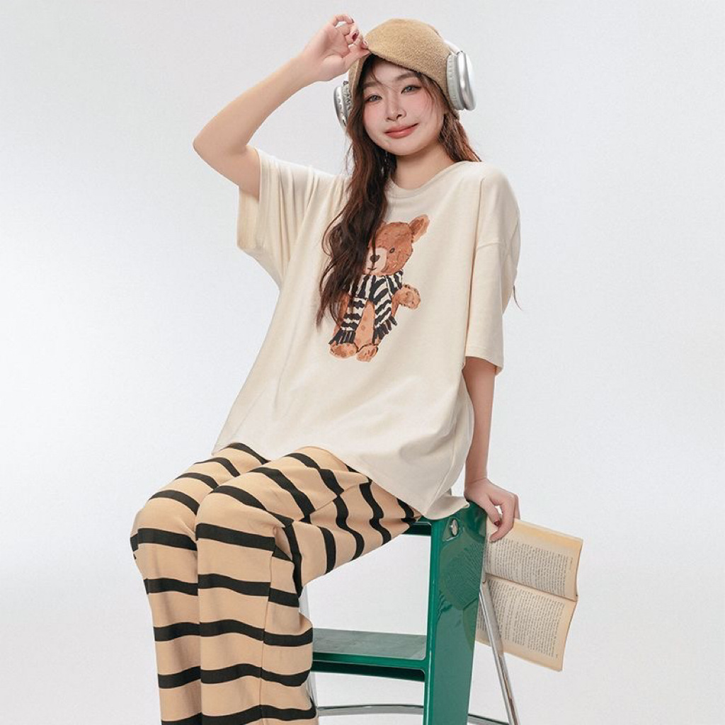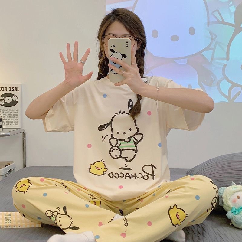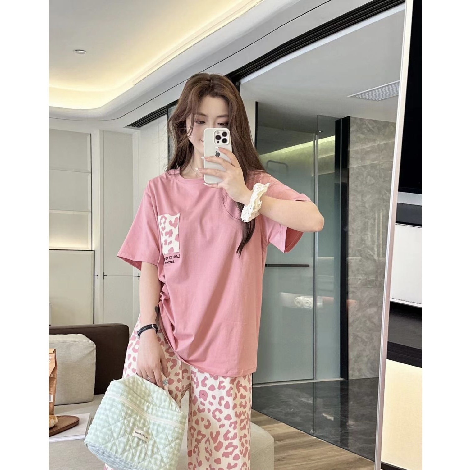 국경 간 대외 무역 봄과 가을 파자마 여성 반팔 바지 둥근 목 만화 느슨한 외부 착용 아카데미 스타일 홈 의류 여성 세트스토어 가기