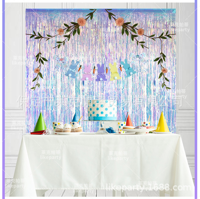 레이저 다채로운 황금 빛 다채로운 비 실크 커튼 야외 술 꿈 산책로 명랑한 스팟 스카이 커튼 비 실크 파티 장식스토어 가기