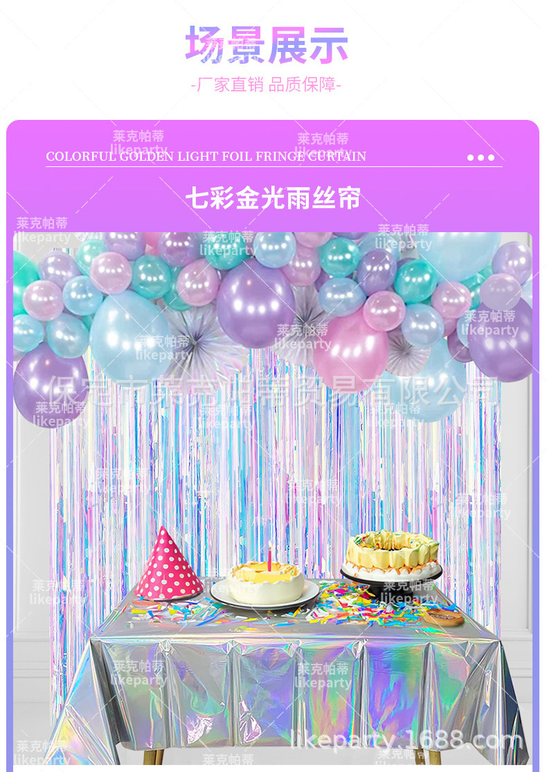 레이저 다채로운 황금 빛 다채로운 비 실크 커튼 야외 술 꿈 산책로 명랑한 스팟 스카이 커튼 비 실크 파티 장식