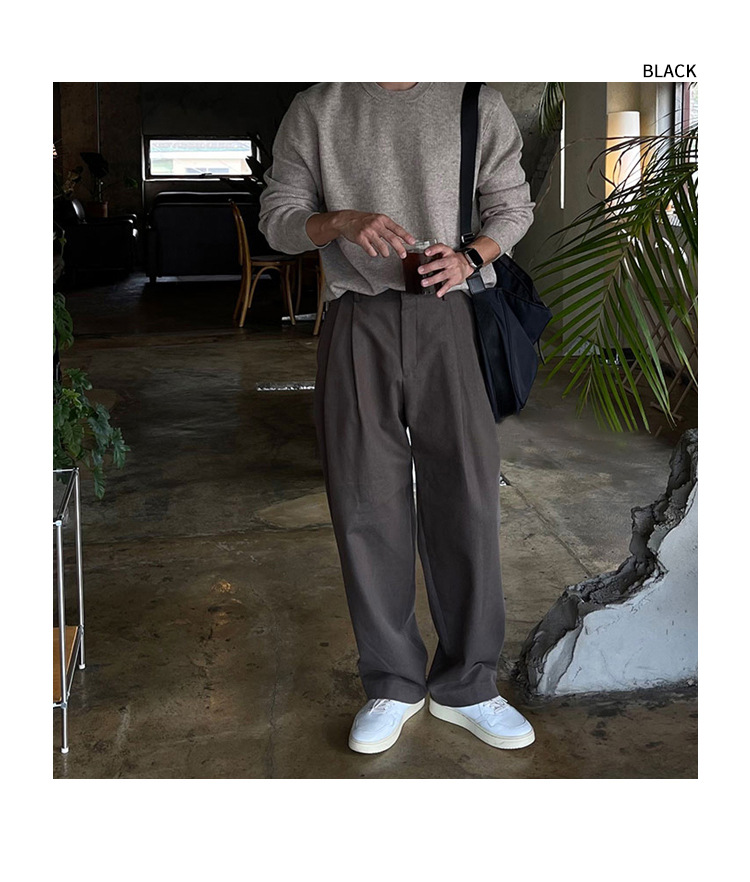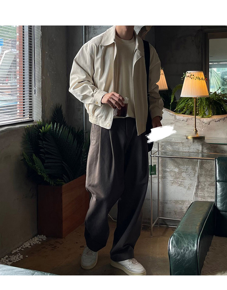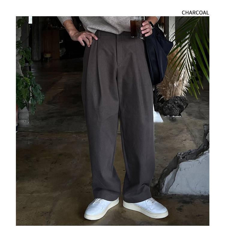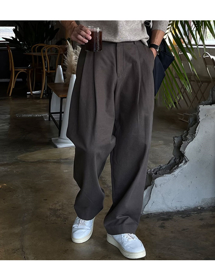 다크 그레이 더블 주름 바지 남성 봄과 가을 홍콩 스타일 레트로 틈새 디자인 캐주얼 바지 느슨한 스트레이트 바지스토어 가기
