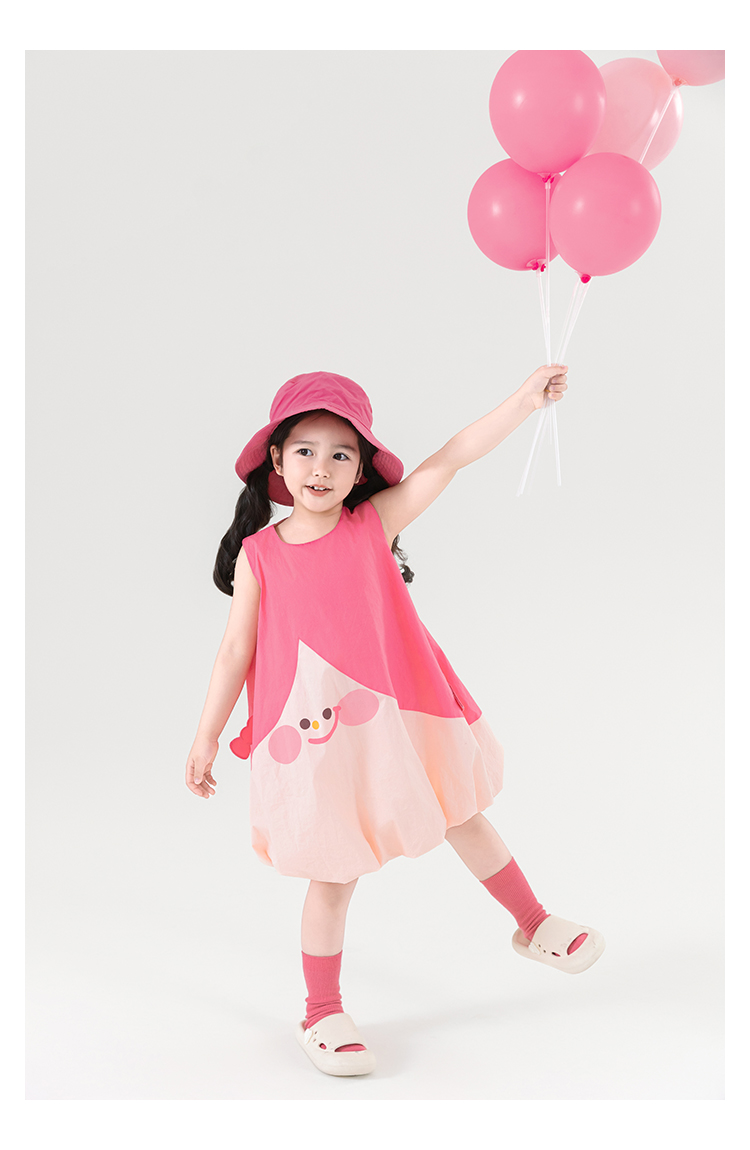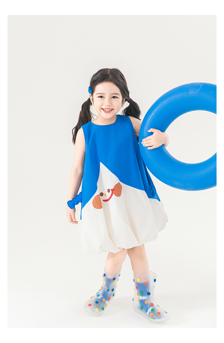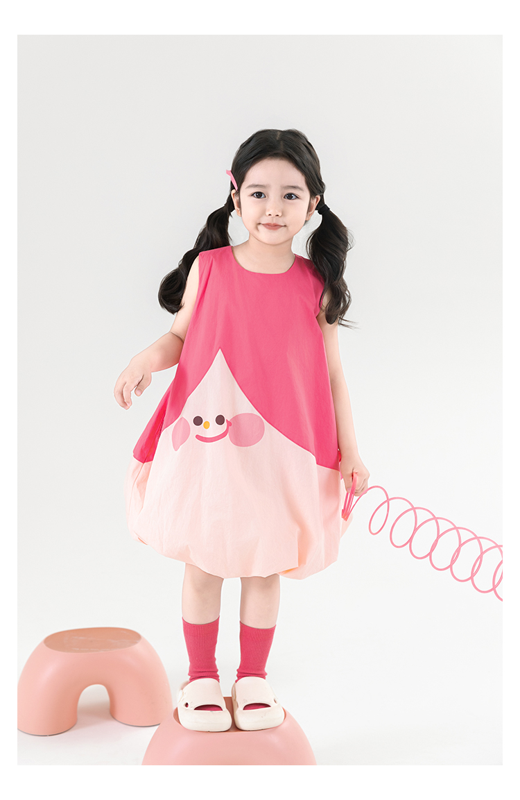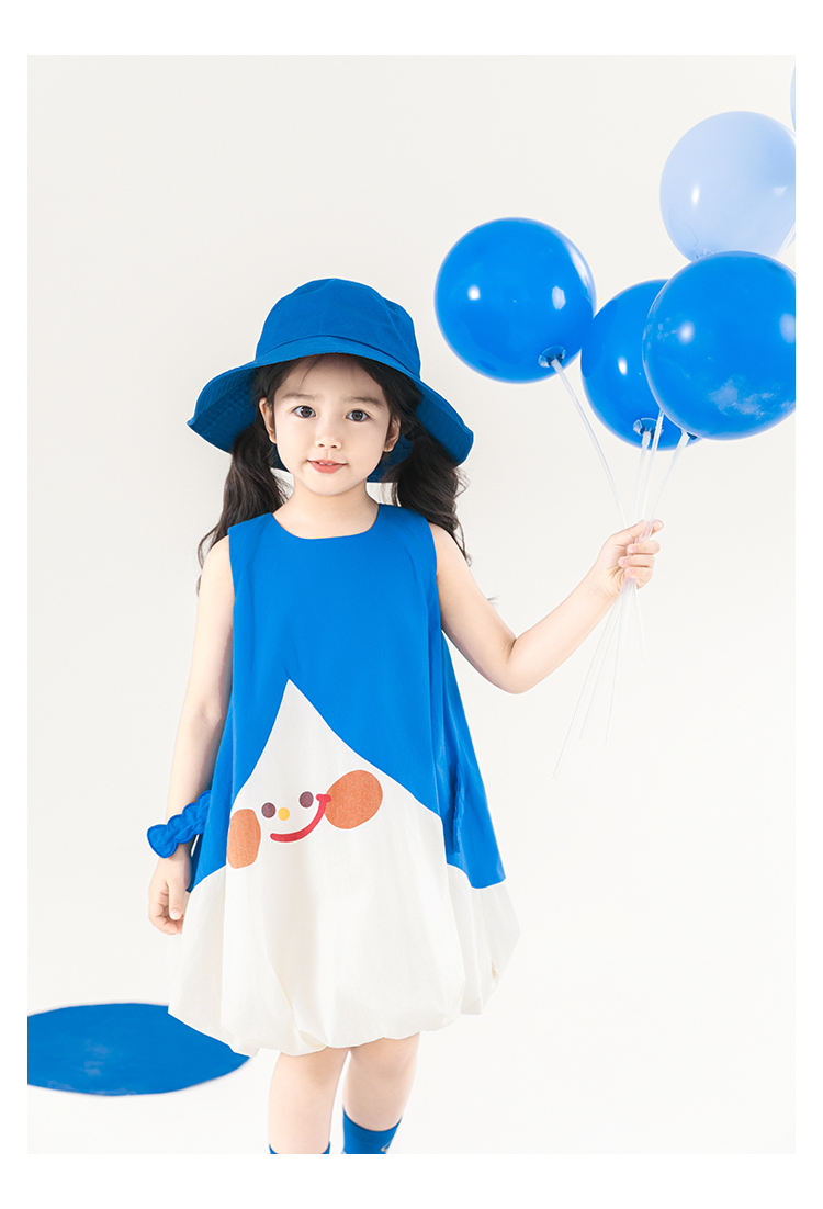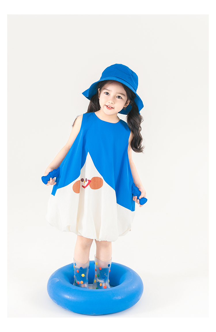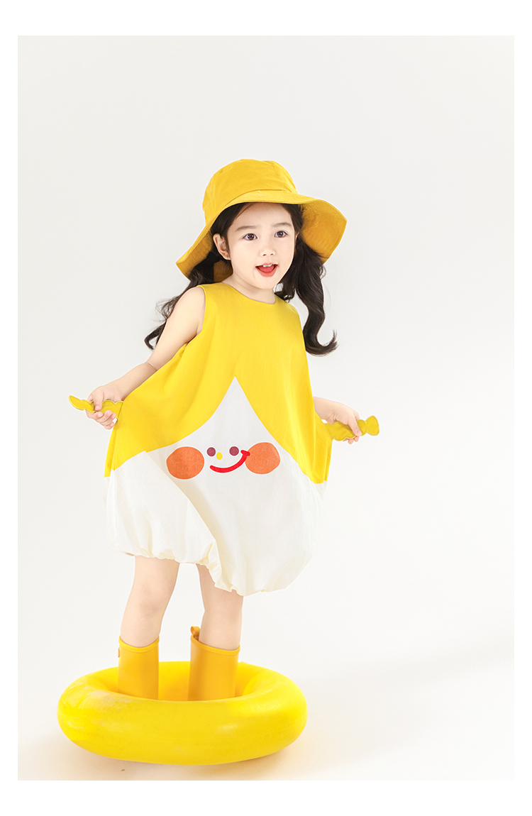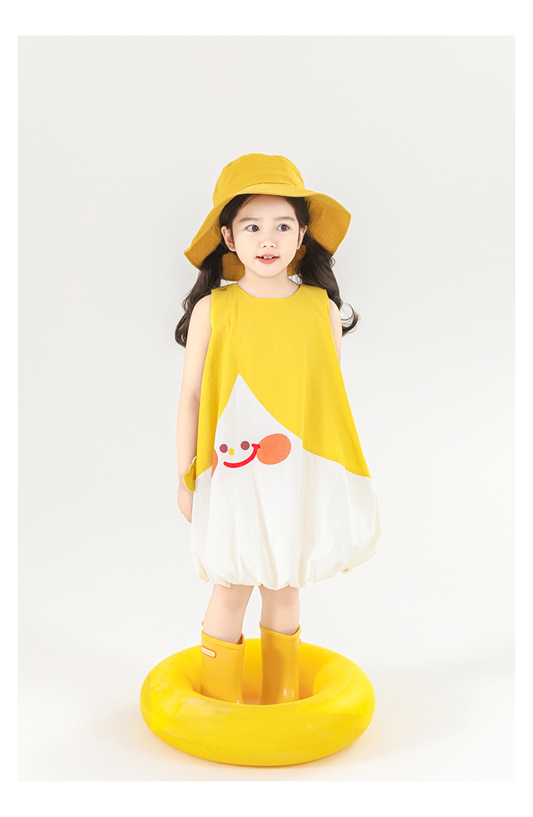 Wulibuyi 소녀의 귀여운 얼굴 프린트 조끼 드레스 여름 어린이의 달콤하고 귀여운 민소매 꽃 드레스