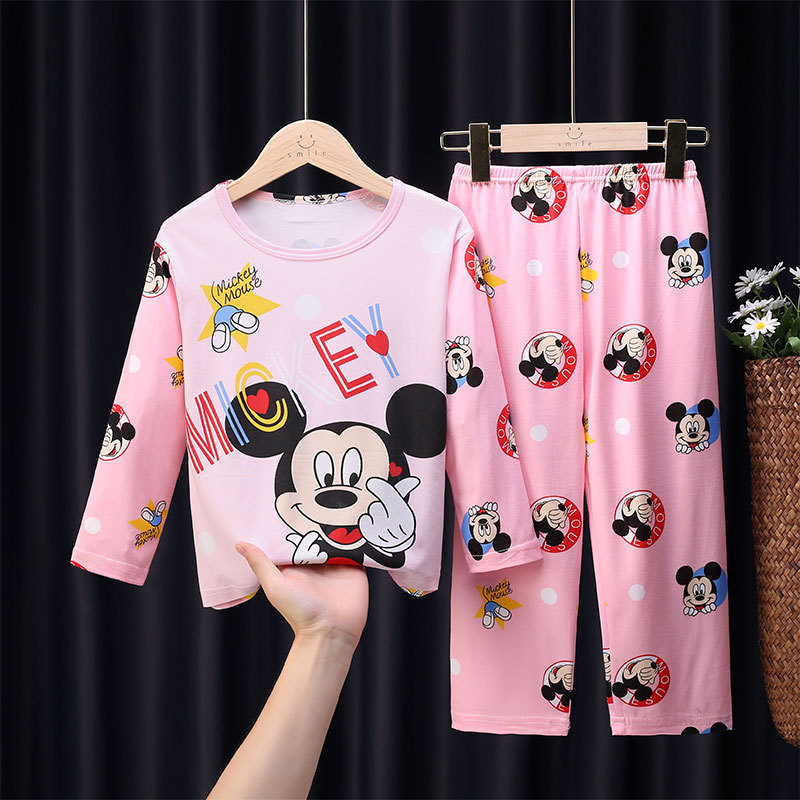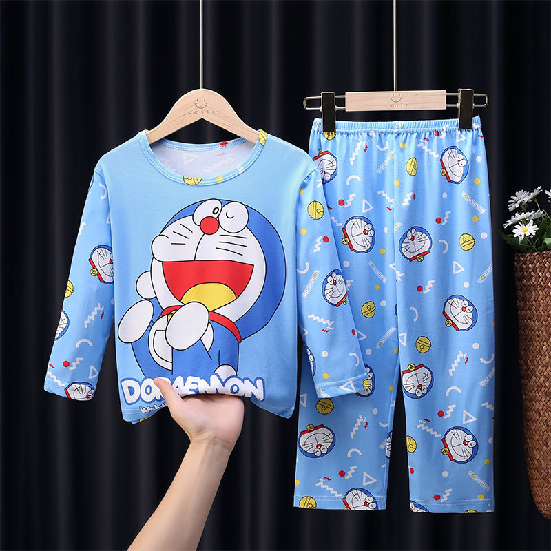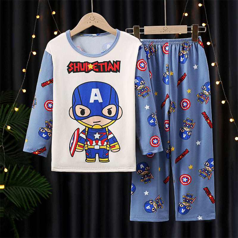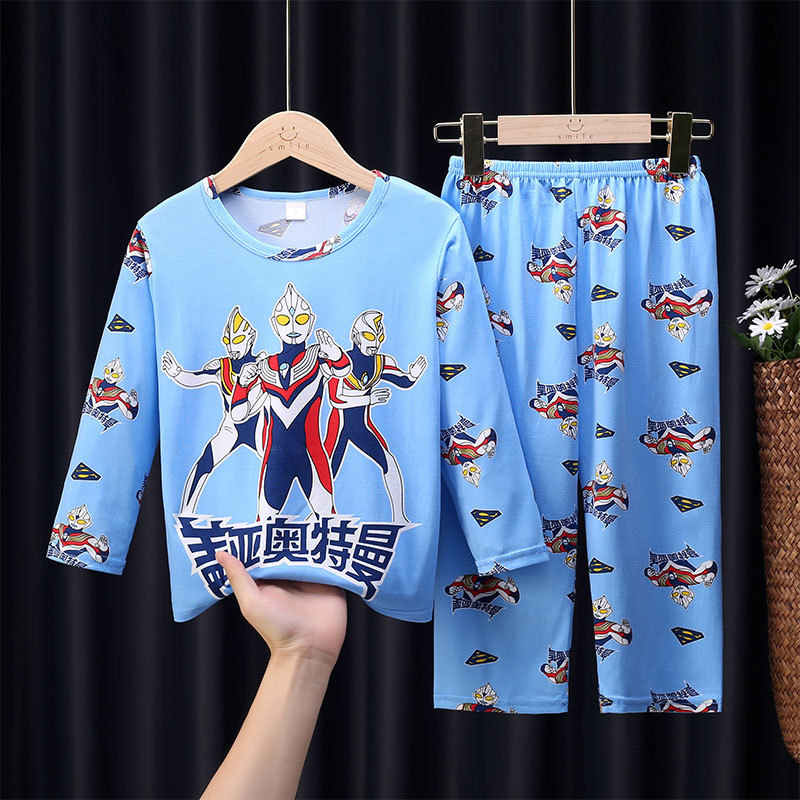 봄과 가을 어린이 잠옷 긴팔 얇은 만화 세트 소년 소녀 중년 아기는 외부 가정 옷을 입을 수 있습니다스토어 가기