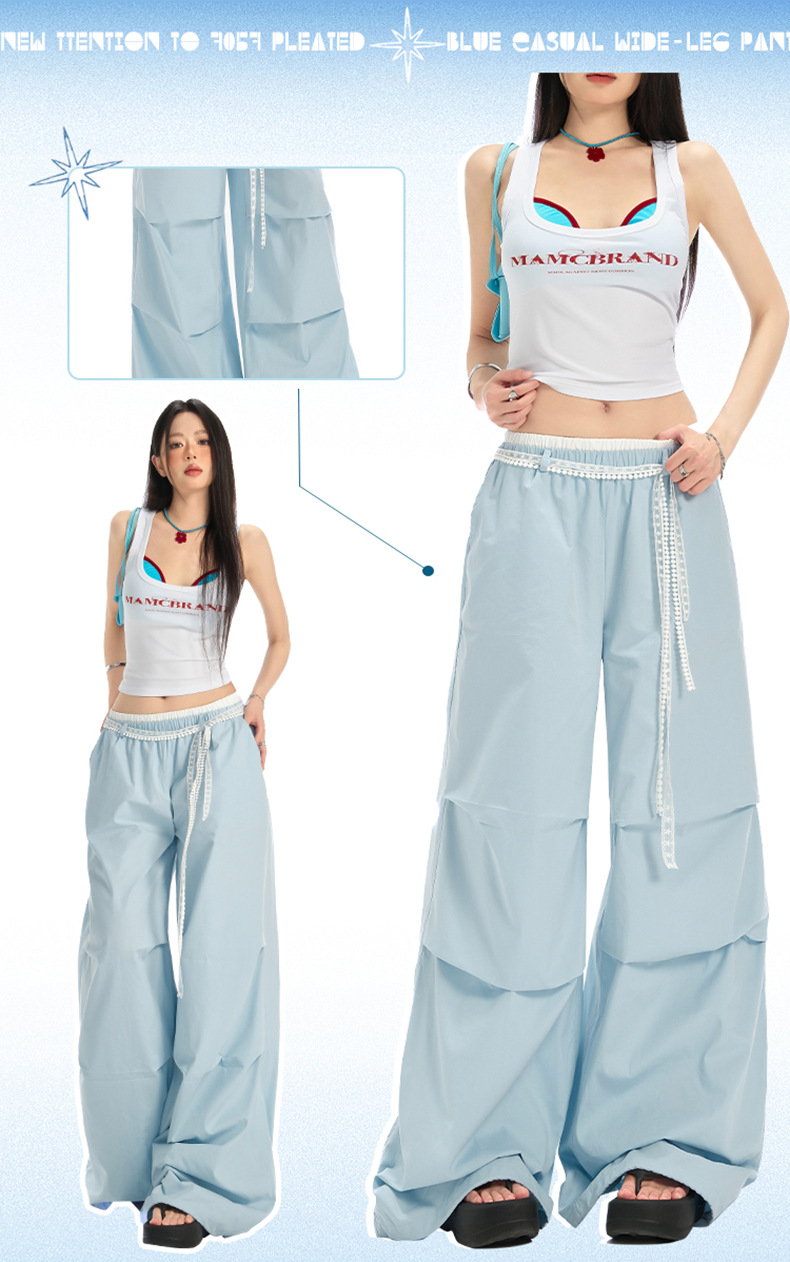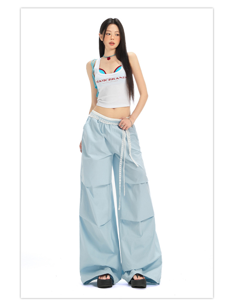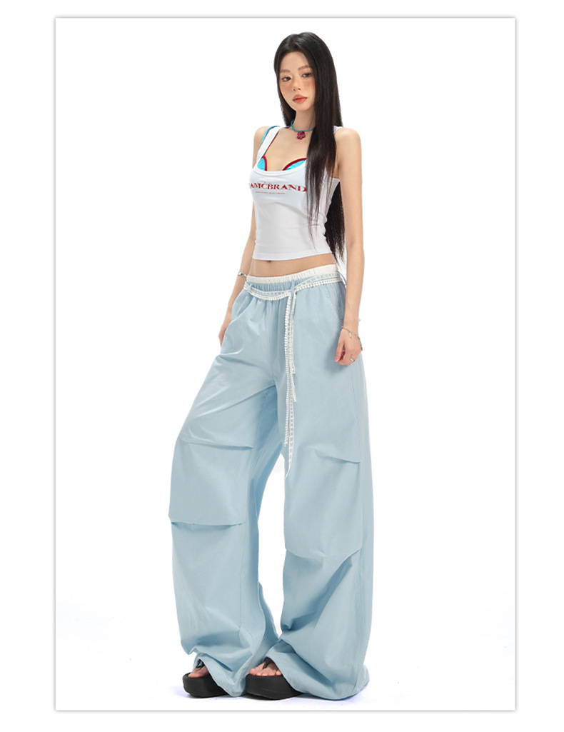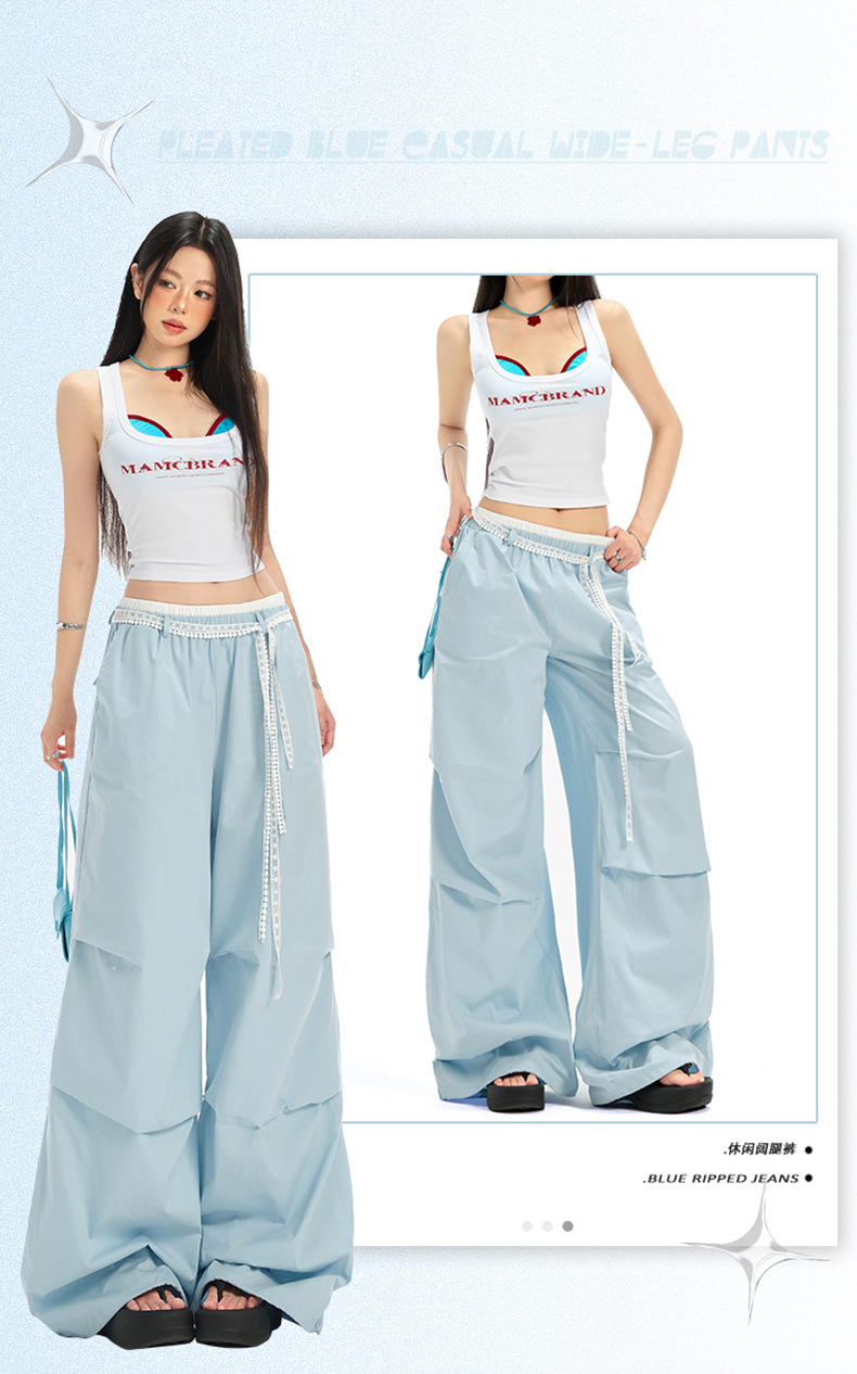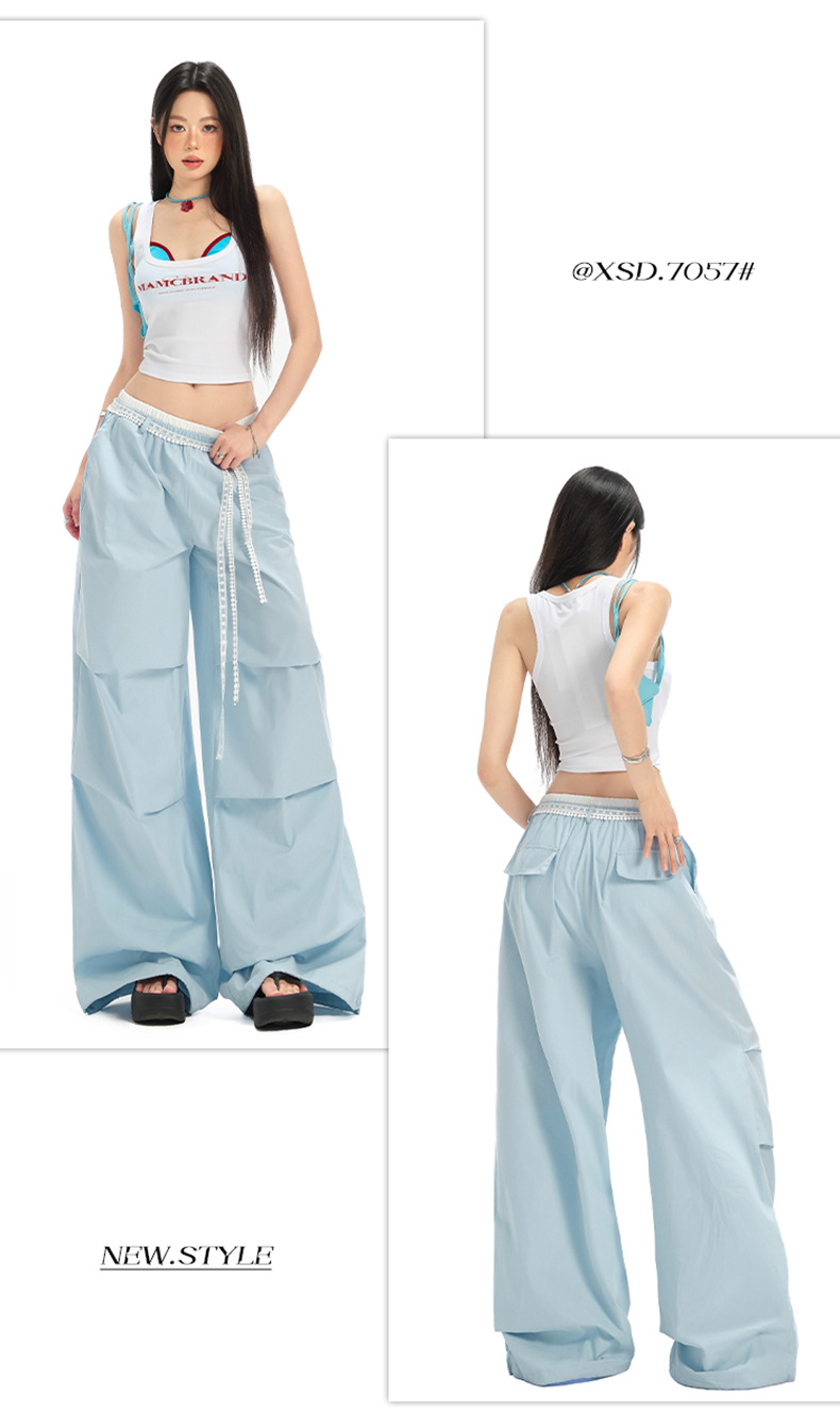 25 번째 ootd! | 높은 허리 바지 새 여름 느슨한 게으른 스타일 넓은 다리 바지 캐주얼 바지 미국 바지