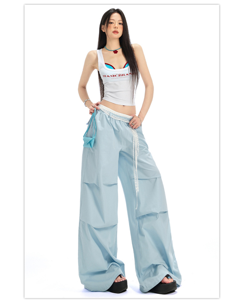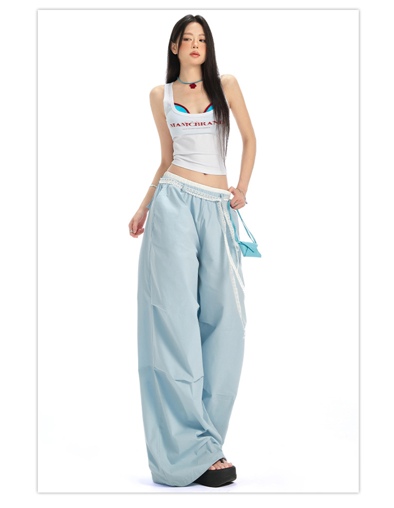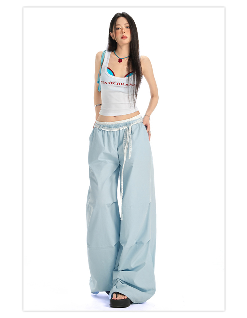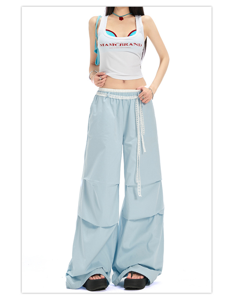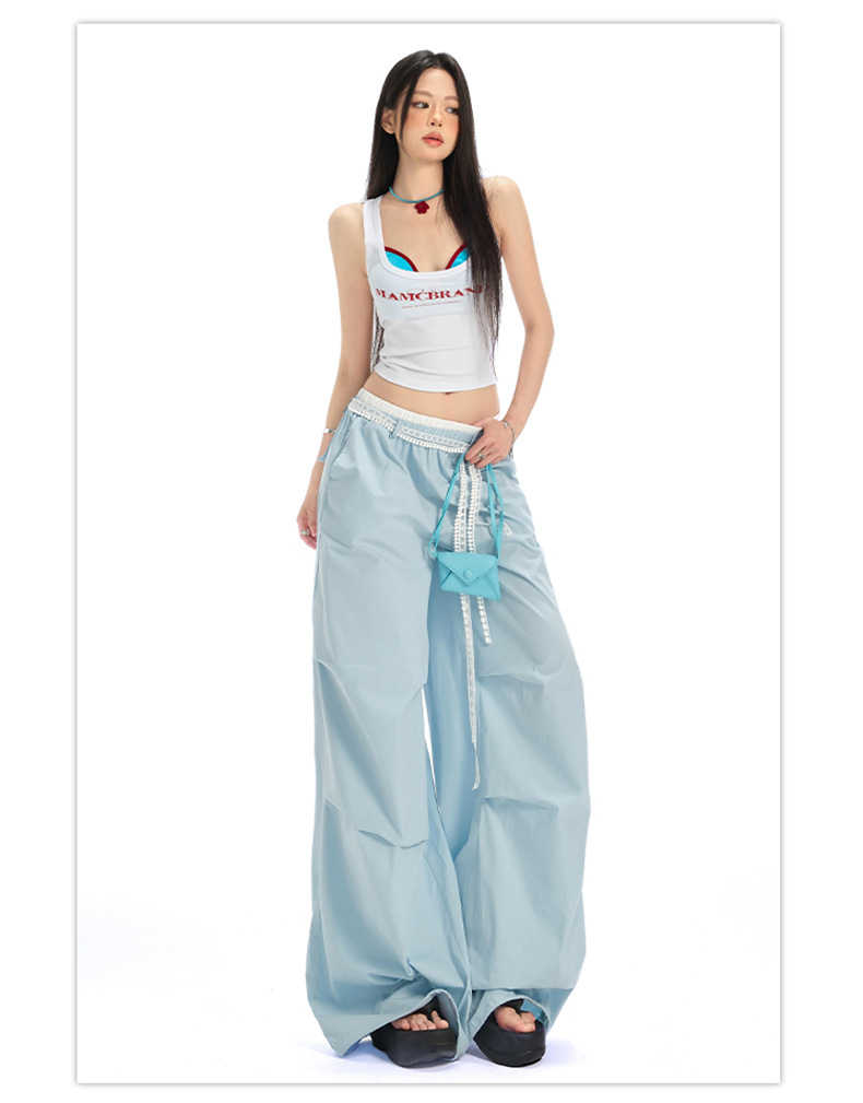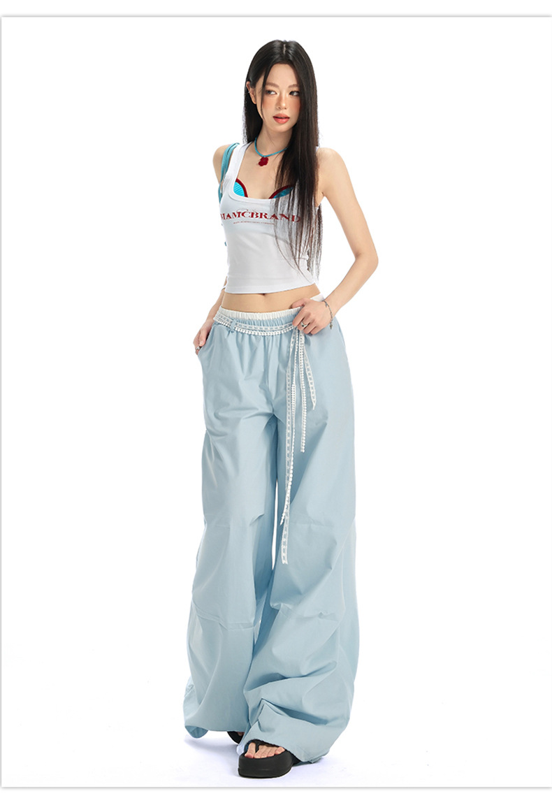 25 번째 ootd! | 높은 허리 바지 새 여름 느슨한 게으른 스타일 넓은 다리 바지 캐주얼 바지 미국 바지