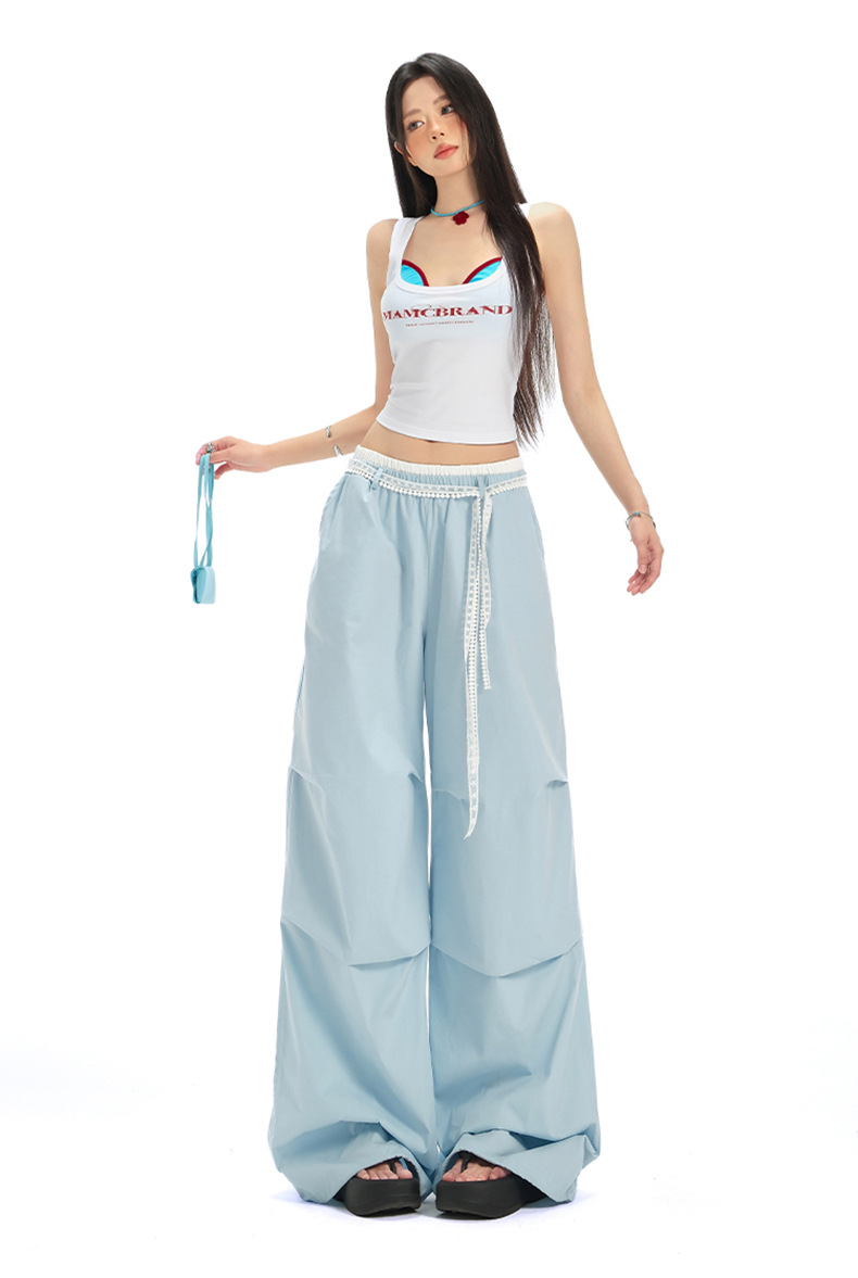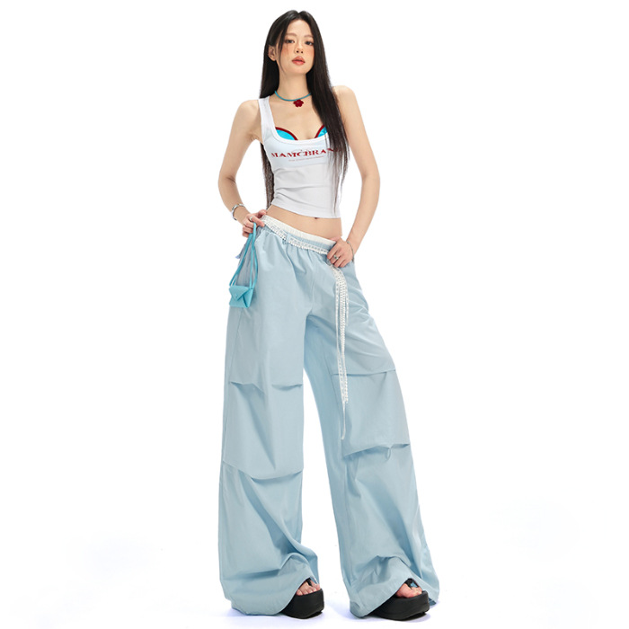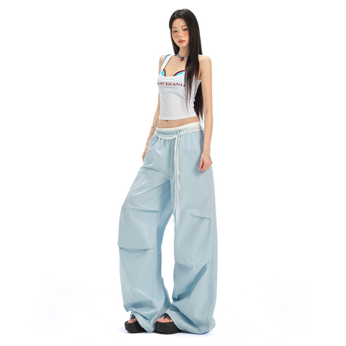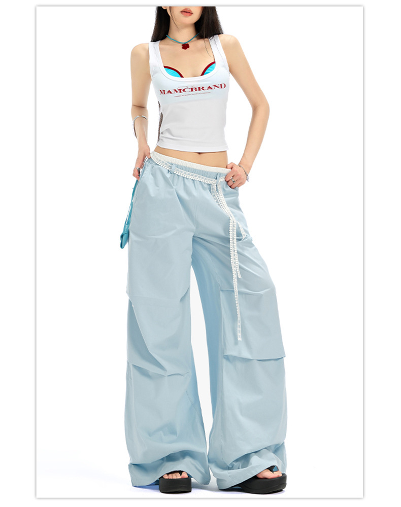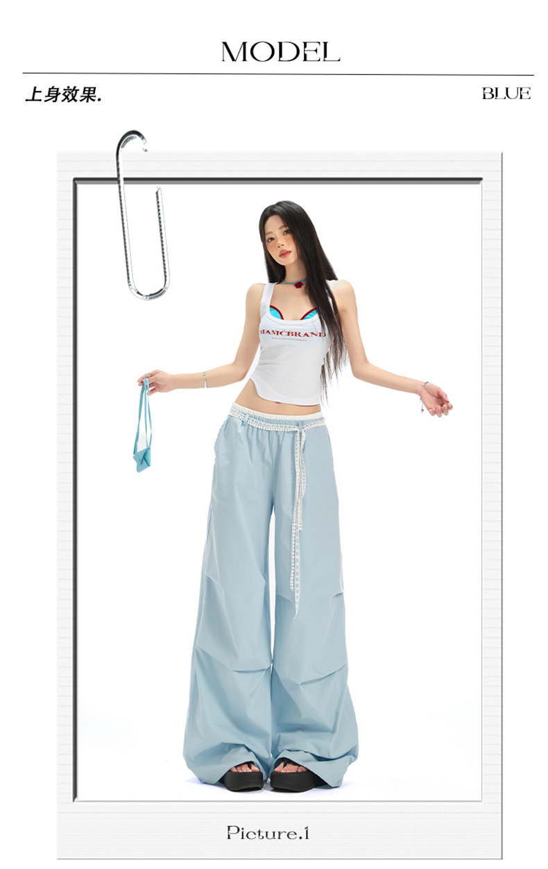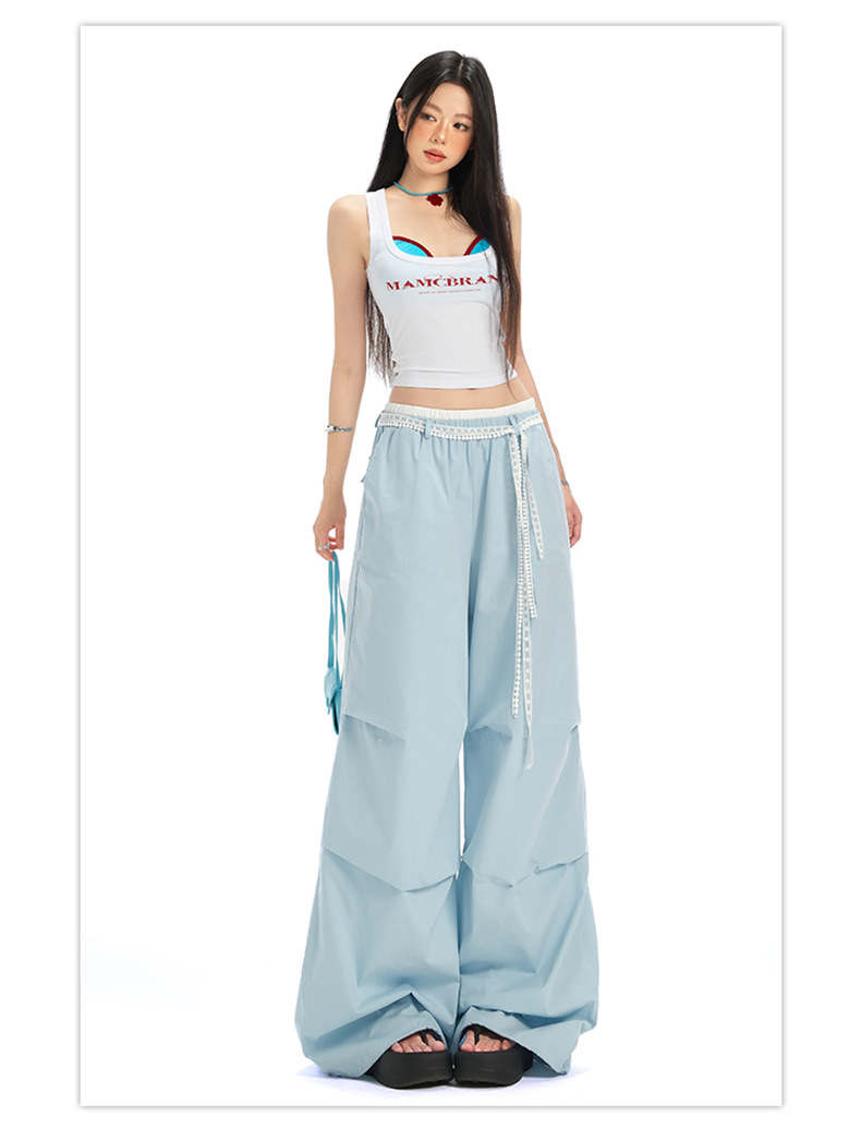 25 번째 ootd! | 높은 허리 바지 새 여름 느슨한 게으른 스타일 넓은 다리 바지 캐주얼 바지 미국 바지