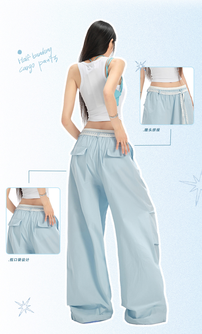 25 번째 ootd! | 높은 허리 바지 새 여름 느슨한 게으른 스타일 넓은 다리 바지 캐주얼 바지 미국 바지스토어 가기