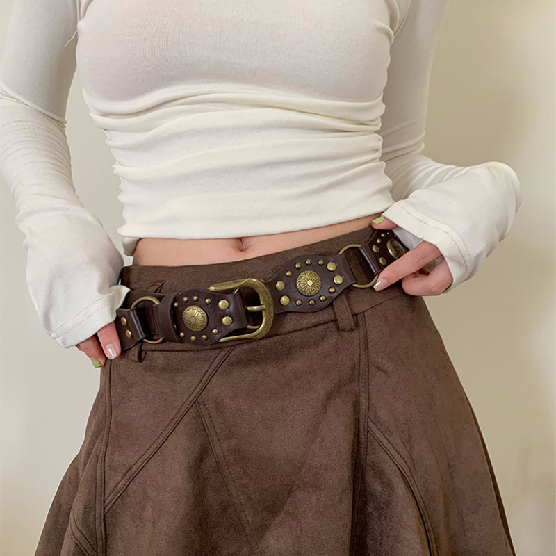 미국 서부 데님 레트로 벨트 여성의 2025 새로운 패션 리벳 다크 브라운 벨트 청바지 버클 벨트스토어 가기