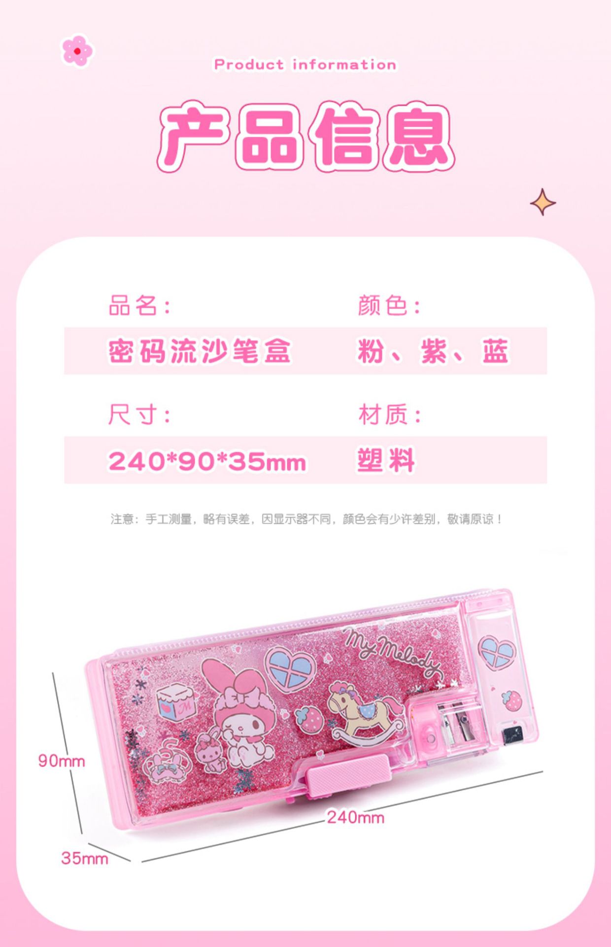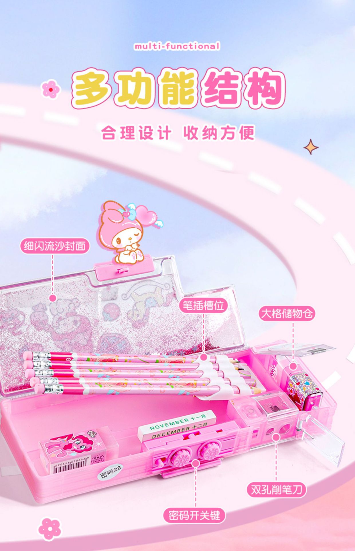 산리오 초등학생 필통 쿠로미 비밀번호 잠금 유사 필통 멜로디 대용량 다기능 고가치스토어 가기