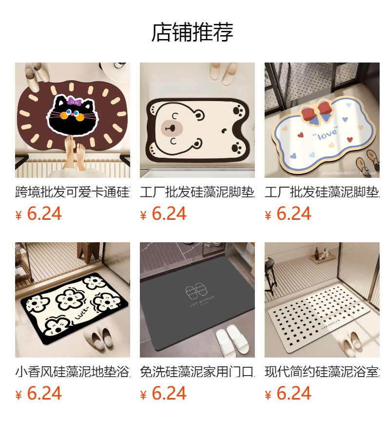 공장 도매 Diatom 진흙 발 매트 욕실 문 매트 간단한 패션 비 슬립 더러운 저항하는 흡수성 발 매트스토어 가기