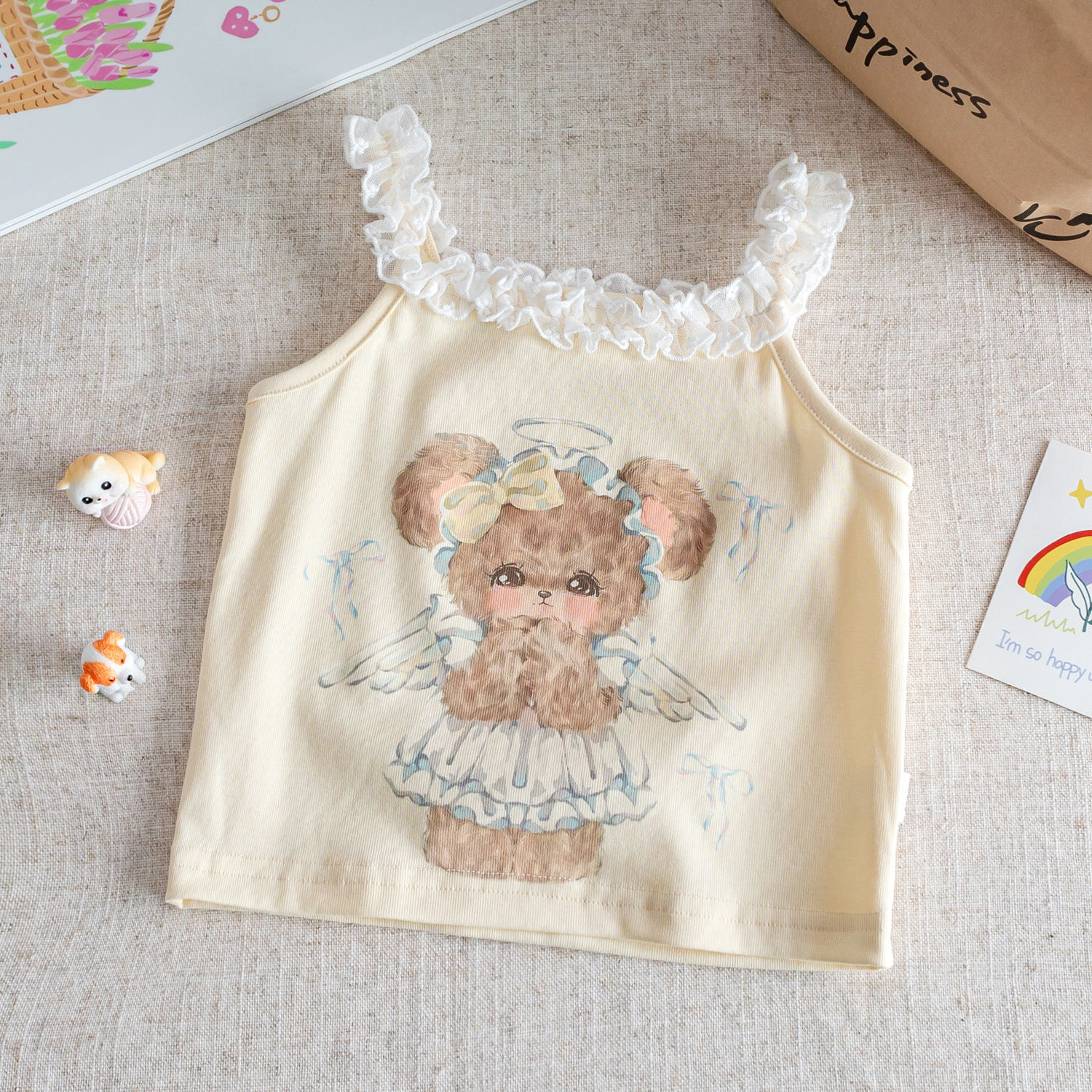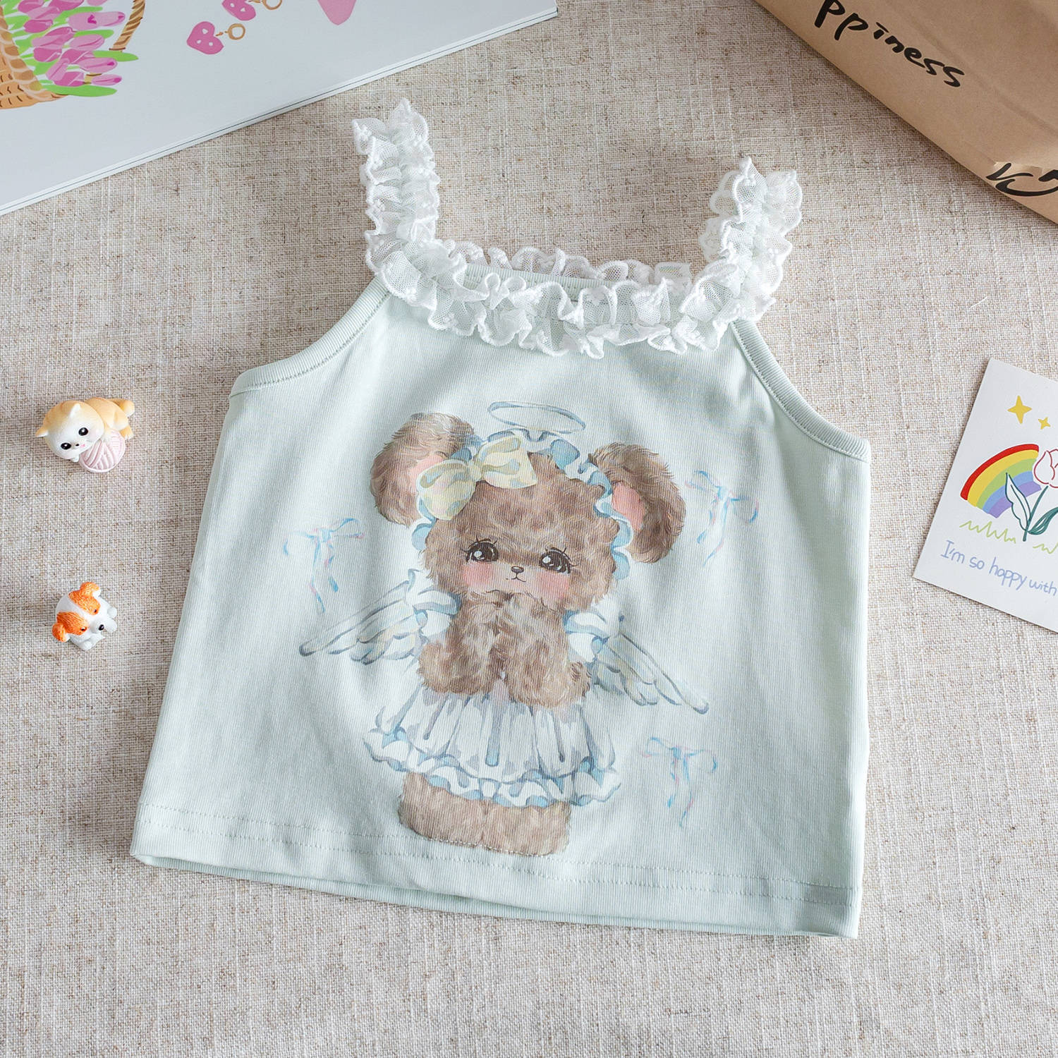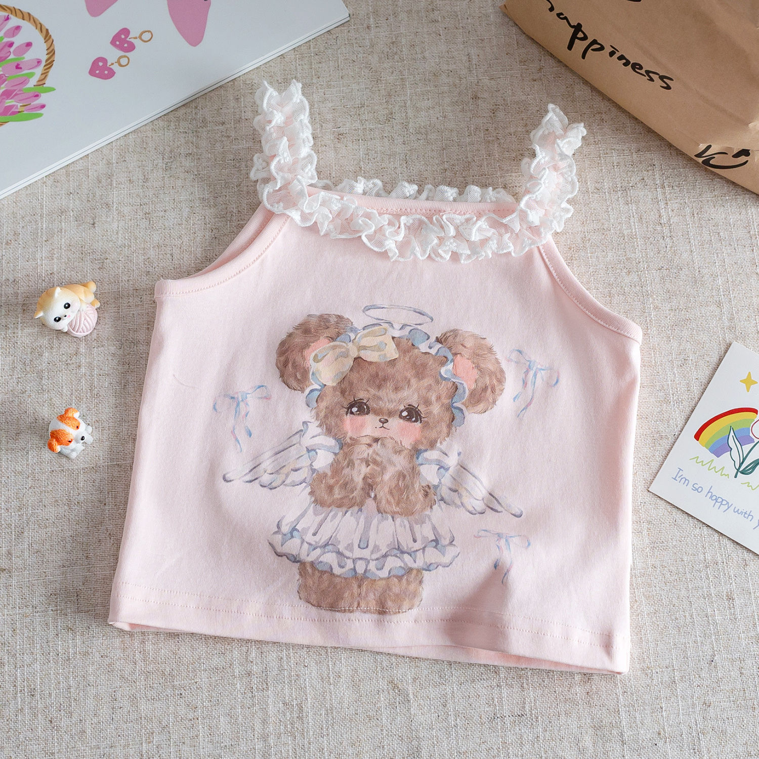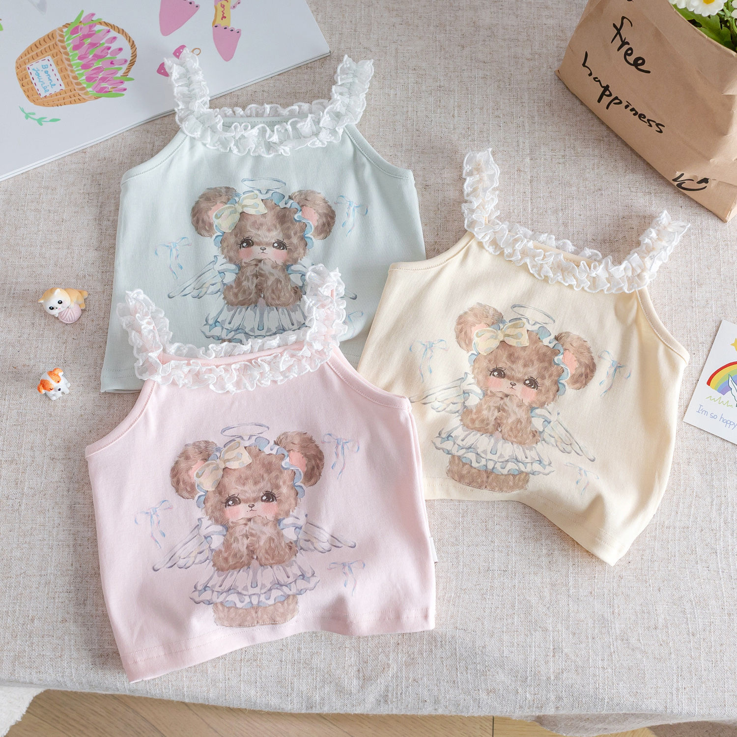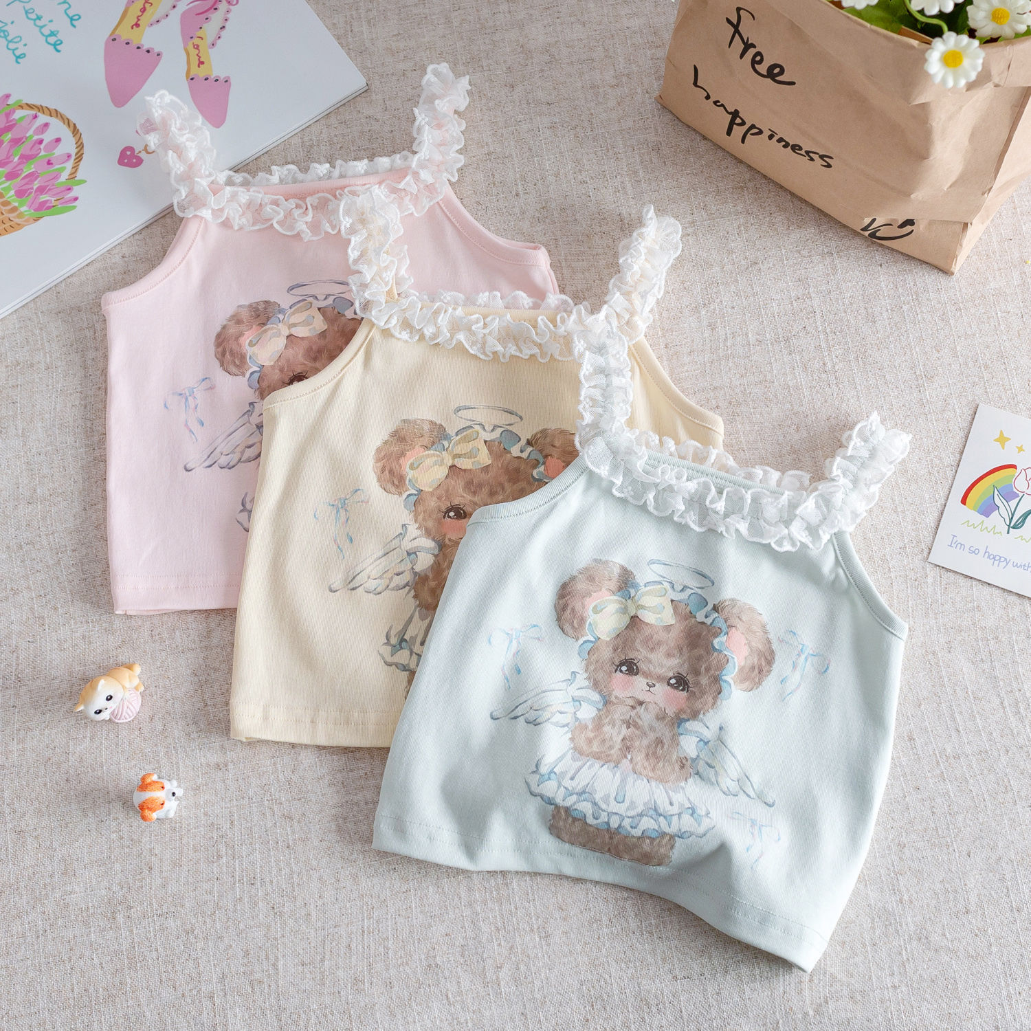 여자 2025 순면 카미솔 여름 얇은 서양식 민소매 아기 소녀 통기성 아동베이스 셔츠