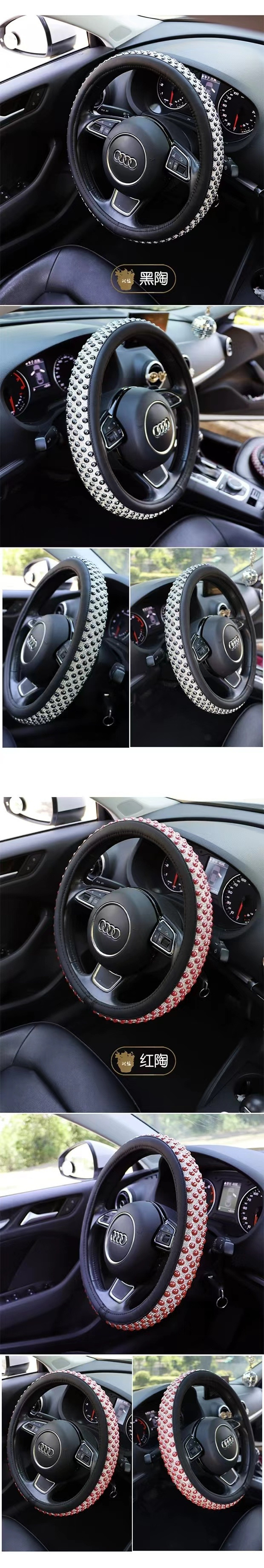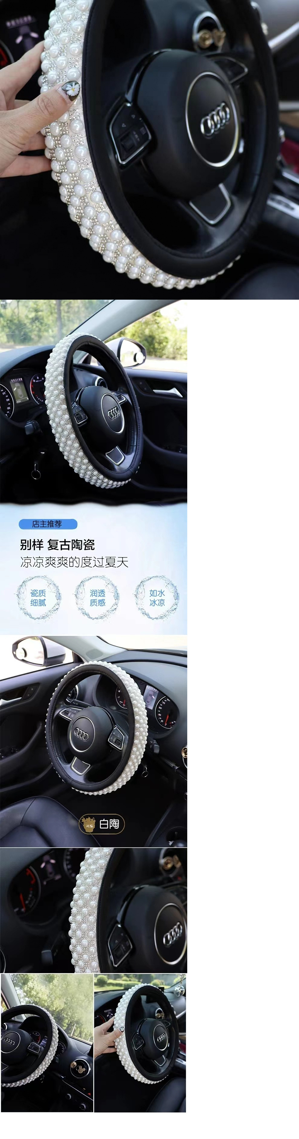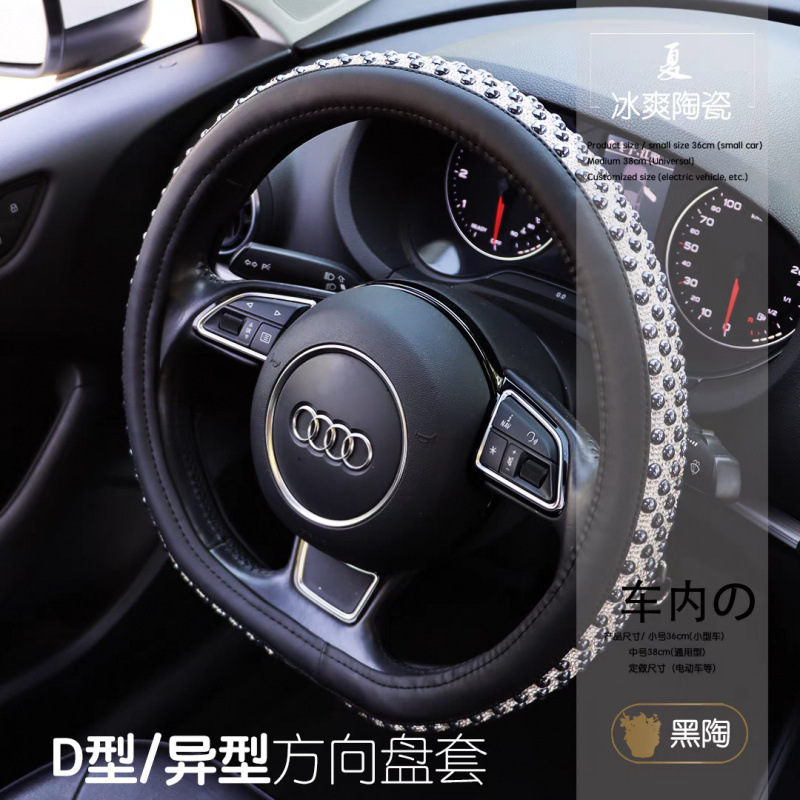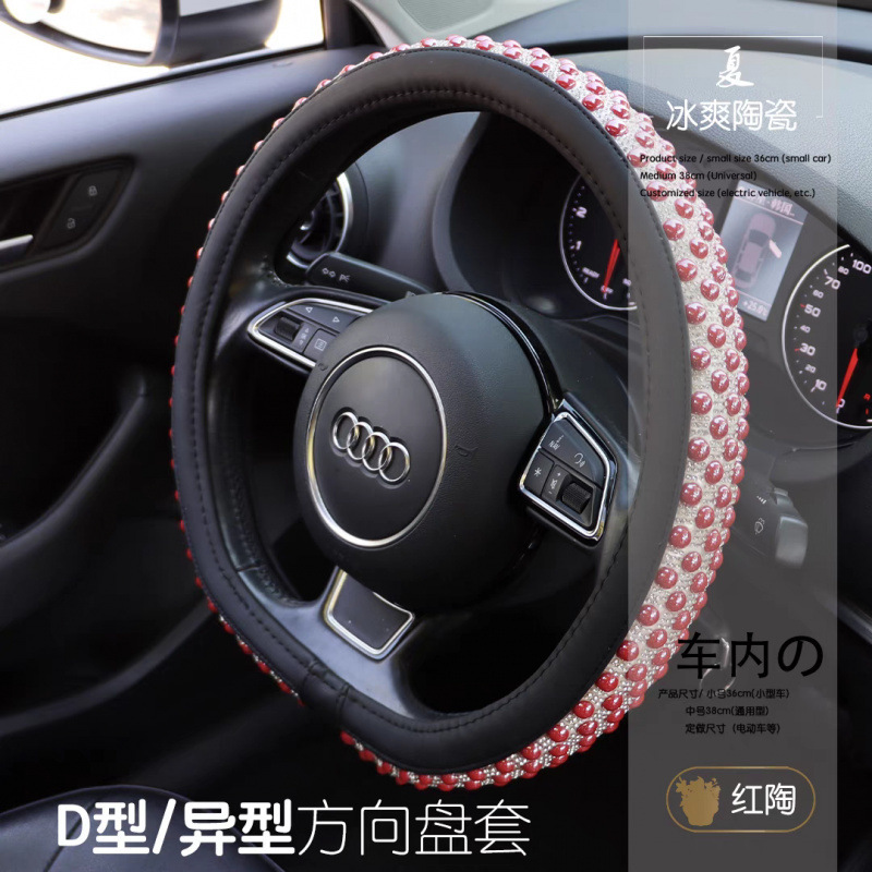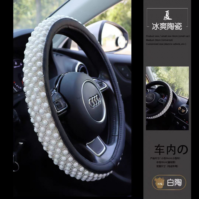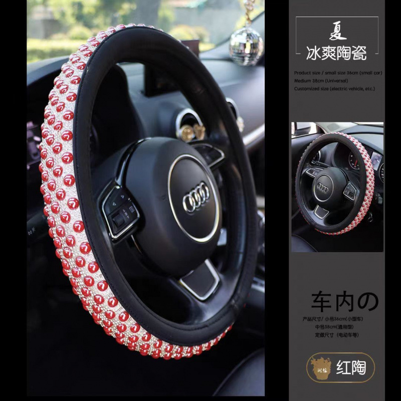 여름 고급스러운 스티어링 휠 커버, 럭셔리 여신 인터넷 연예인 세라믹 비즈, 여름 얼음처럼 시원하고 미끄럼 방지 및 땀 흡수 자동차 핸들스토어 가기
