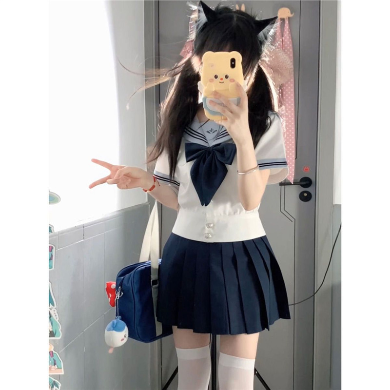 Lanting 여성 Xiaowater jk 선원 유니폼 오리지널 유니폼 반팔 여름 일본 학교 공급 세트 투피스 세트