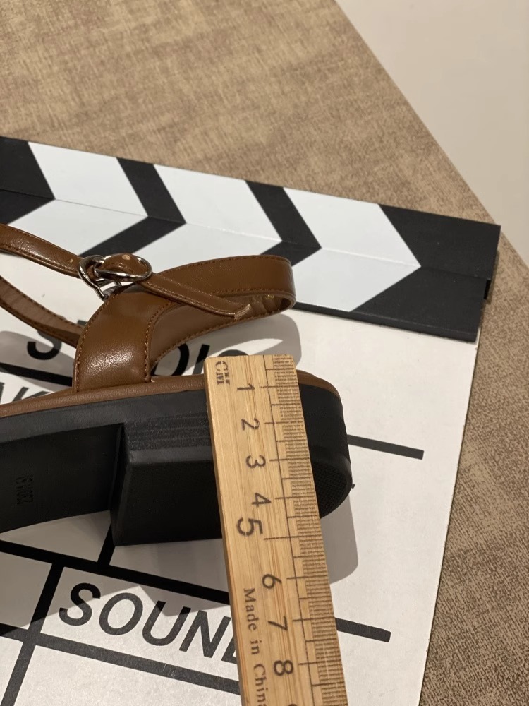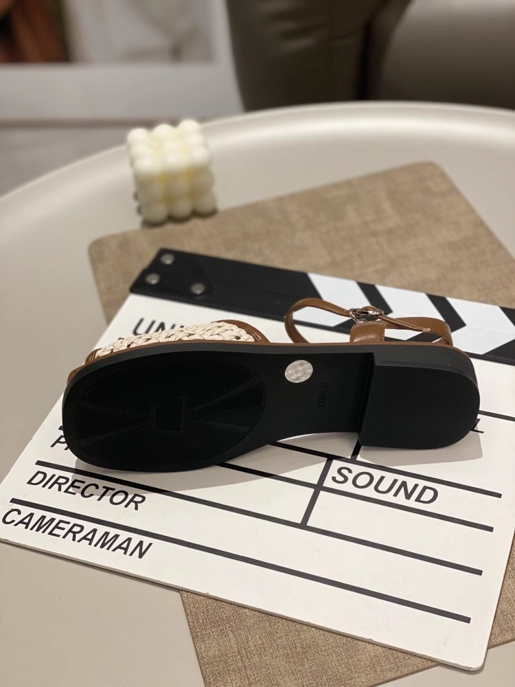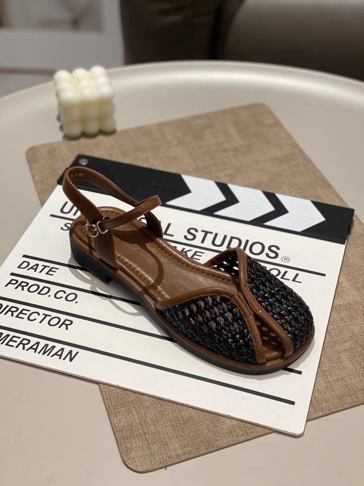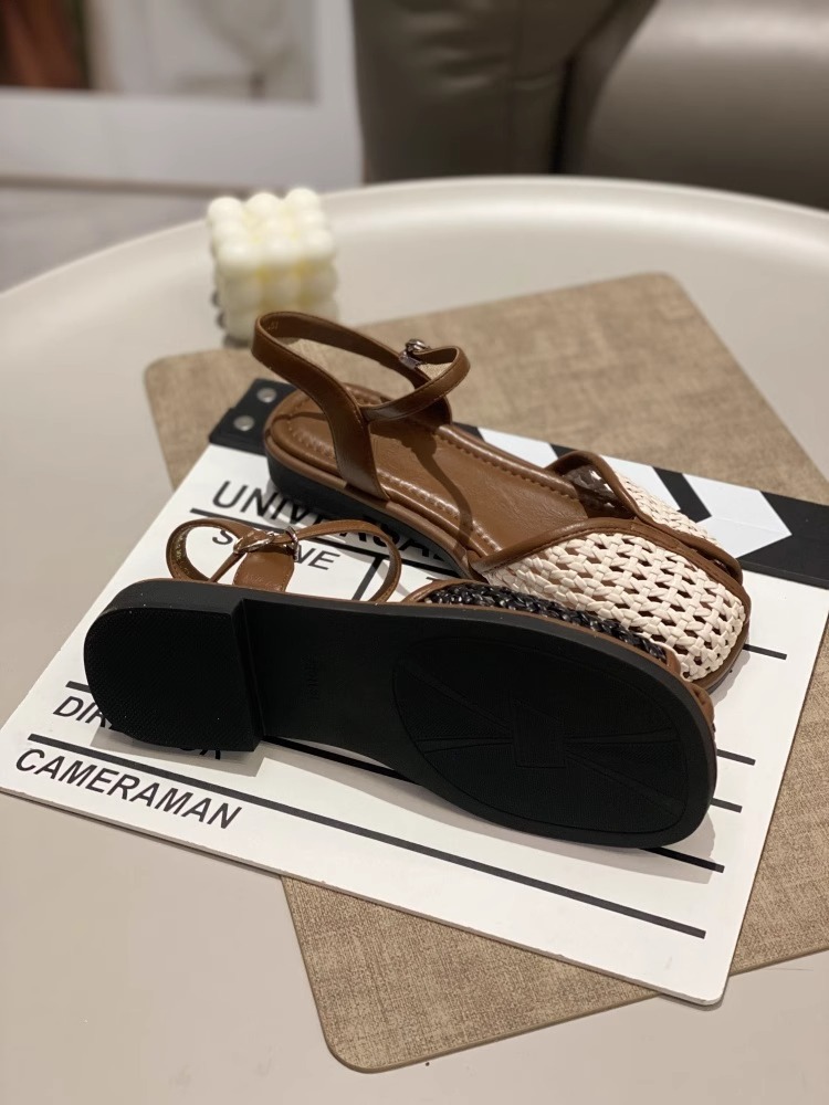 양가죽 짠 할로우 아웃 유행 발가락 플랫 여성 아우터웨어 2025 여름 새 라운드 발가락 프렌치 샌들스토어 가기