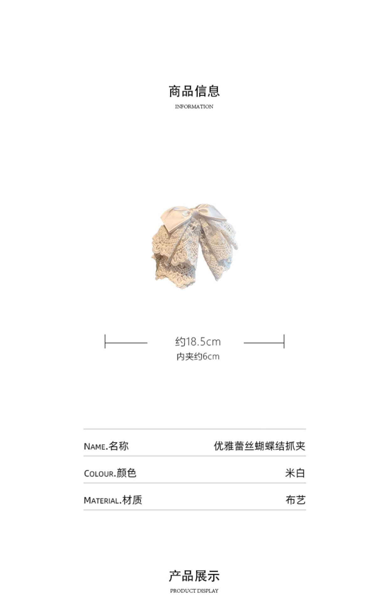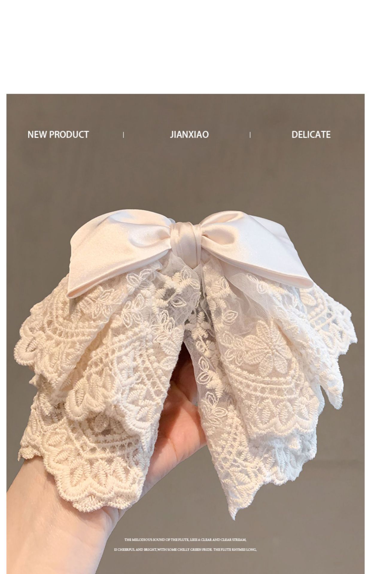 • 베이지 레이스 리본 포니테일 클립