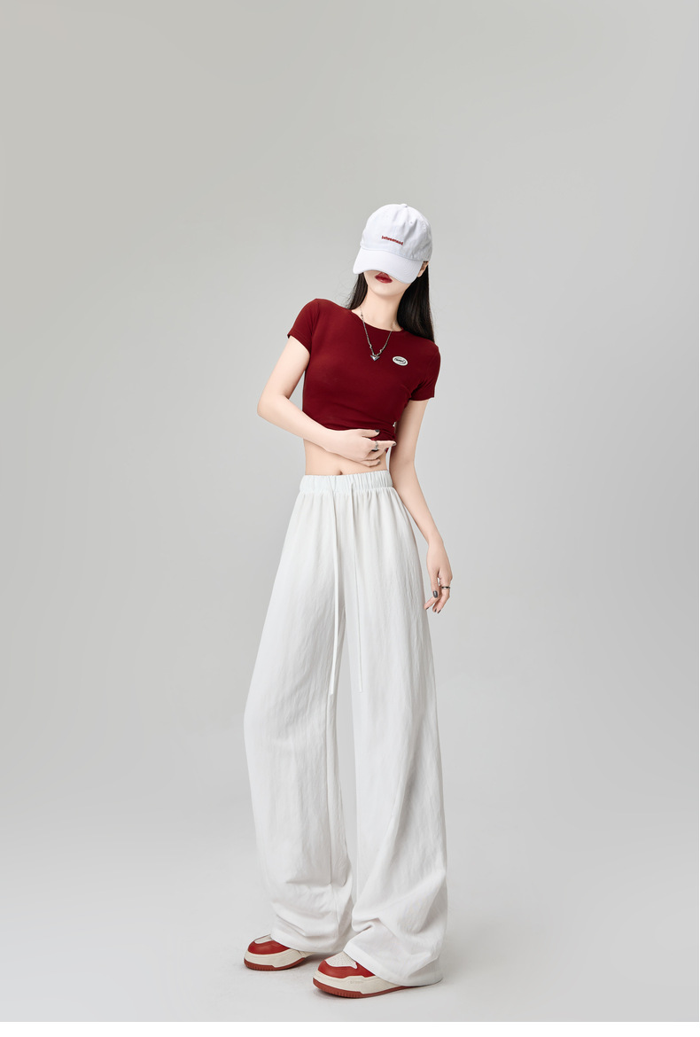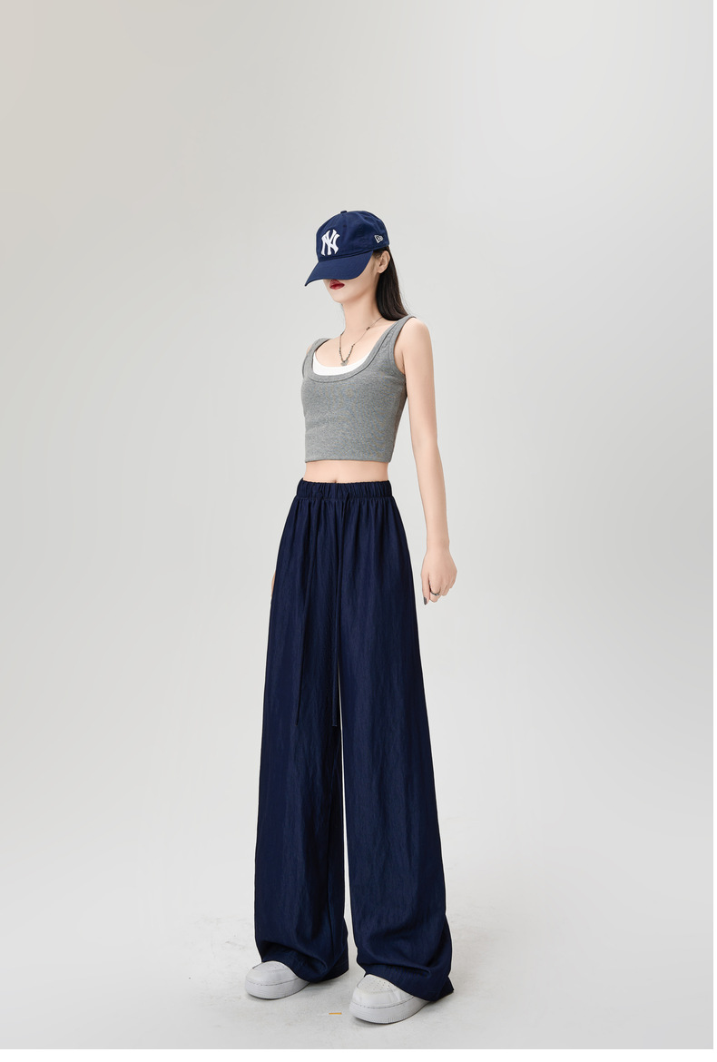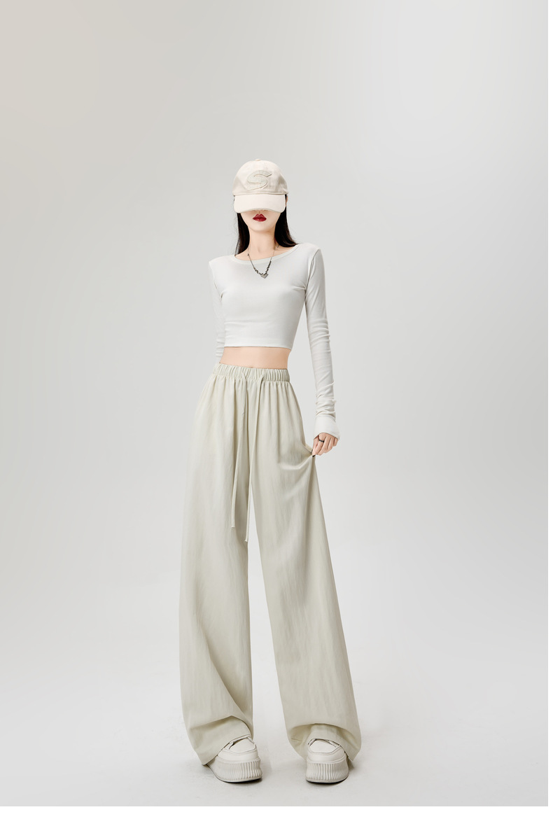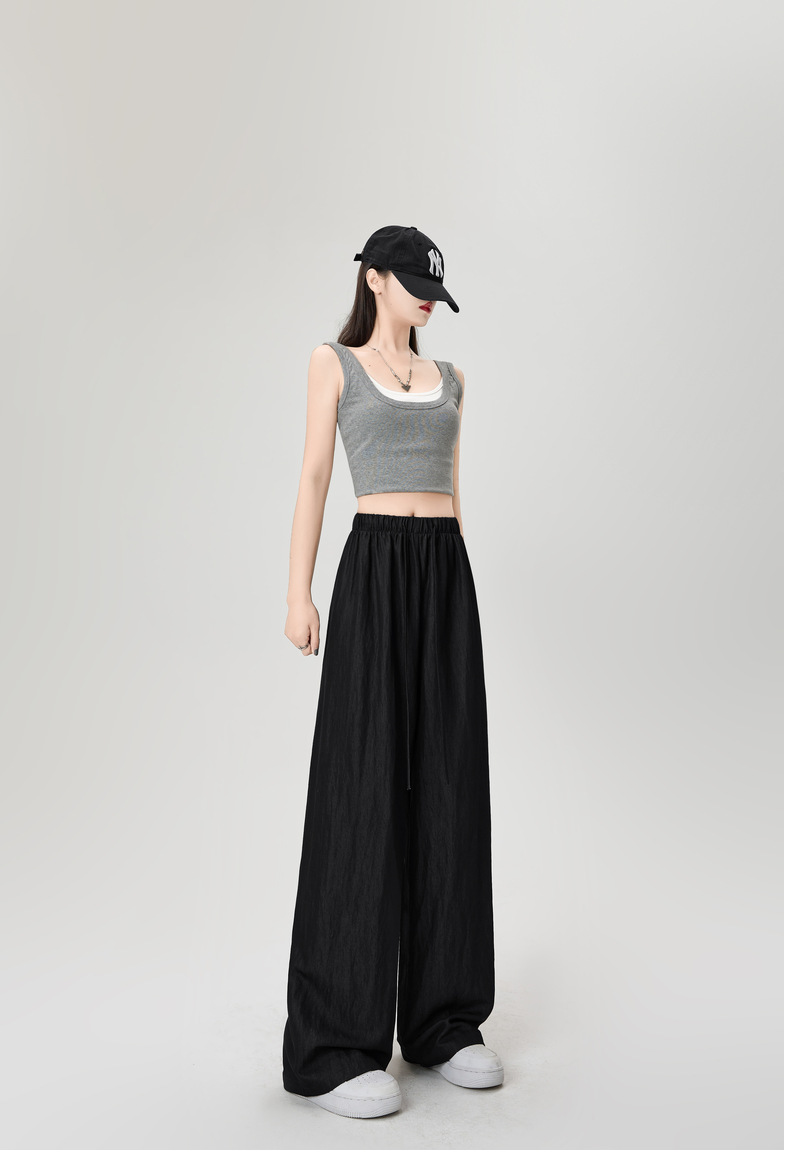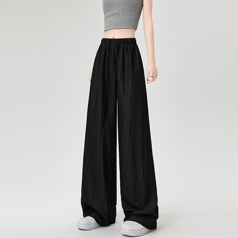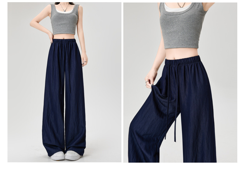 여름 얼음 실크 야마모토 바지 여자 2025 얇은 높은 허리 슬리밍 느슨한 직선 선 스크린 캐주얼 와이드 다리 바지
