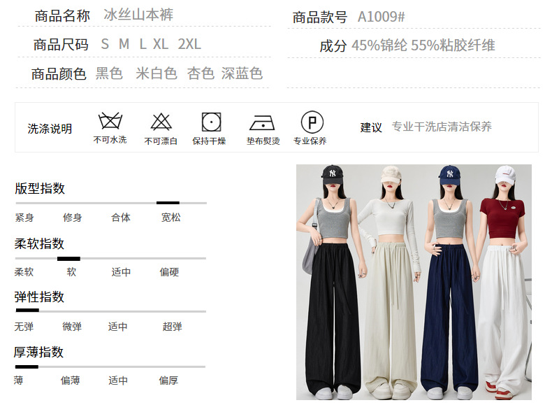 여름 얼음 실크 야마모토 바지 여자 2025 얇은 높은 허리 슬리밍 느슨한 직선 선 스크린 캐주얼 와이드 다리 바지스토어 가기