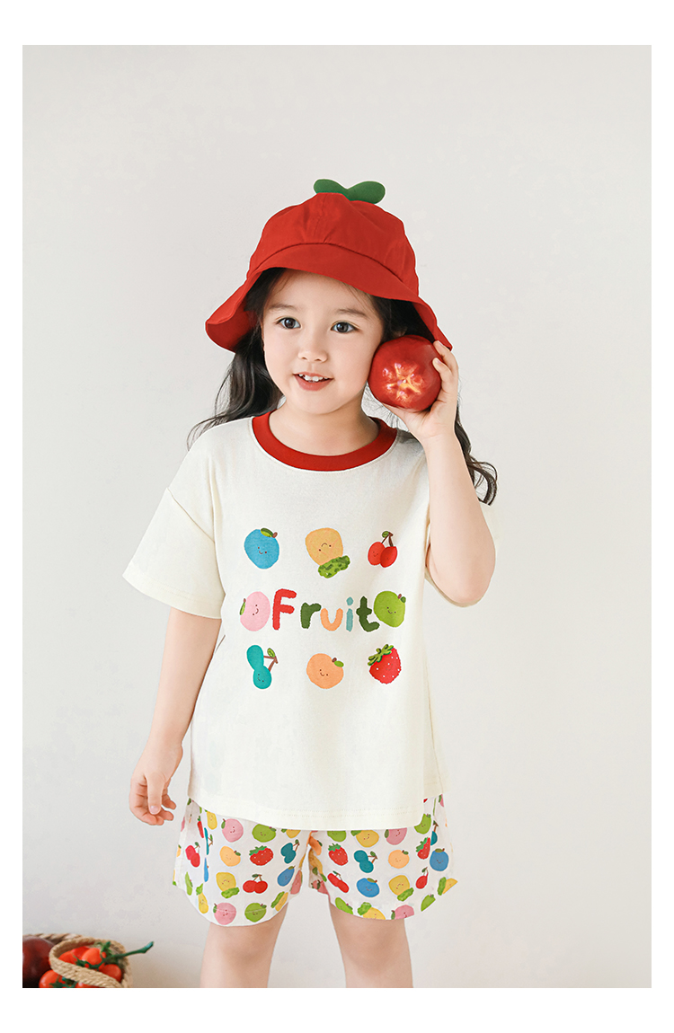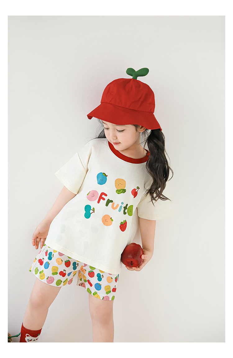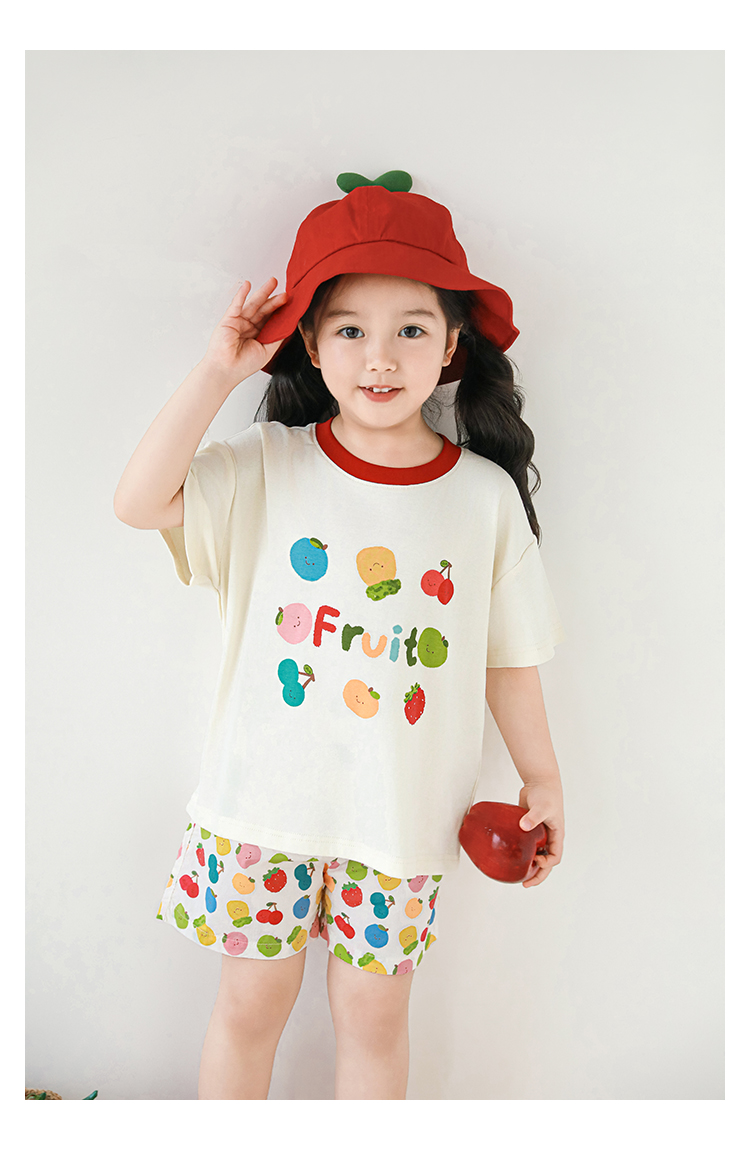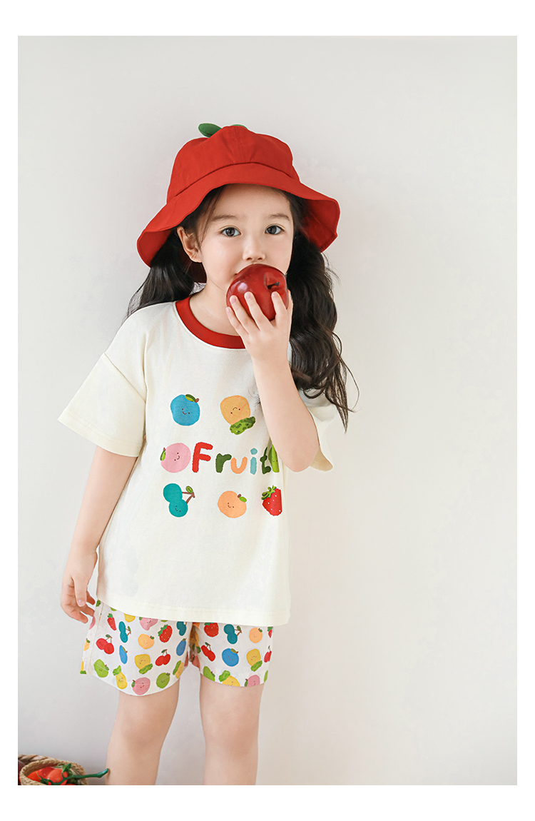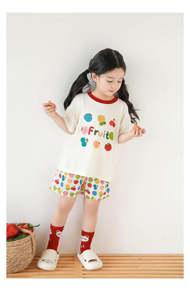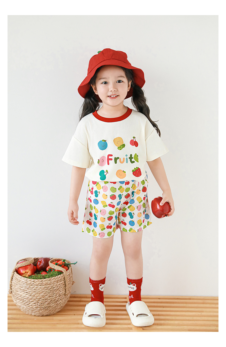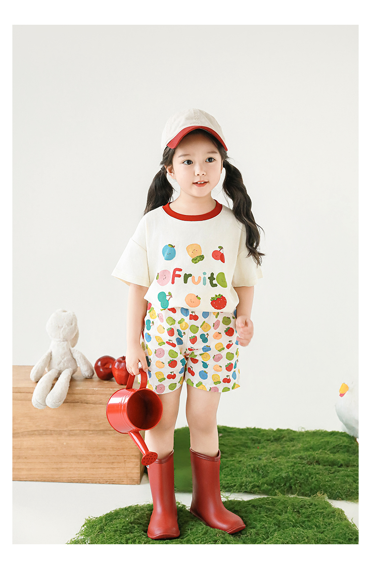 Wulib 소녀의 과일 인쇄 2025 세트 여름 대비 올매치 반팔 티셔츠 상쾌한 캐주얼 반바지