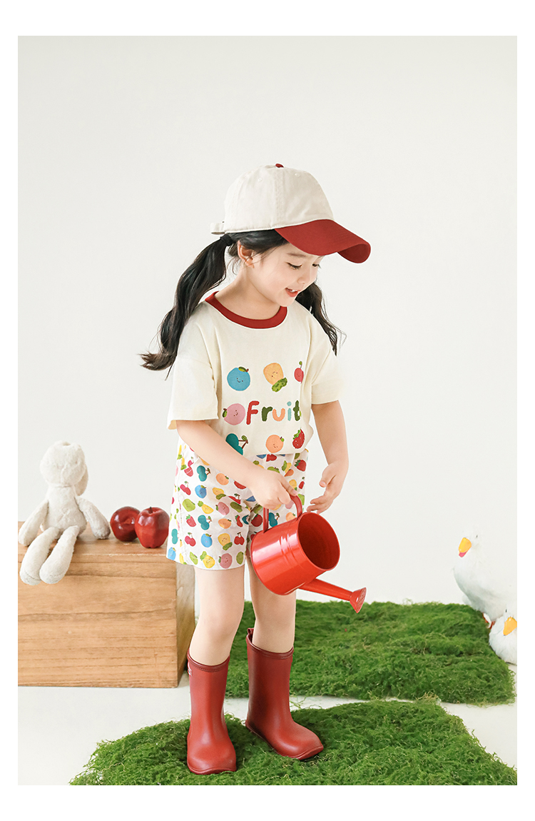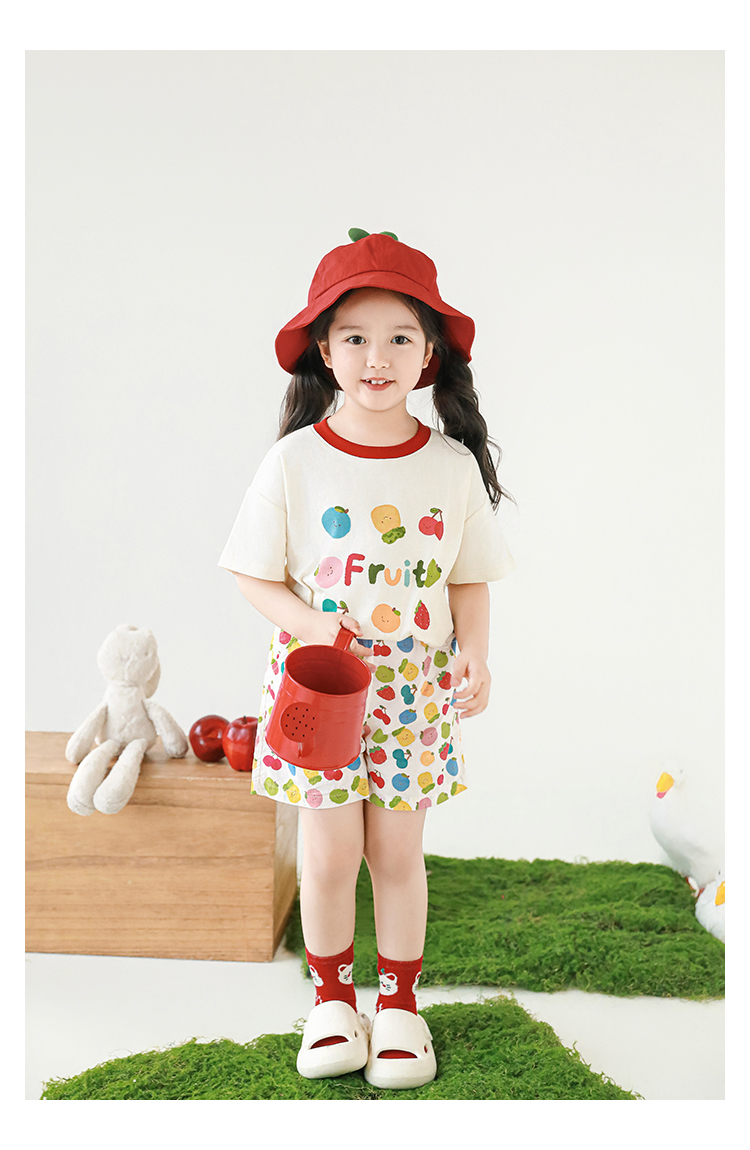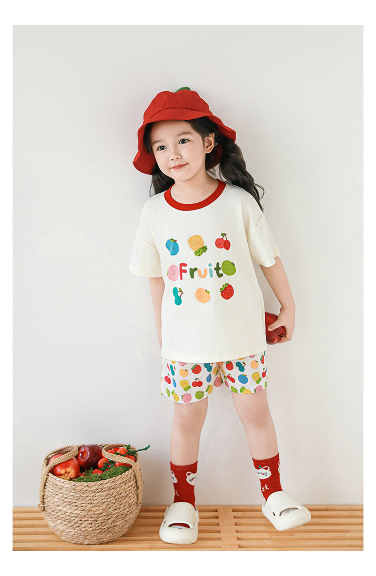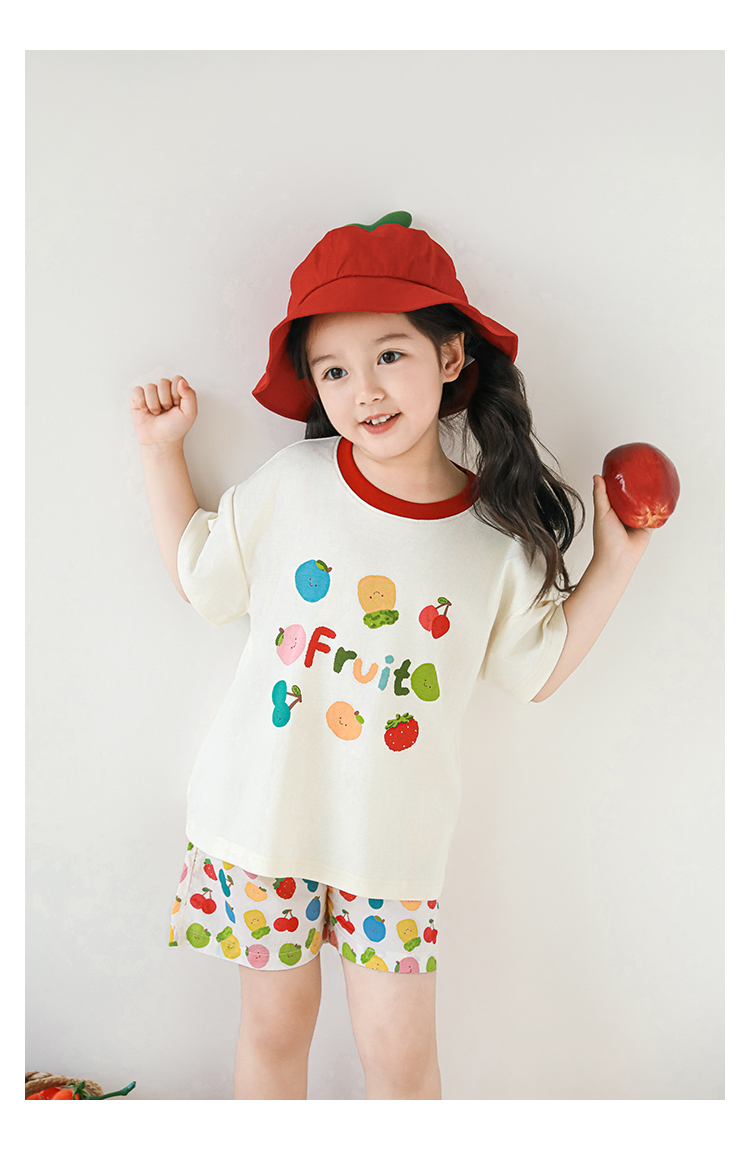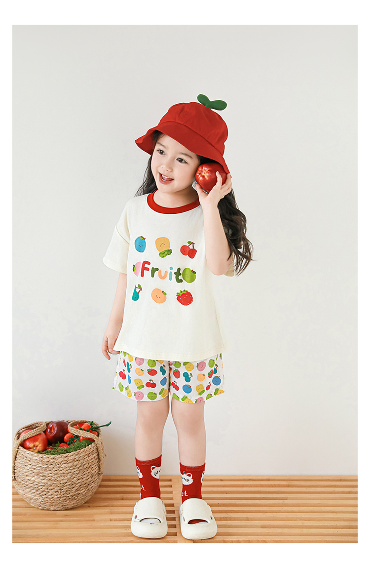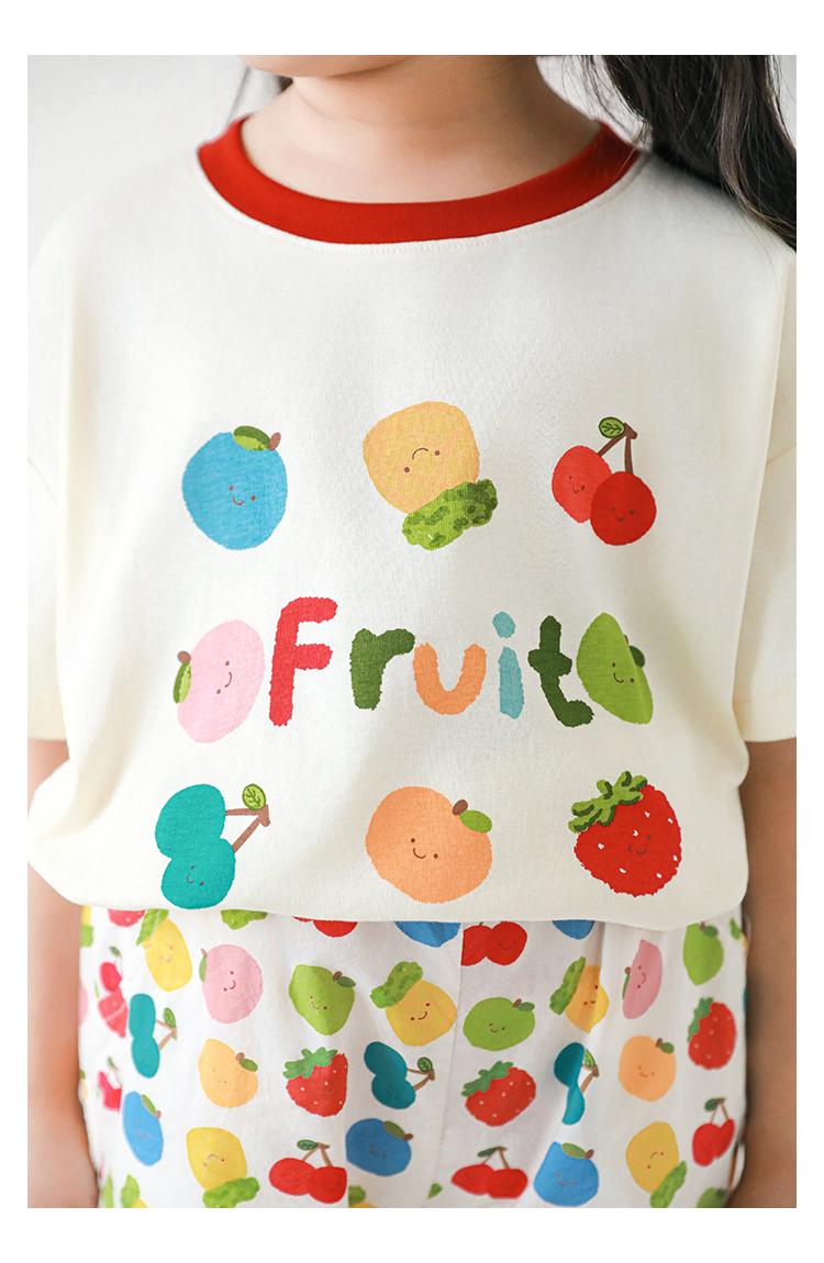 Wulib 소녀의 과일 인쇄 2025 세트 여름 대비 올매치 반팔 티셔츠 상쾌한 캐주얼 반바지