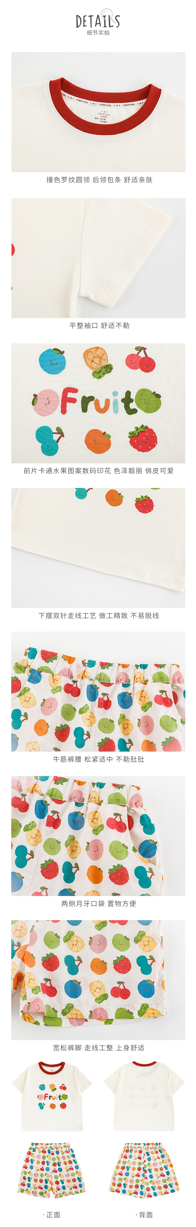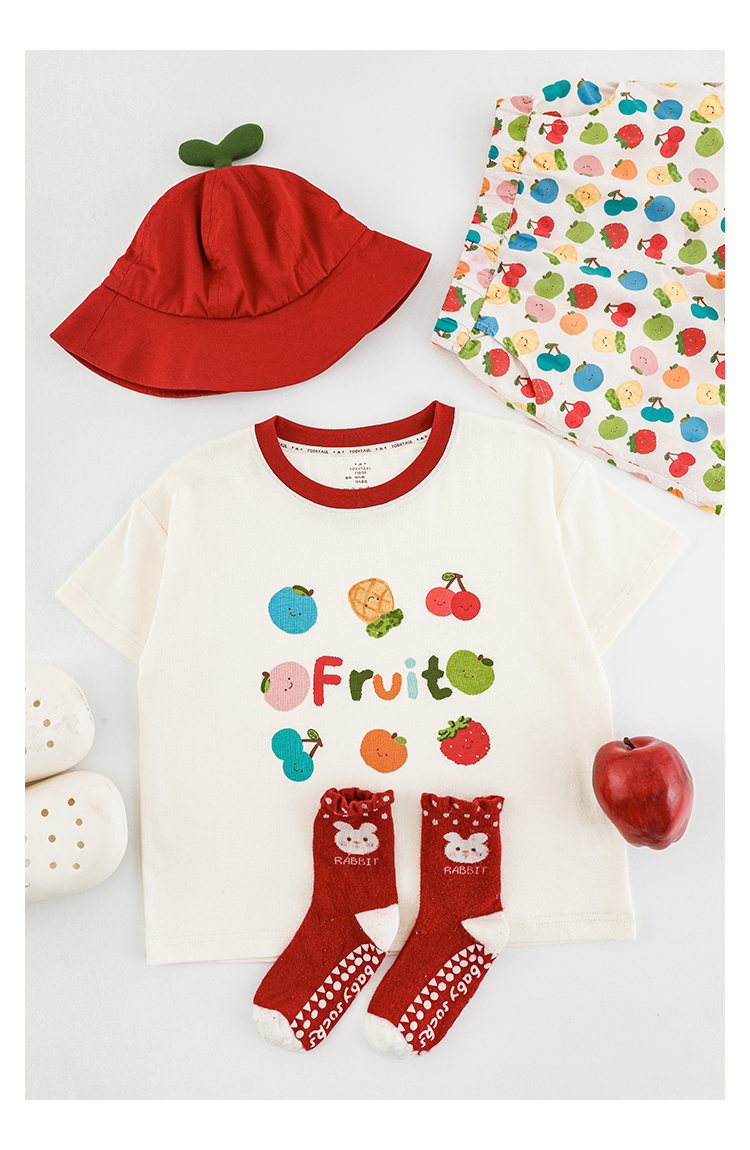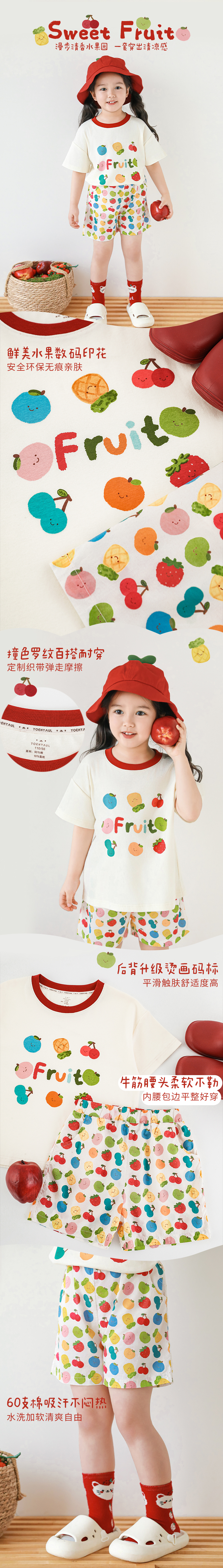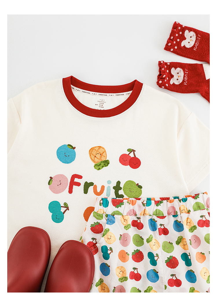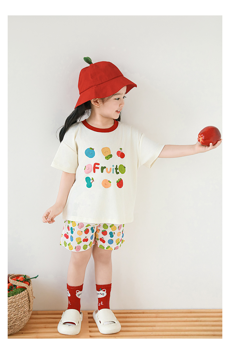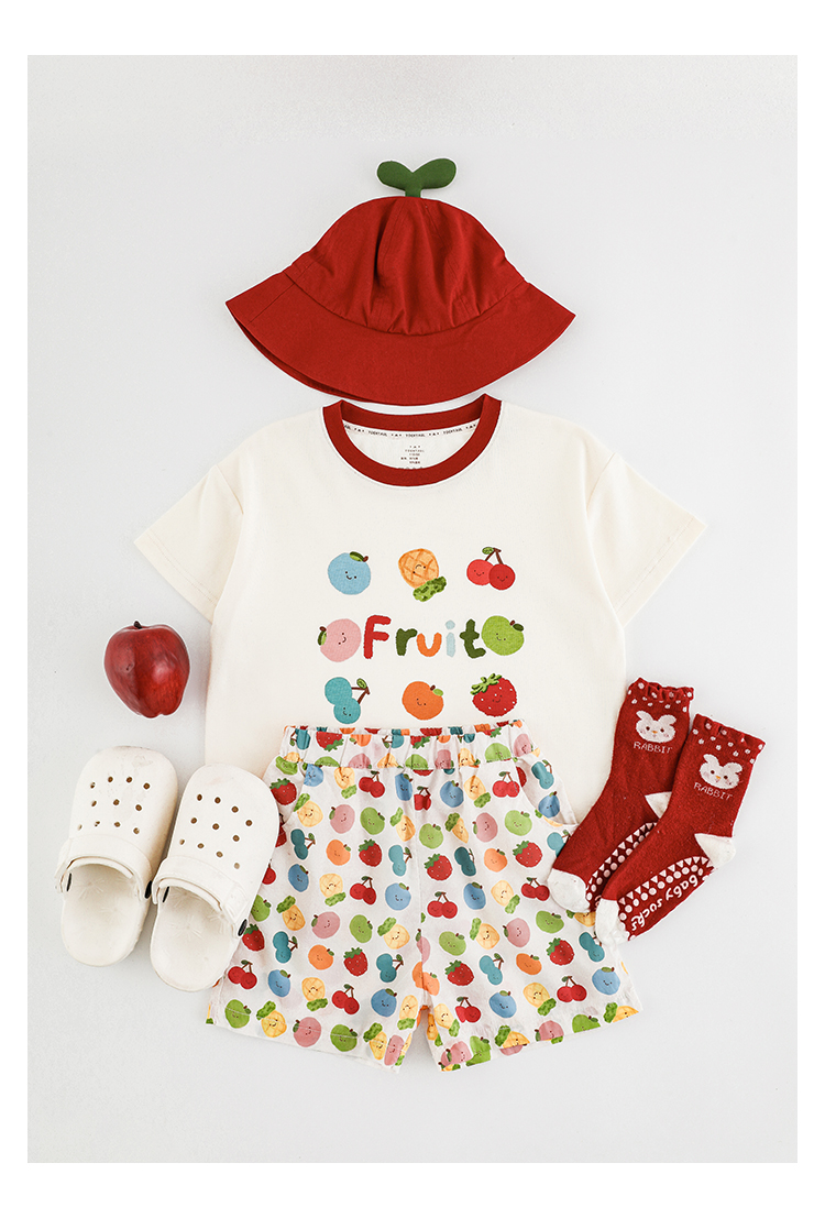 Wulib 소녀의 과일 인쇄 2025 세트 여름 대비 올매치 반팔 티셔츠 상쾌한 캐주얼 반바지