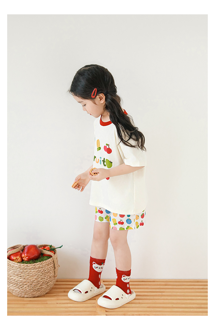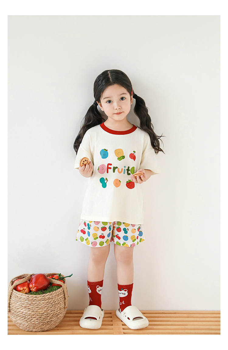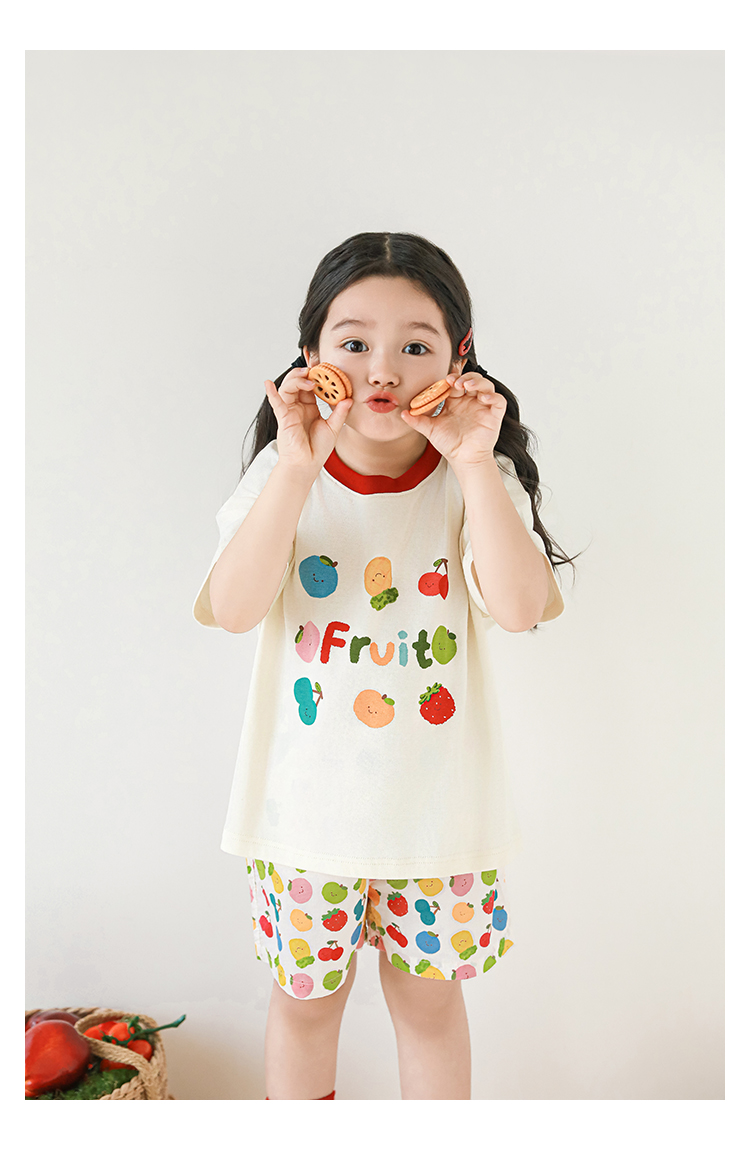 Wulib 소녀의 과일 인쇄 2025 세트 여름 대비 올매치 반팔 티셔츠 상쾌한 캐주얼 반바지스토어 가기