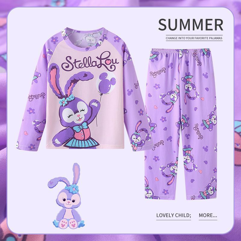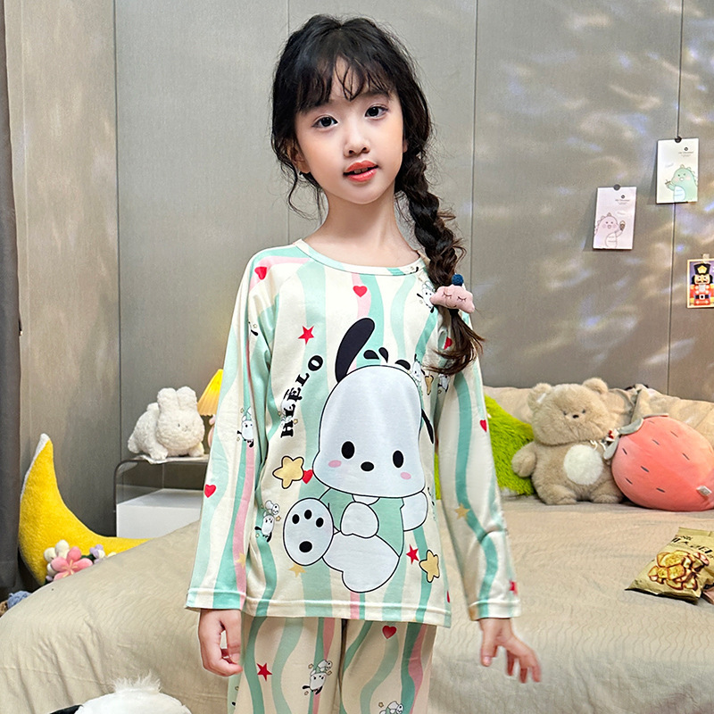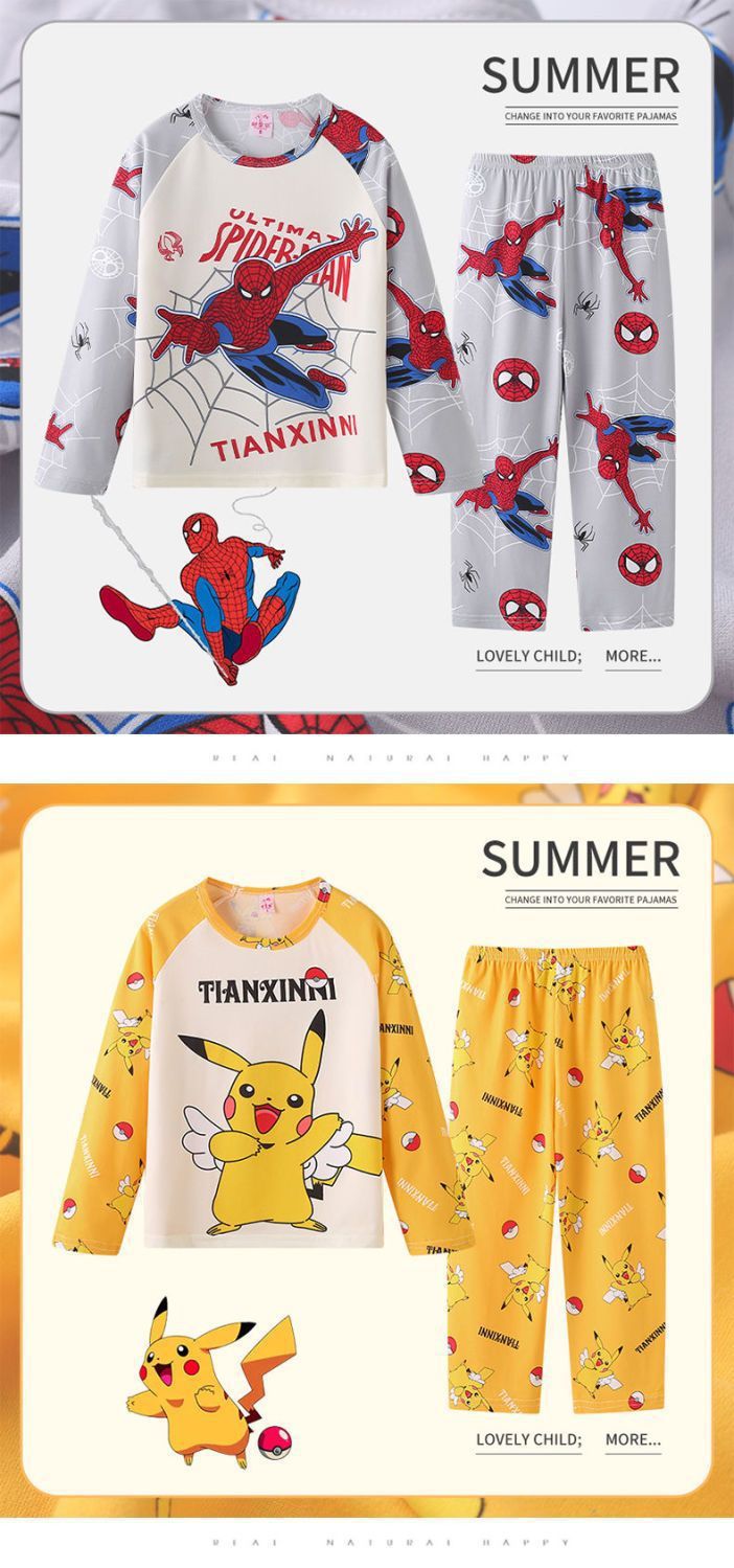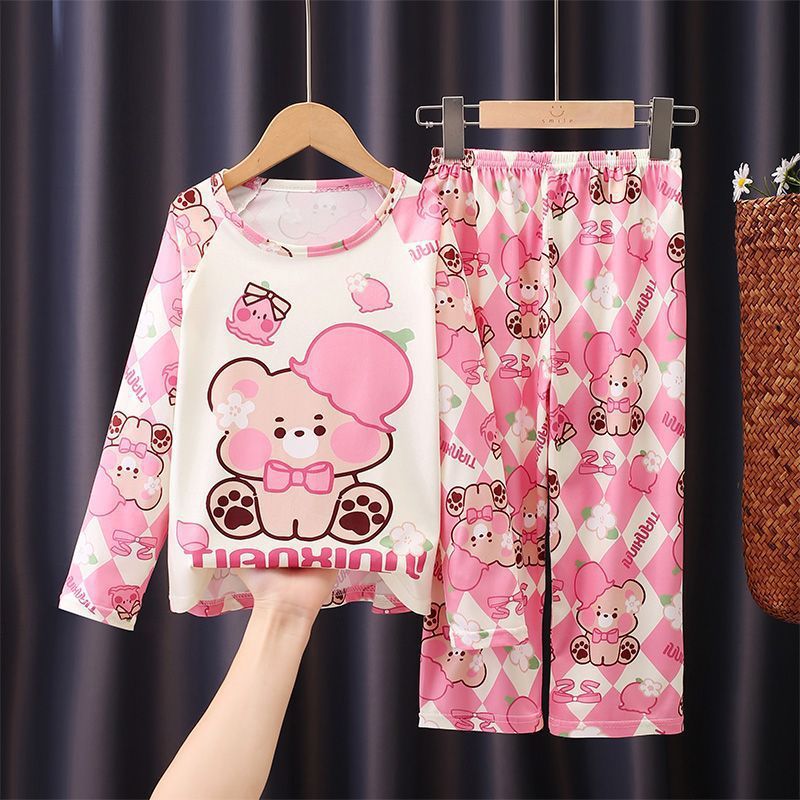어린이 잠옷, 긴팔, 중대형 어린이 에어컨 의류, 얇은 아기 만화 여름 어린이 소년 소녀 가정복 세트