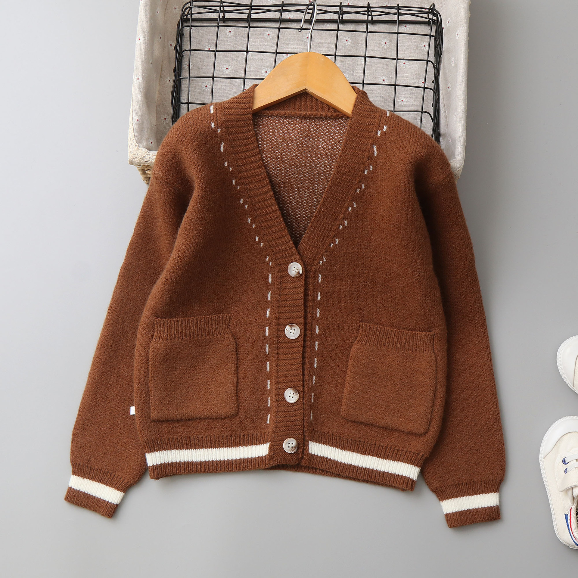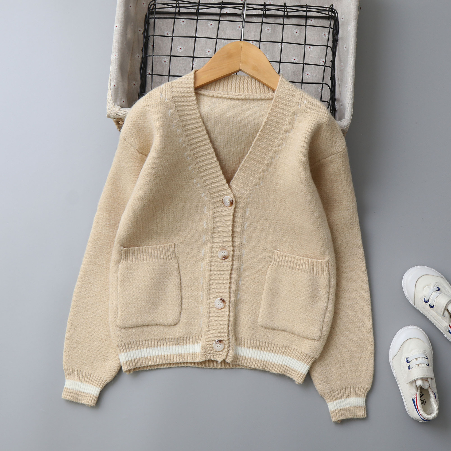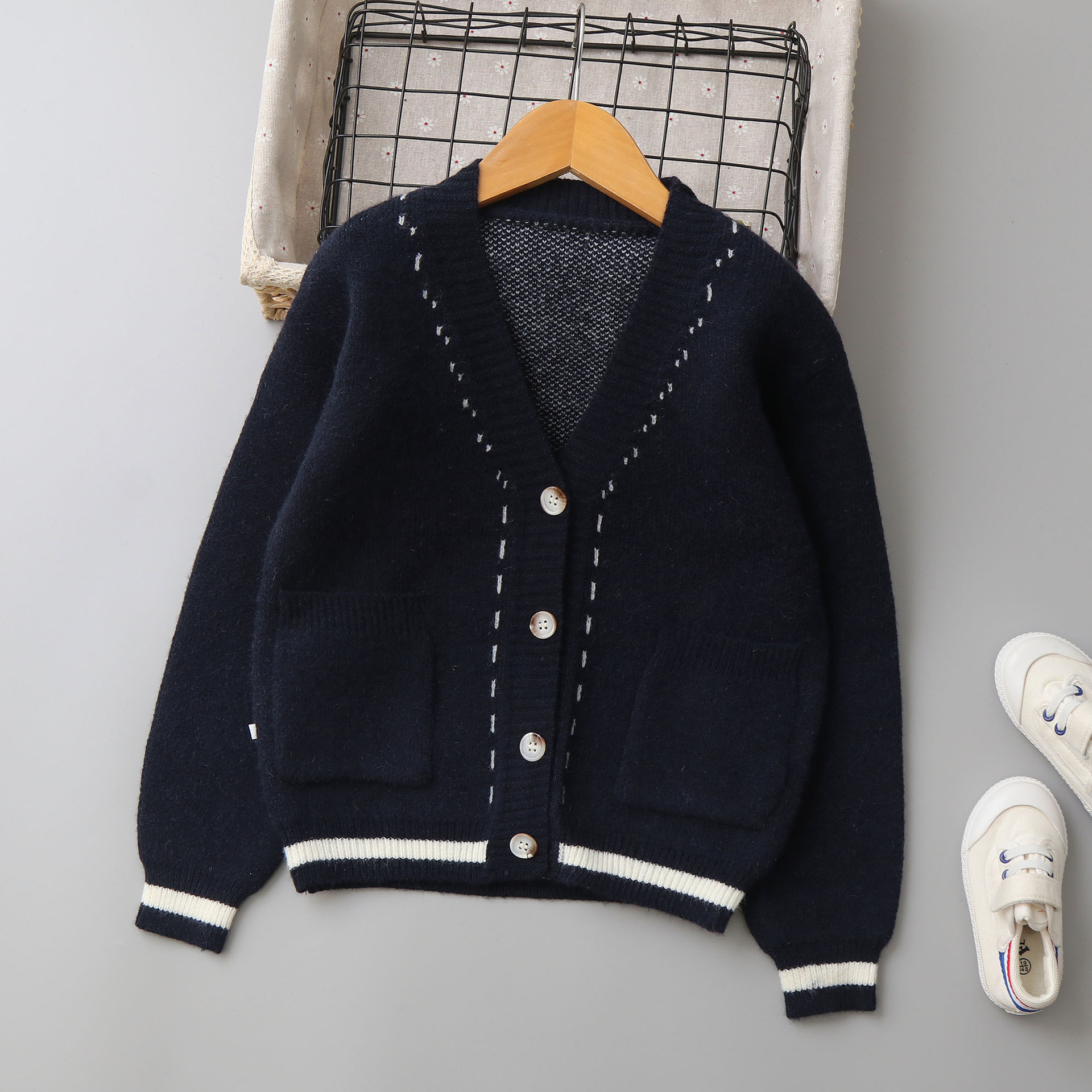 欧美风儿童绵羊绒毛衣开衫