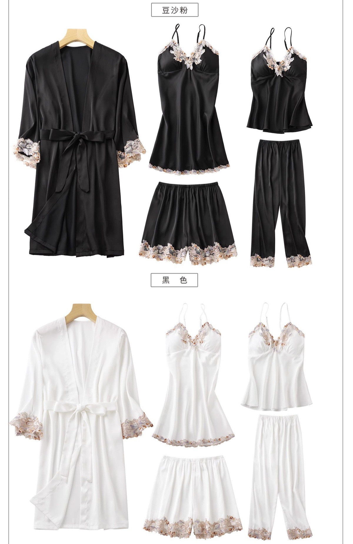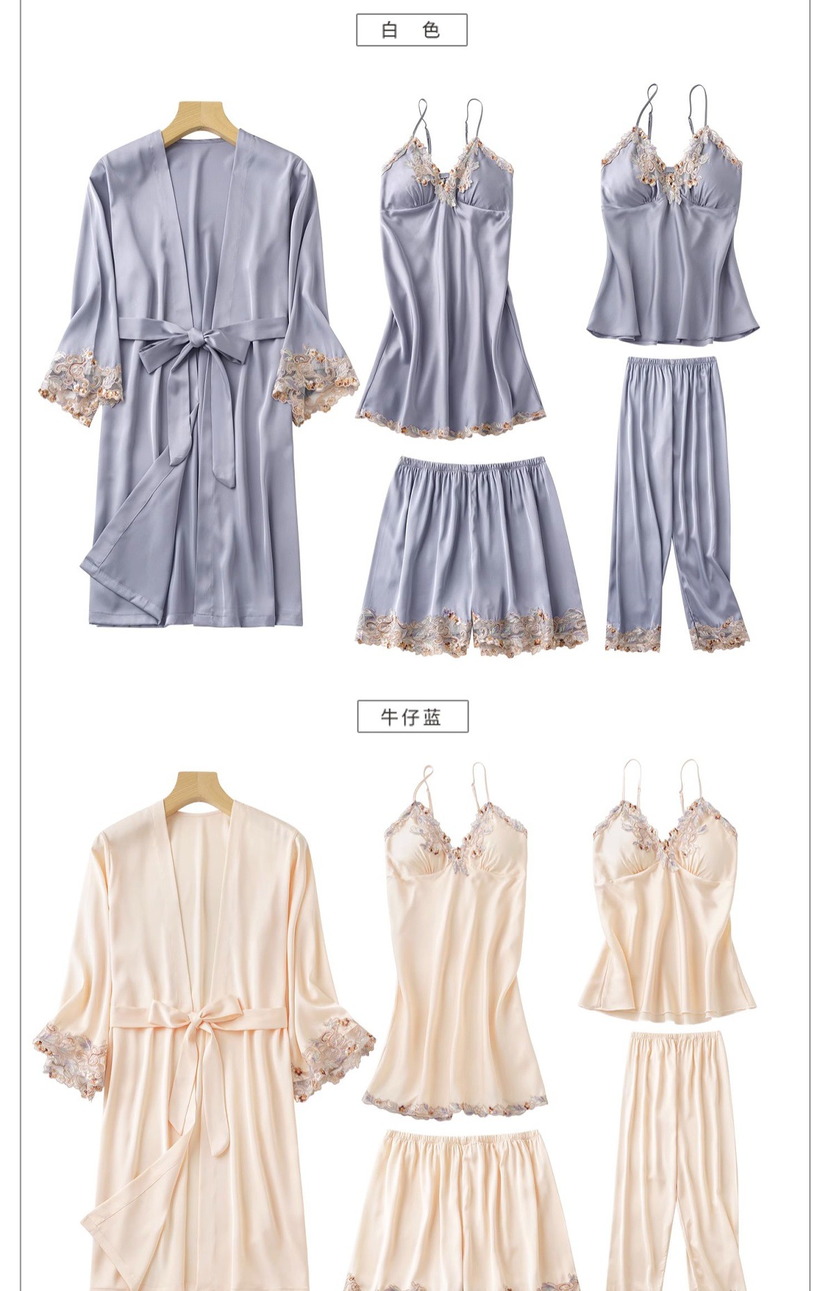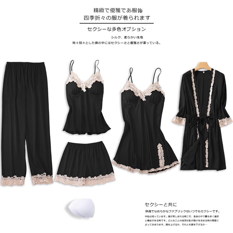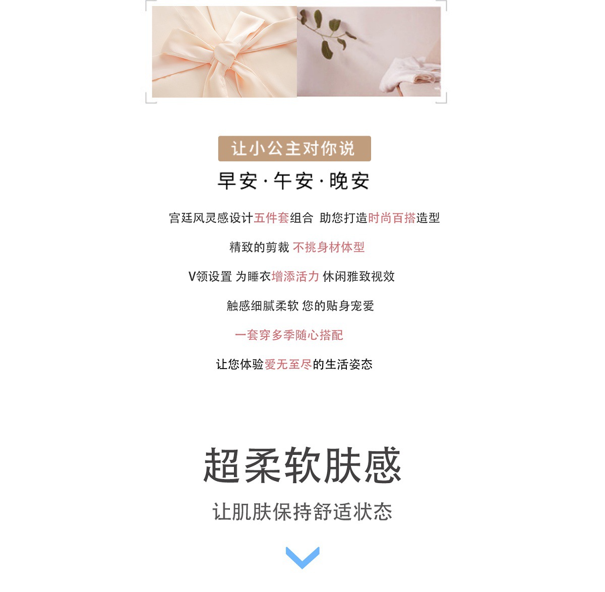 여성용 잠옷 봄, 가을 여름 얼음 실크 섹시한 5 피스 세트 가슴 패드가있는 고급 실크 홈웨어 세트스토어 가기