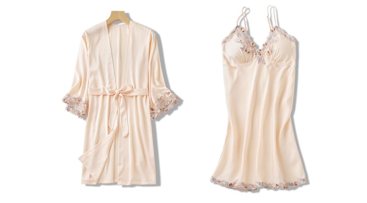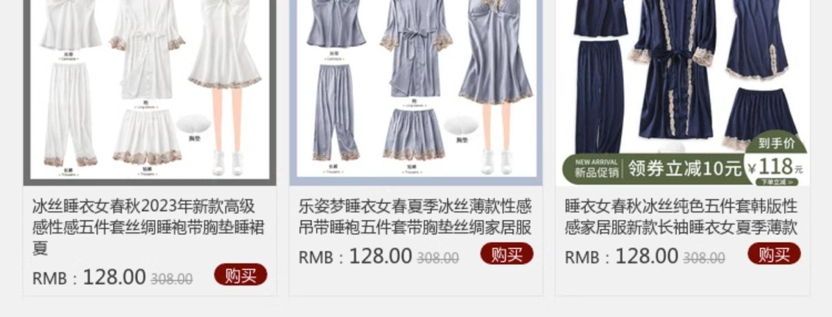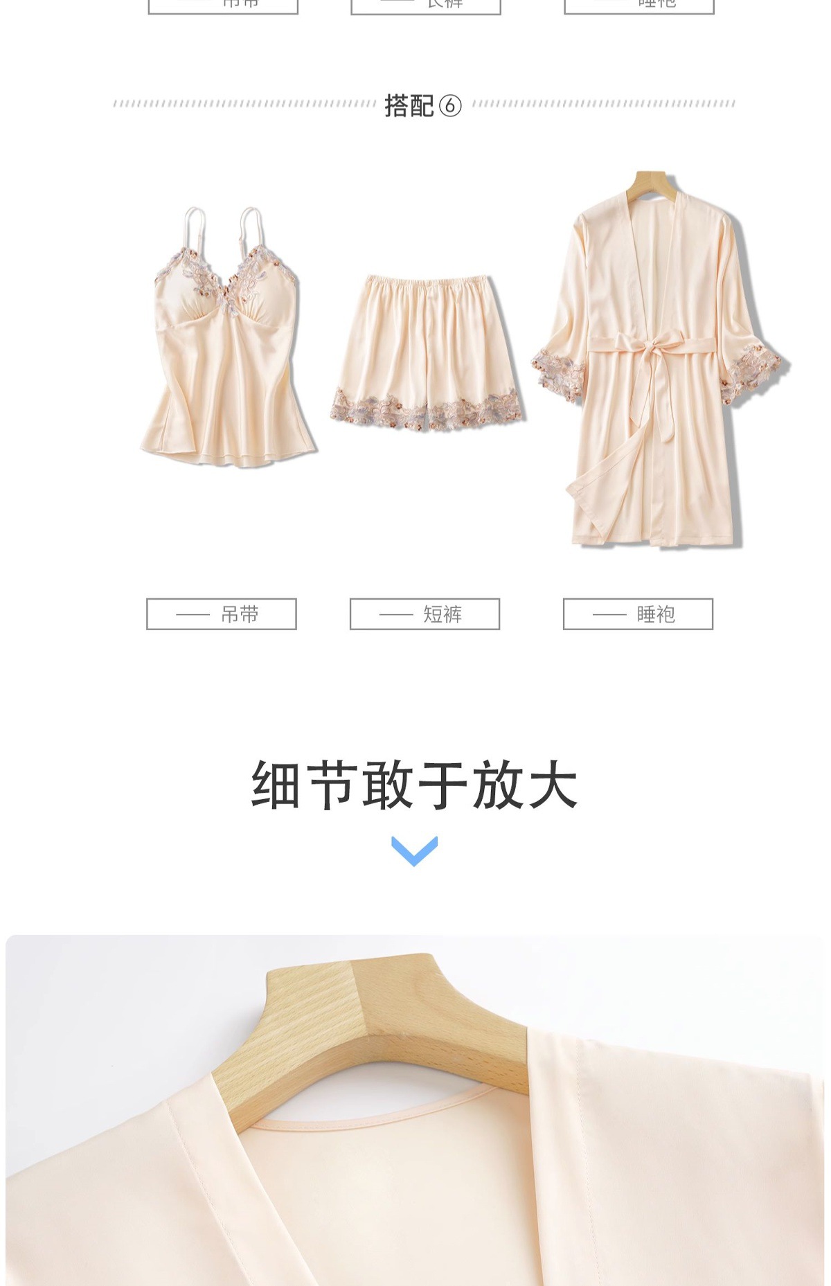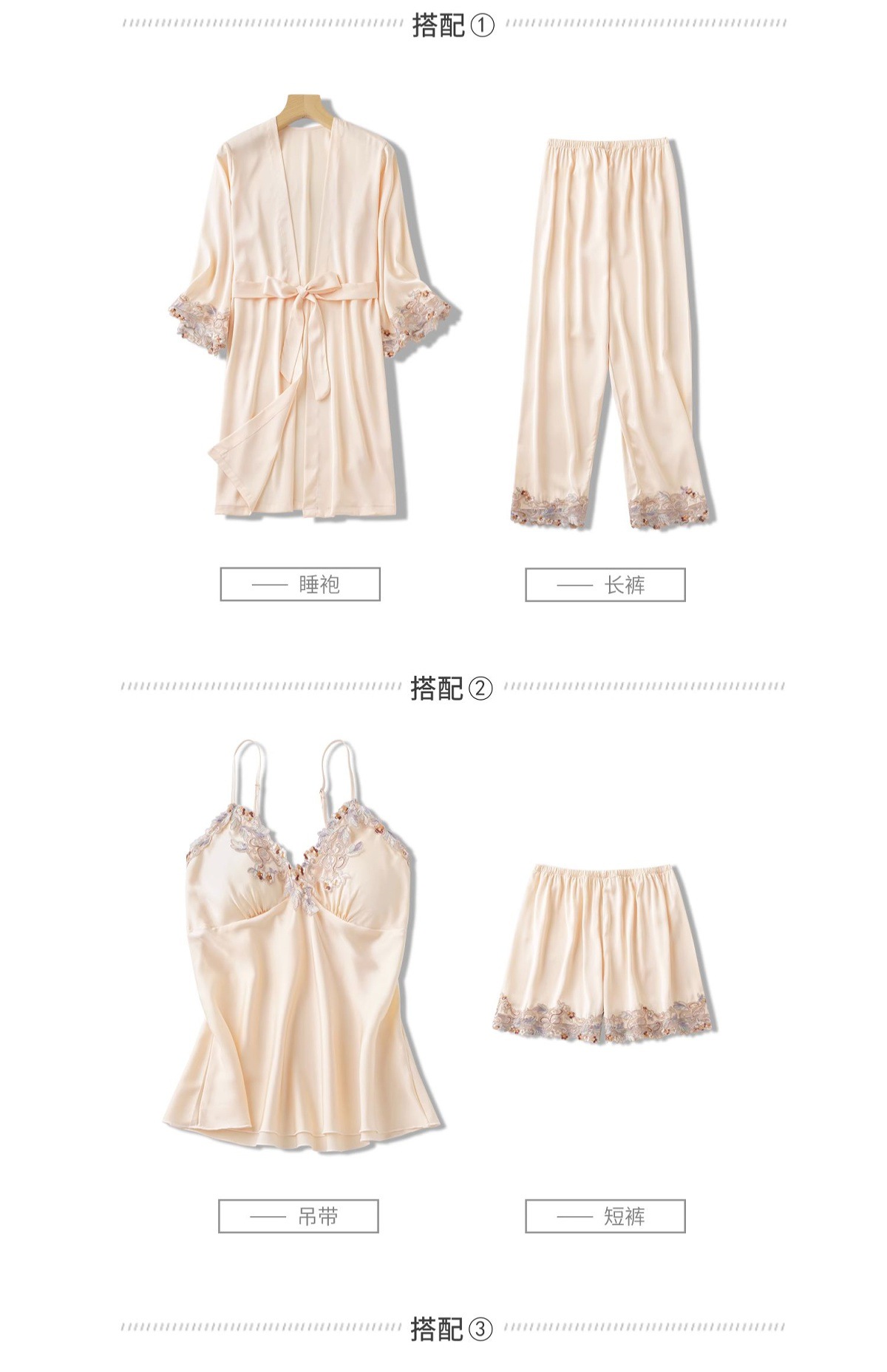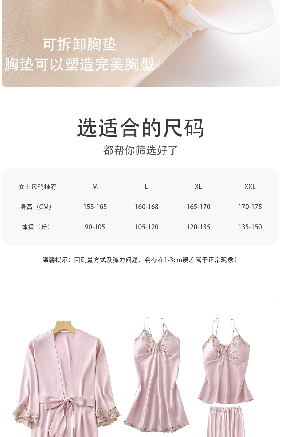 여성용 잠옷 봄, 가을 여름 얼음 실크 섹시한 5 피스 세트 가슴 패드가있는 고급 실크 홈웨어 세트스토어 가기