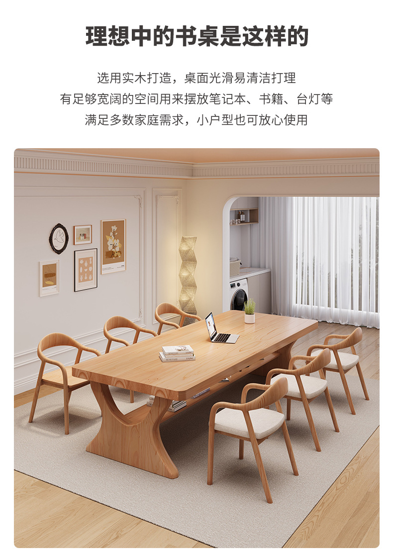 현대식 원목 책상 다인용 실용 학습 테이블 컴퓨터 책상 고급형 책상 가정용 식탁 의자스토어 가기