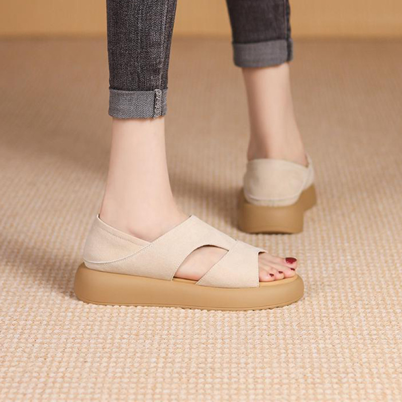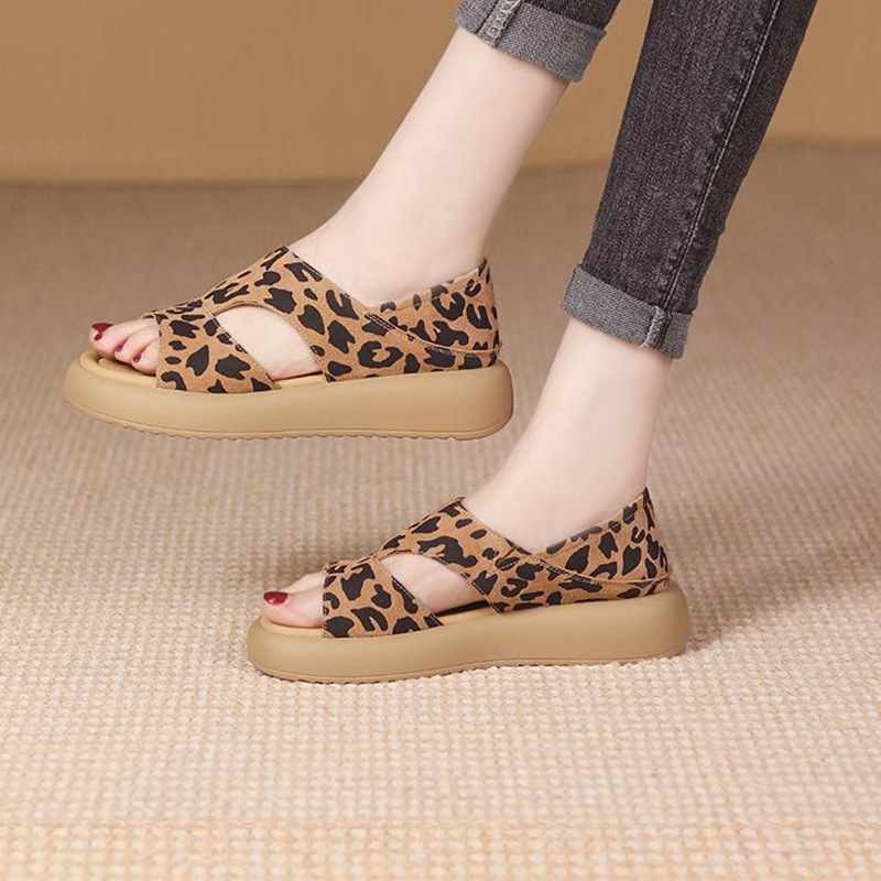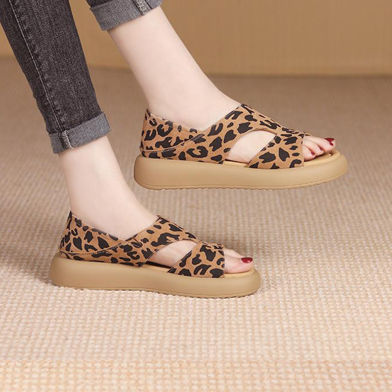 여름 새로운 국경 소프트 밑창 투웨어 로마 샌들 2025 두꺼운 밑창 플러스 사이즈 캐주얼 레오파드 프린트 비치 샌들스토어 가기