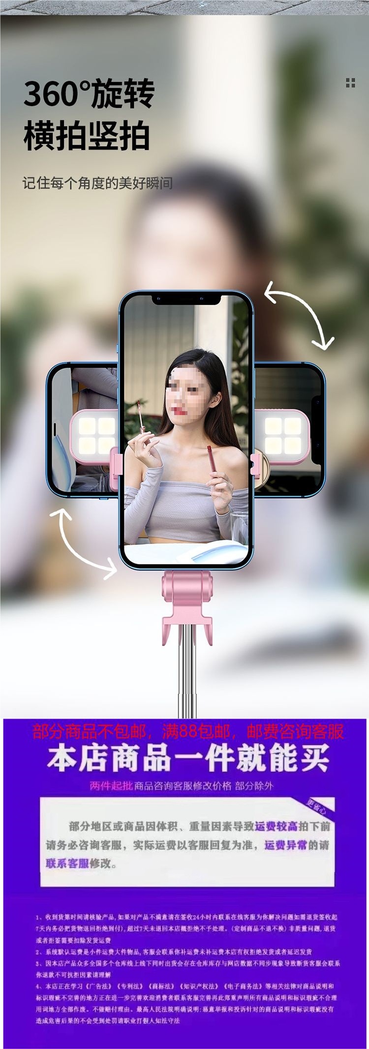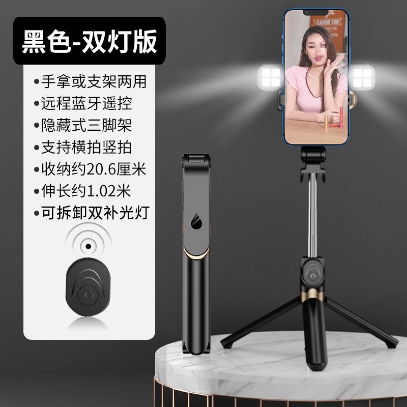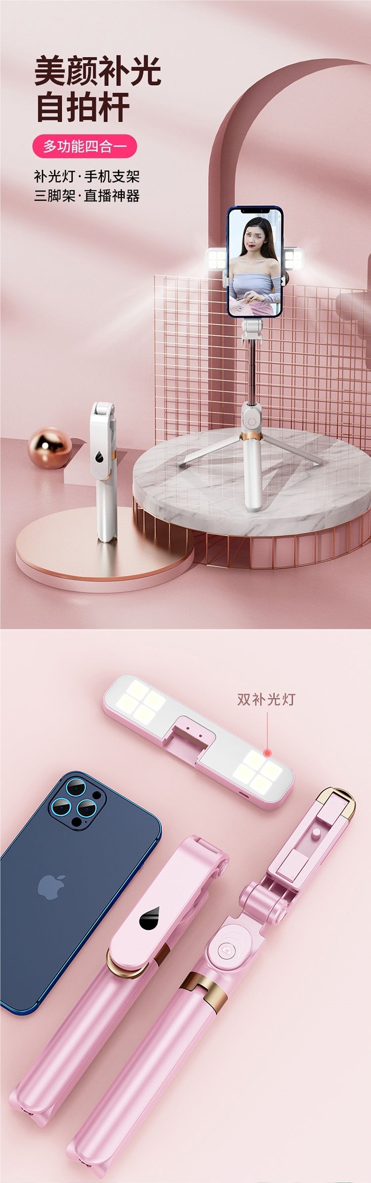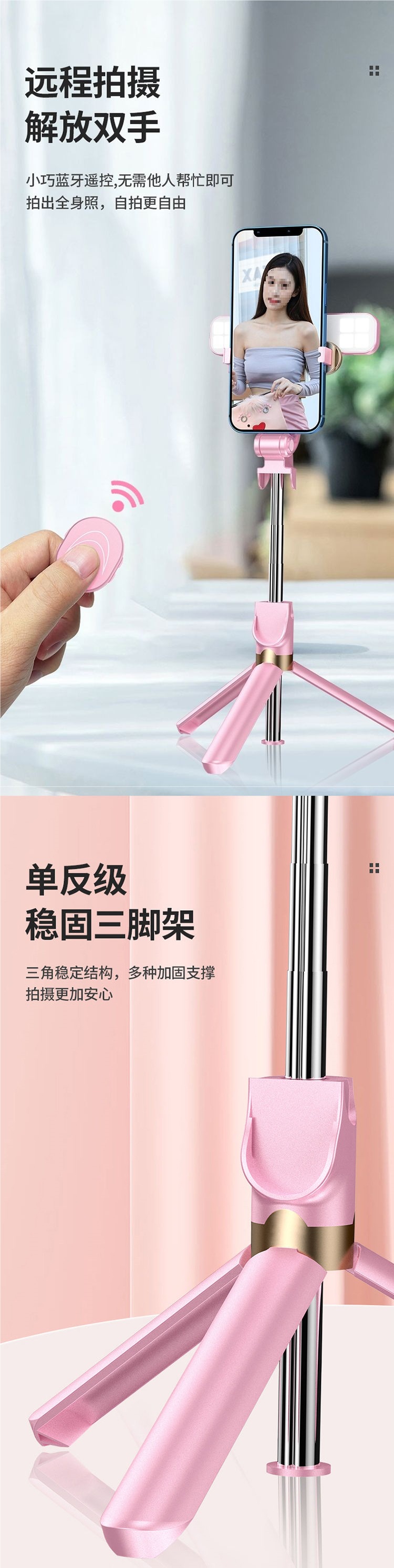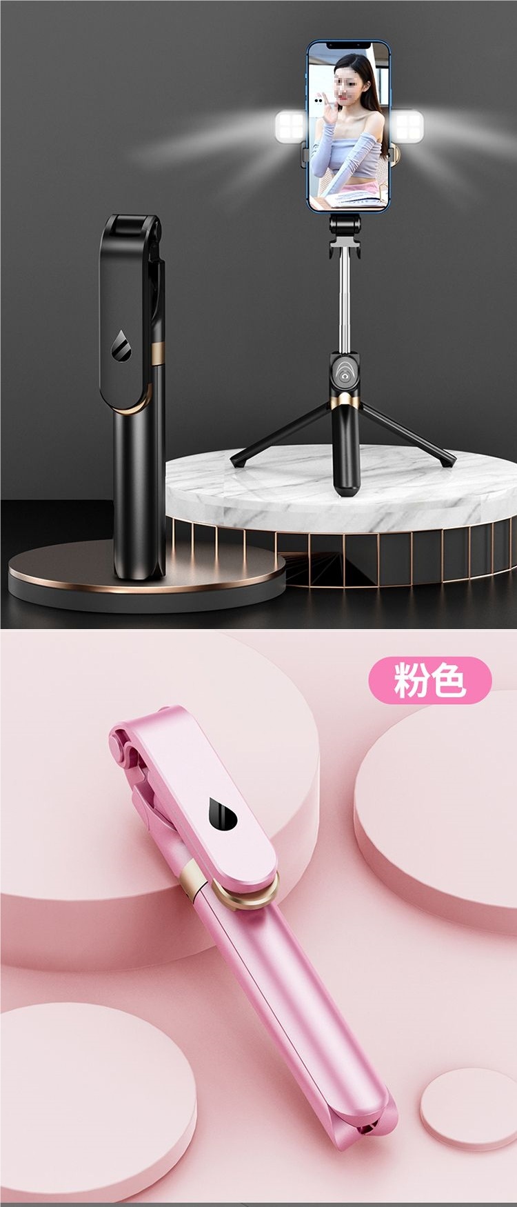 확장 휴대 전화 셀카 스틱 블루투스 원격 제어 필 라이트 다기능 범용 삼각대 휴대용 휴대용 여행 스탠드