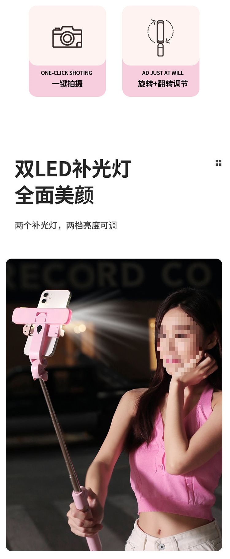 • 듀얼 필 라이트 모델(블루투스 리모컨 + 삼각대) - 엘레강트 핑크(올인원 휴대용 + 가로 및 세로 촬영)
