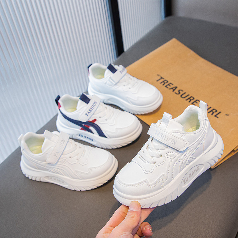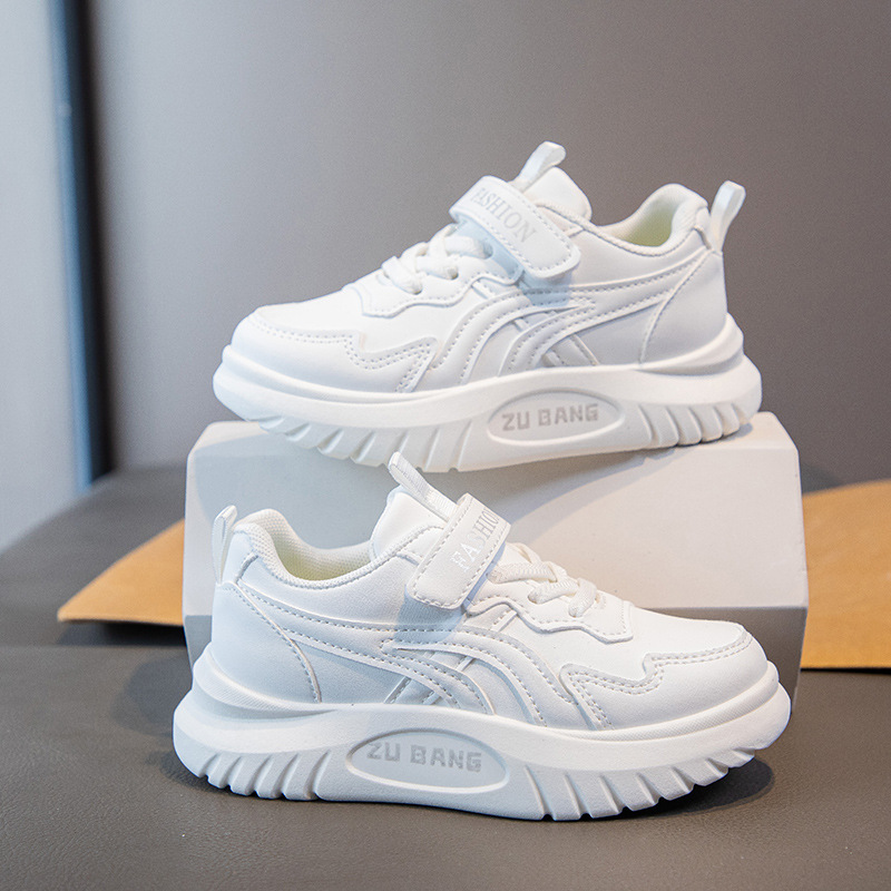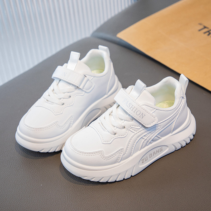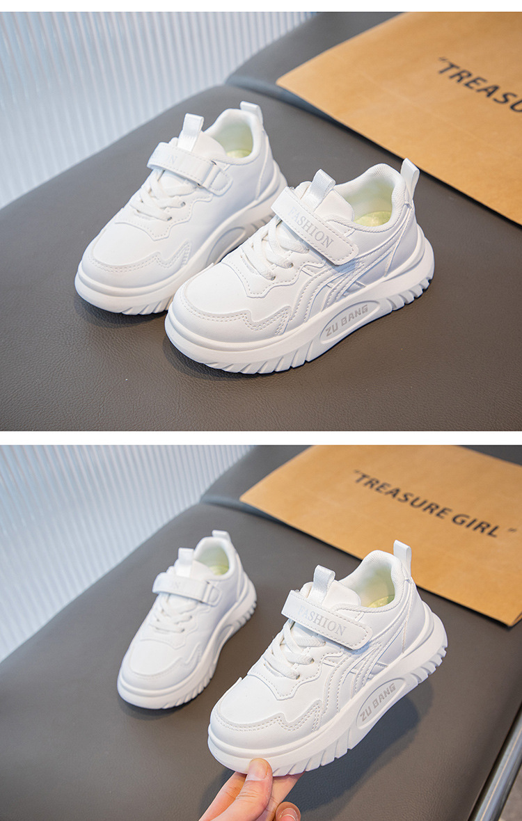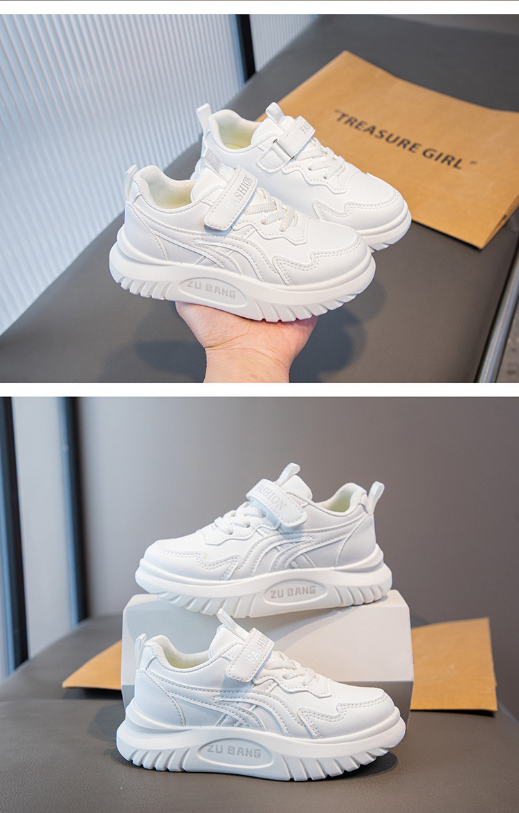 25 봄 신작 아동용 가죽 운동화, 남아용 흰색 신발, 가볍고 부드러운 밑창, 편안한 여아용 캐주얼 운동화스토어 가기