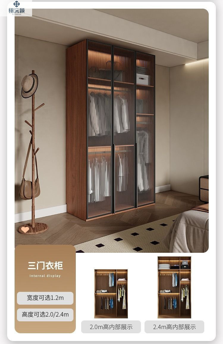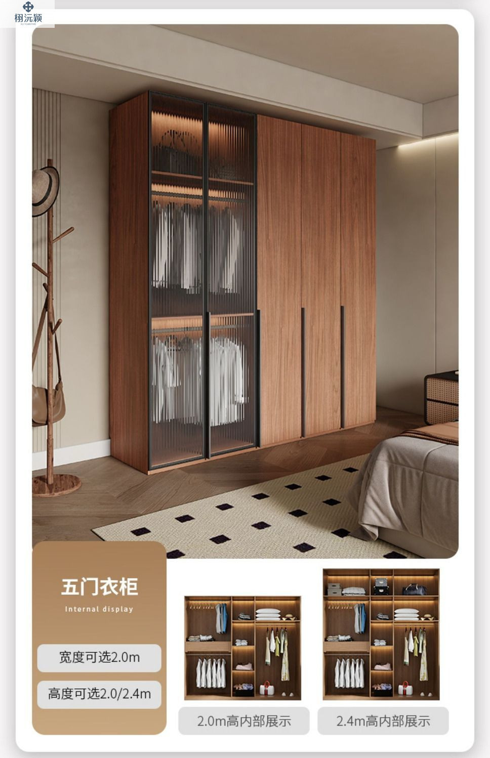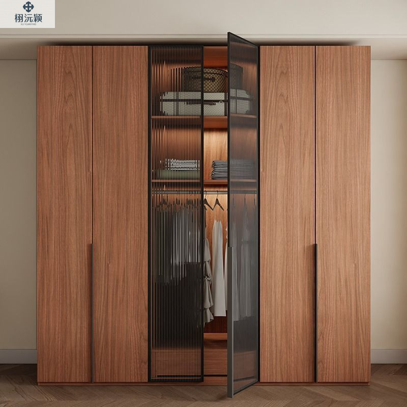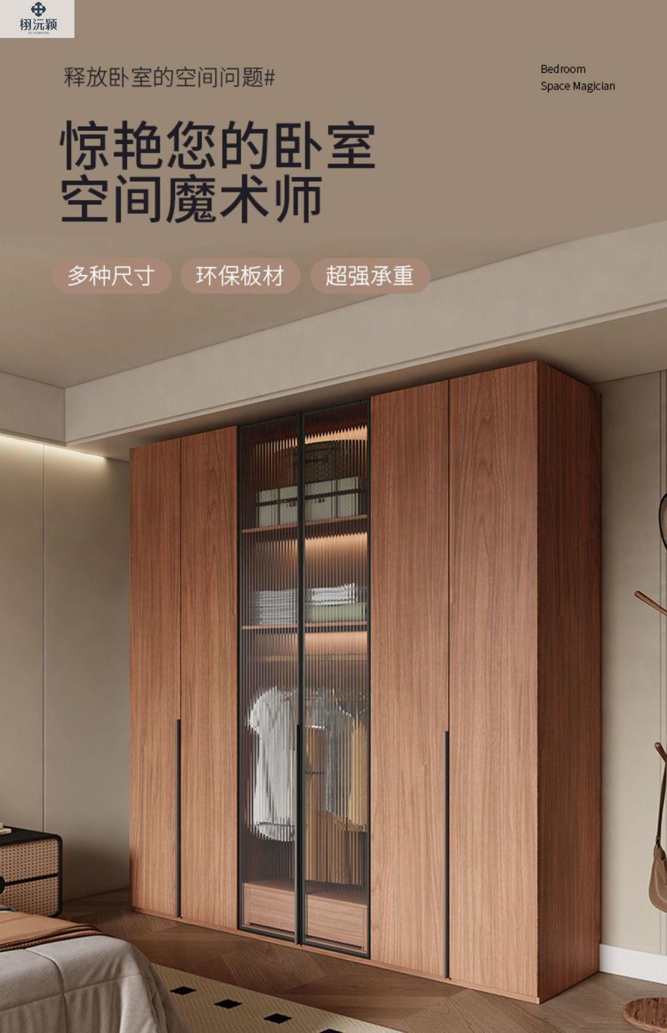 Changhong 유리 원 도어 옷장 홈 마스터 침실 현대적인 간단한 단단한 나무 유럽 소나무 호두 색상 옷장 캐비닛